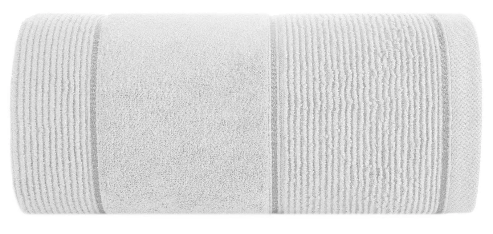 Ręcznik bawełniany o strukturze w prążki z welurową bordiurą szerokość: 30 cm, długość: 50 cm, kolor: biały, Gramatura: 500 GSM, Skład: 100% bawełna