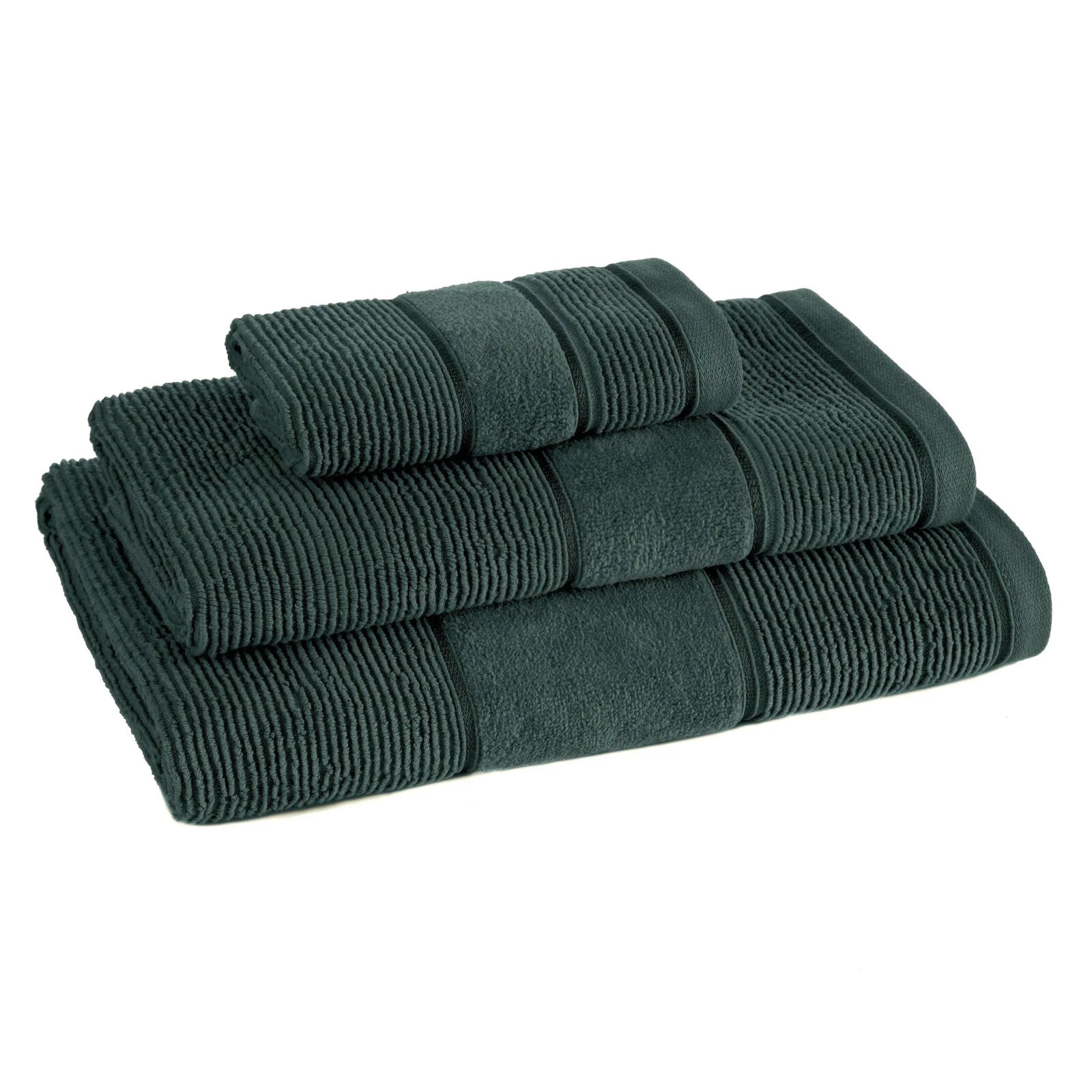 Ręcznik bawełniany o strukturze w prążki z welurową bordiurą szerokość: 30 cm, długość: 50 cm, kolor: ciemnozielony, Gramatura: 500 GSM, Skład: 100% bawełna