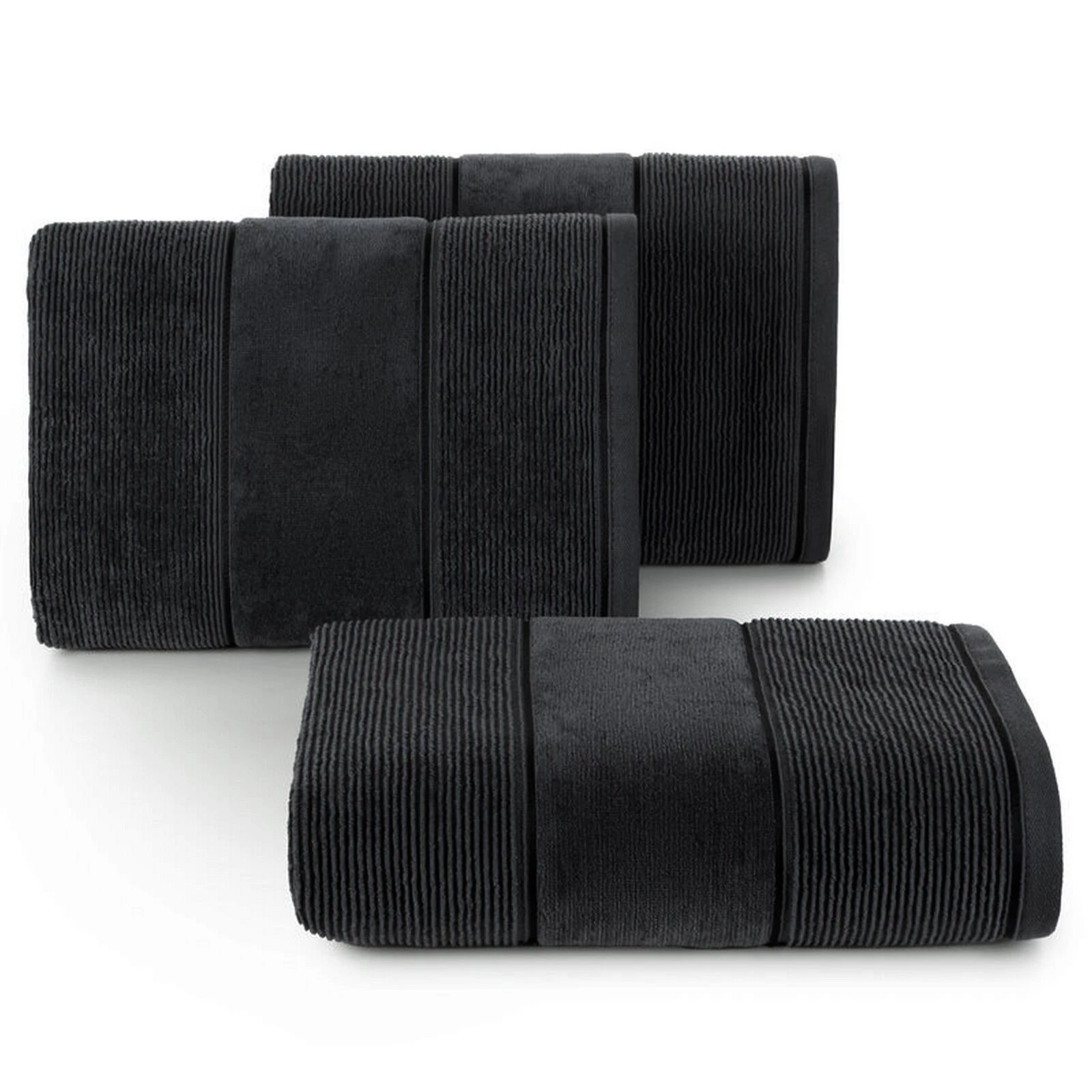 Ręcznik bawełniany o strukturze w prążki z welurową bordiurą szerokość: 50 cm, długość: 90 cm, kolor: czarny, Gramatura: 500 GSM, Skład: 100% bawełna