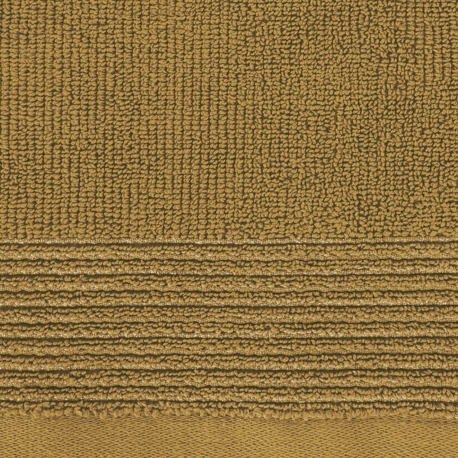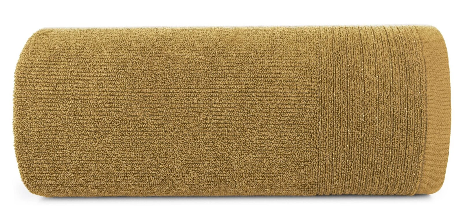 Ręcznik bawełniany z ozdobną bordiurą przetykaną błyszczącą nicią szerokość: 30 cm, długość: 50 cm, kolor: miodowy, Gramatura: 500 GSM, Skład: 100% bawełna; część ozdobna: 95% bawełna, 5% poliester