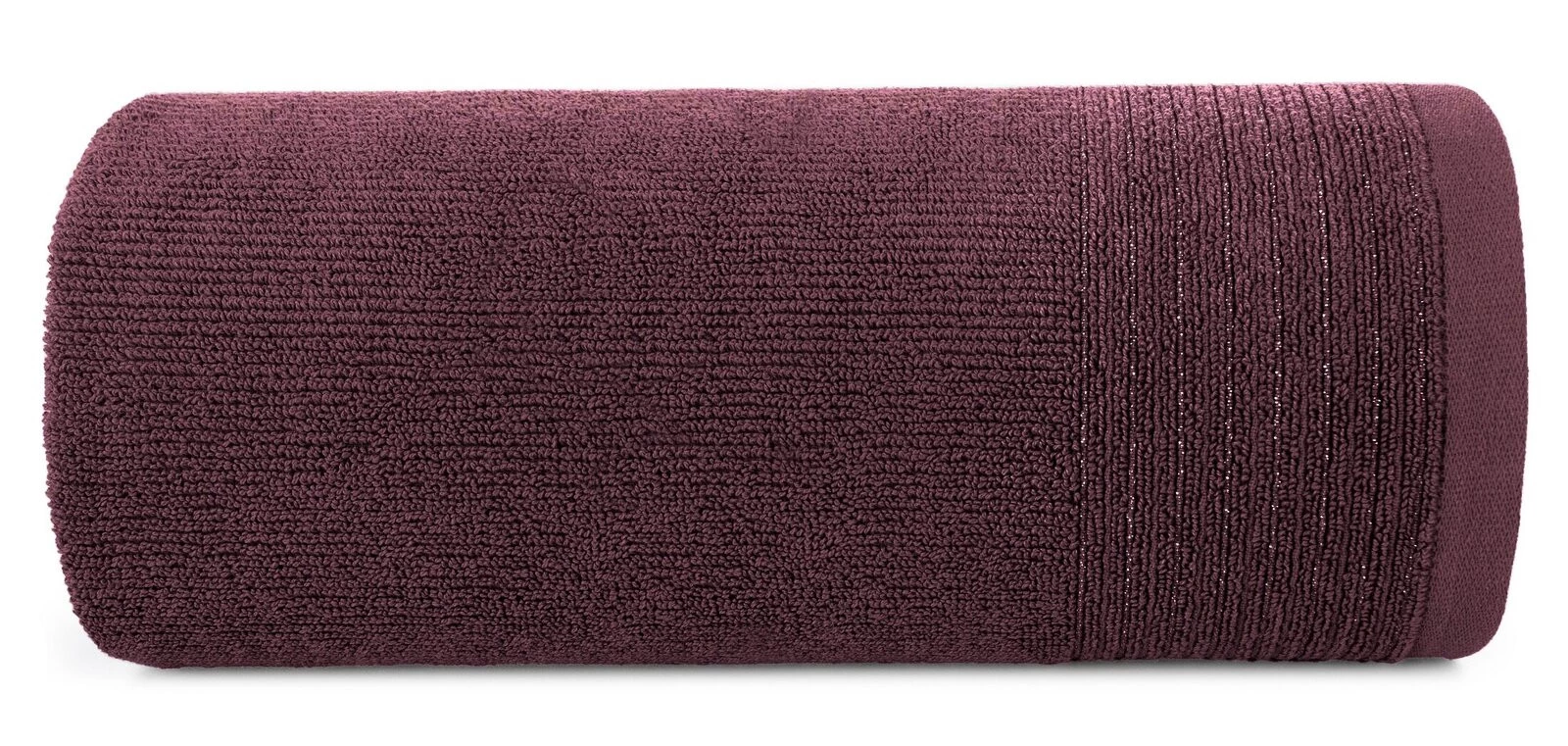 Ręcznik bawełniany z ozdobną bordiurą przetykaną błyszczącą nicią szerokość: 50 cm, długość: 90 cm, kolor: burgundowy, Gramatura: 500 GSM, Skład: 100% bawełna; część ozdobna: 95% bawełna, 5% poliester