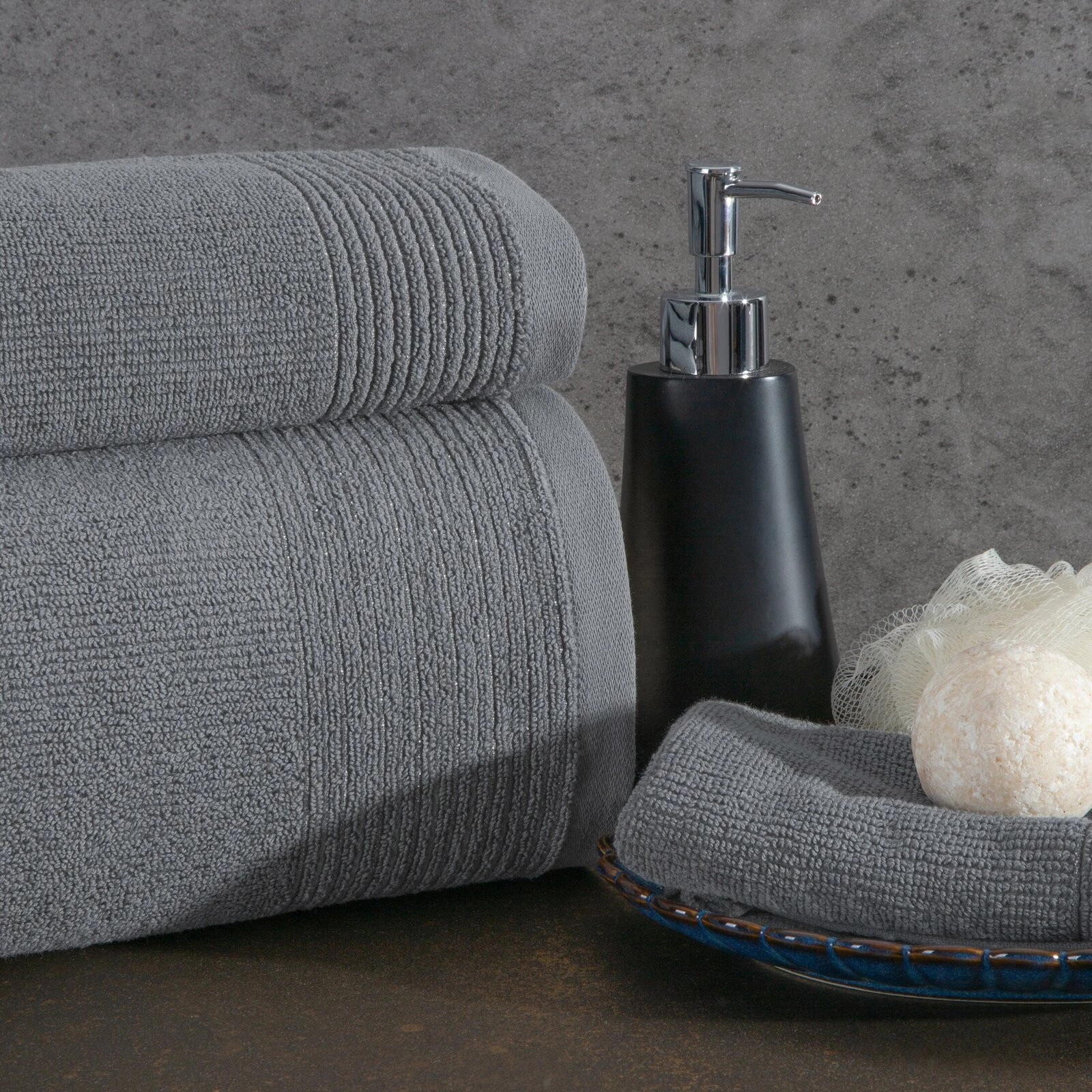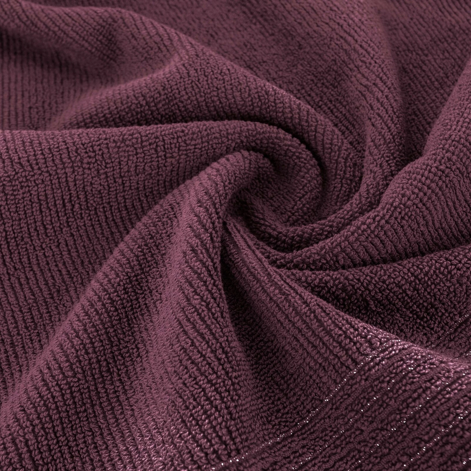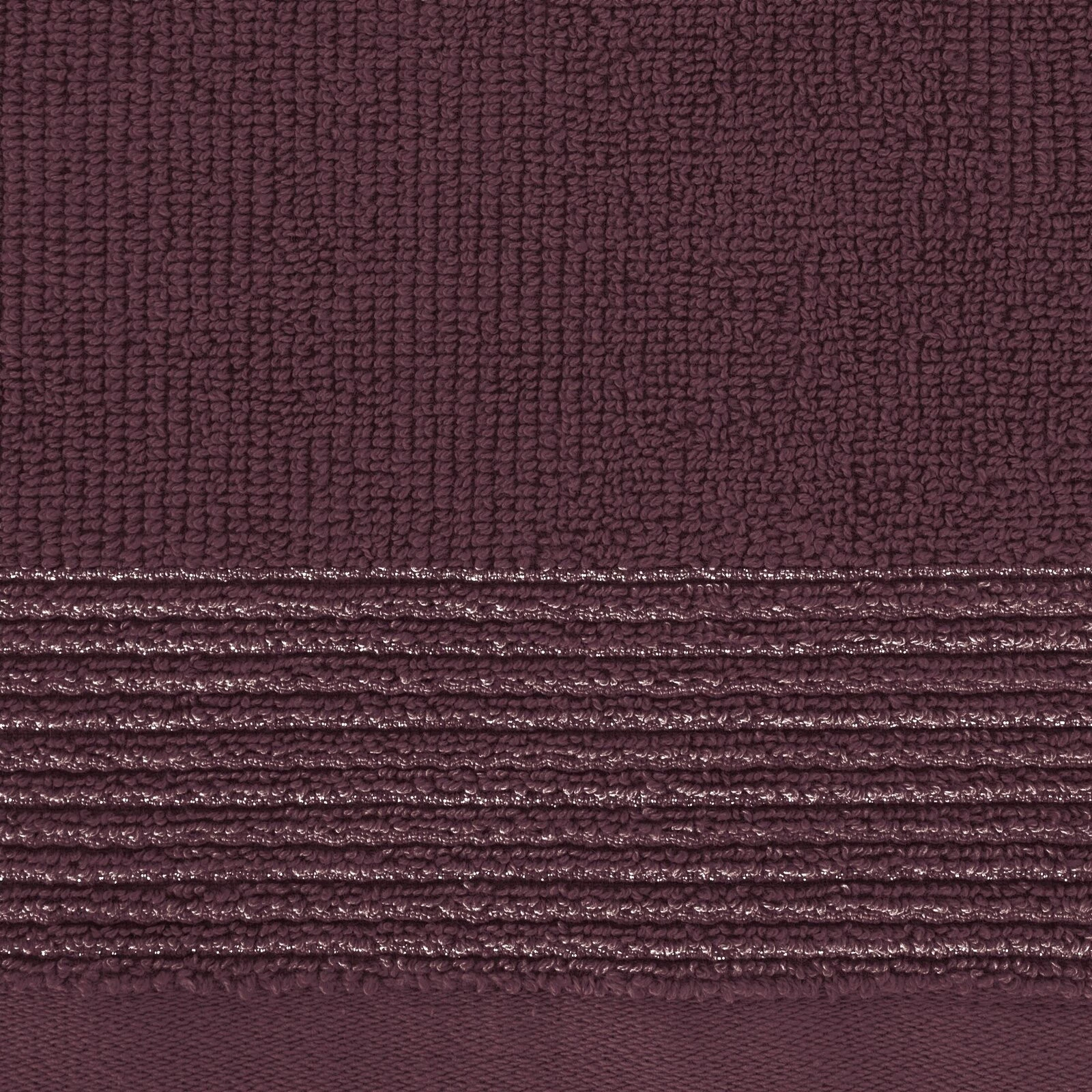 Ręcznik bawełniany z ozdobną bordiurą przetykaną błyszczącą nicią szerokość: 70 cm, długość: 140 cm, kolor: burgundowy, Gramatura: 500 GSM, Skład: 100% bawełna; część ozdobna: 95% bawełna, 5% poliester