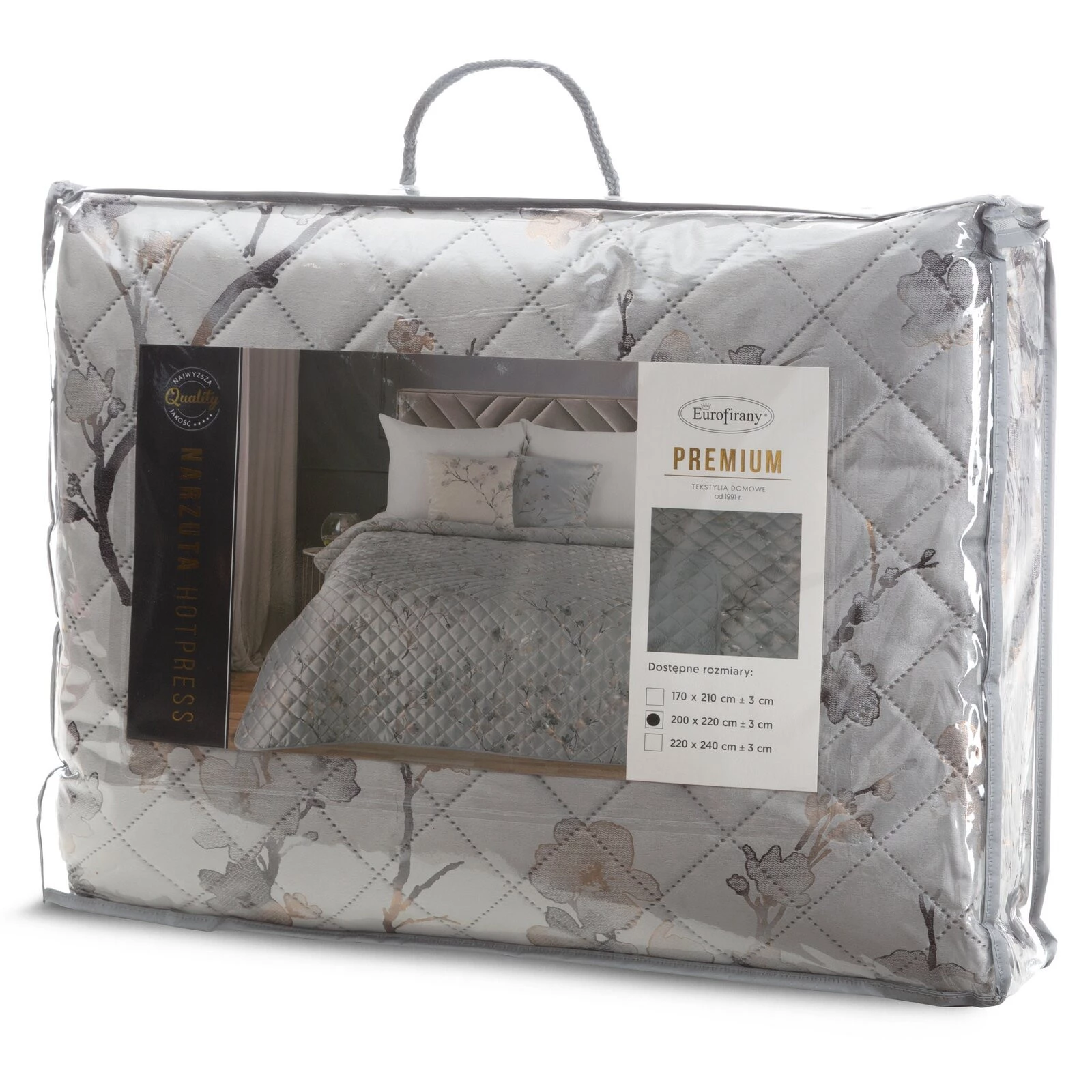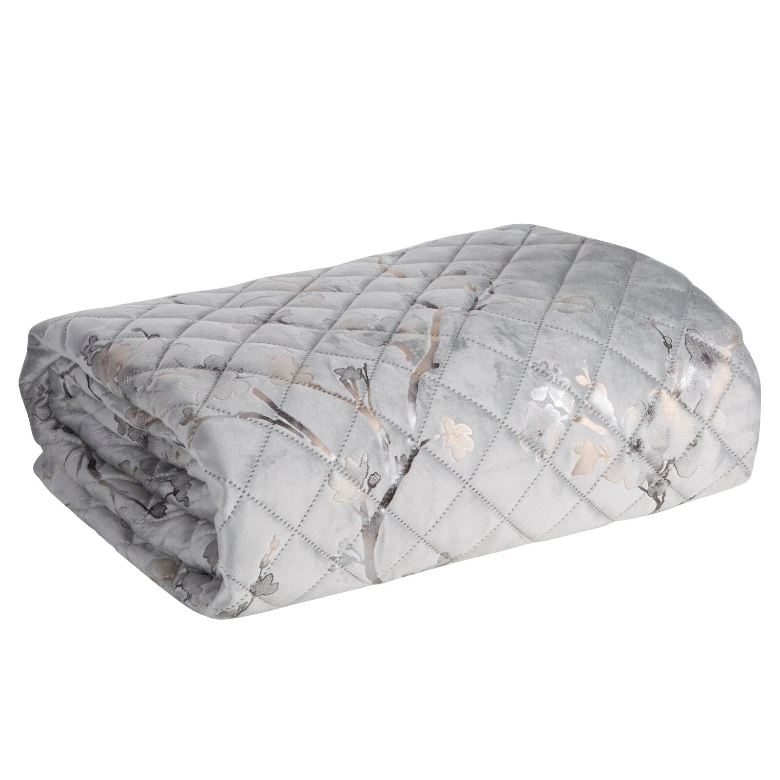 Narzuta welwetowa, wykonana techniką "hot press"z foliowym nadrukiem szerokość: 170 cm, długość: 210 cm, kolor: srebrny, Gramatura: 210 GSM, Skład: 100% poliester