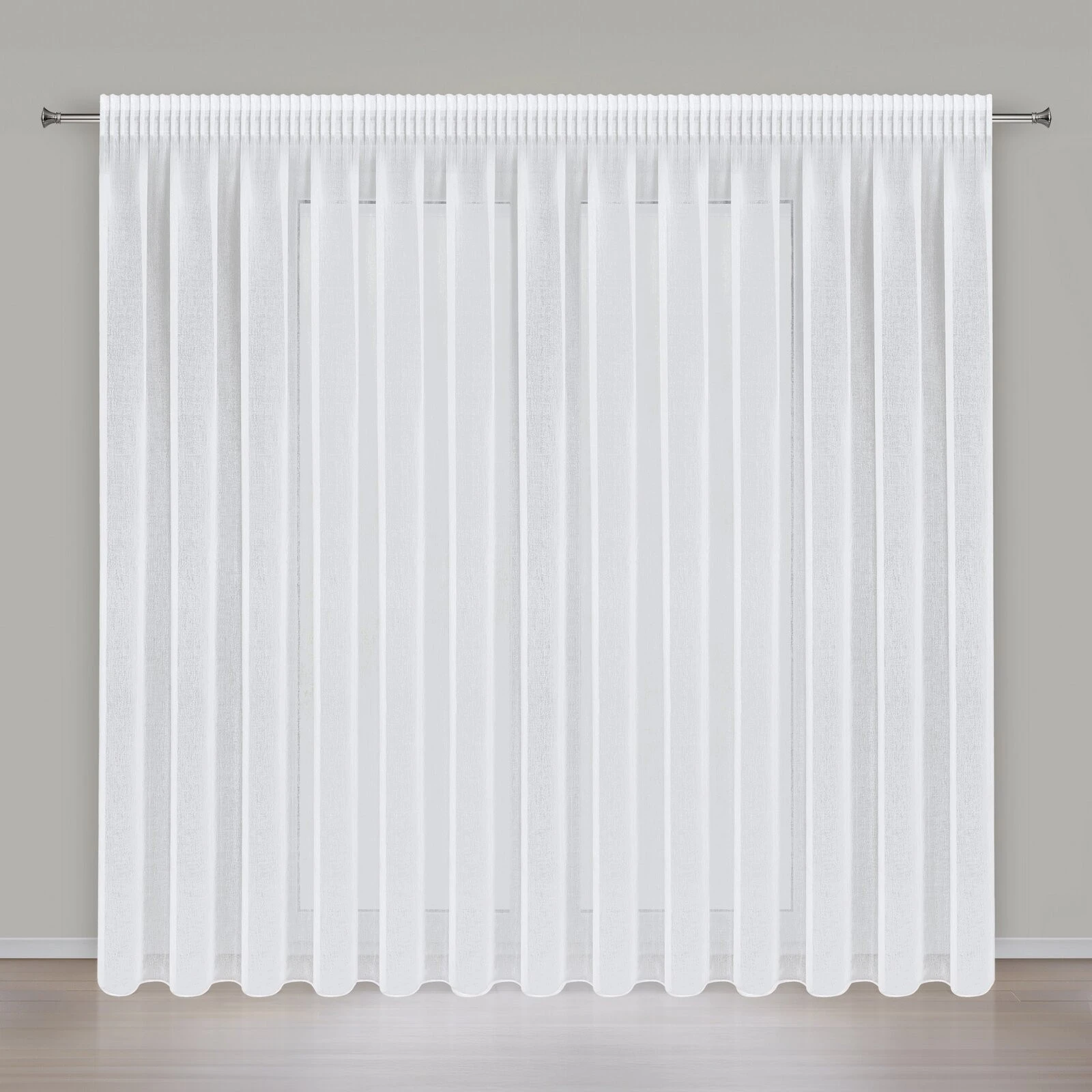 - Gładka firana w kolorze klasycznej bieli to ponadczasowa dekoracja okna. Delikatna etamina, z której została uszyta, gwarantuje maksimum prywatności i światła. szerokość: 350 cm, długość: 250 cm, kolor: biały, Gramatura: 65 GSM, Skład: 100% poliester