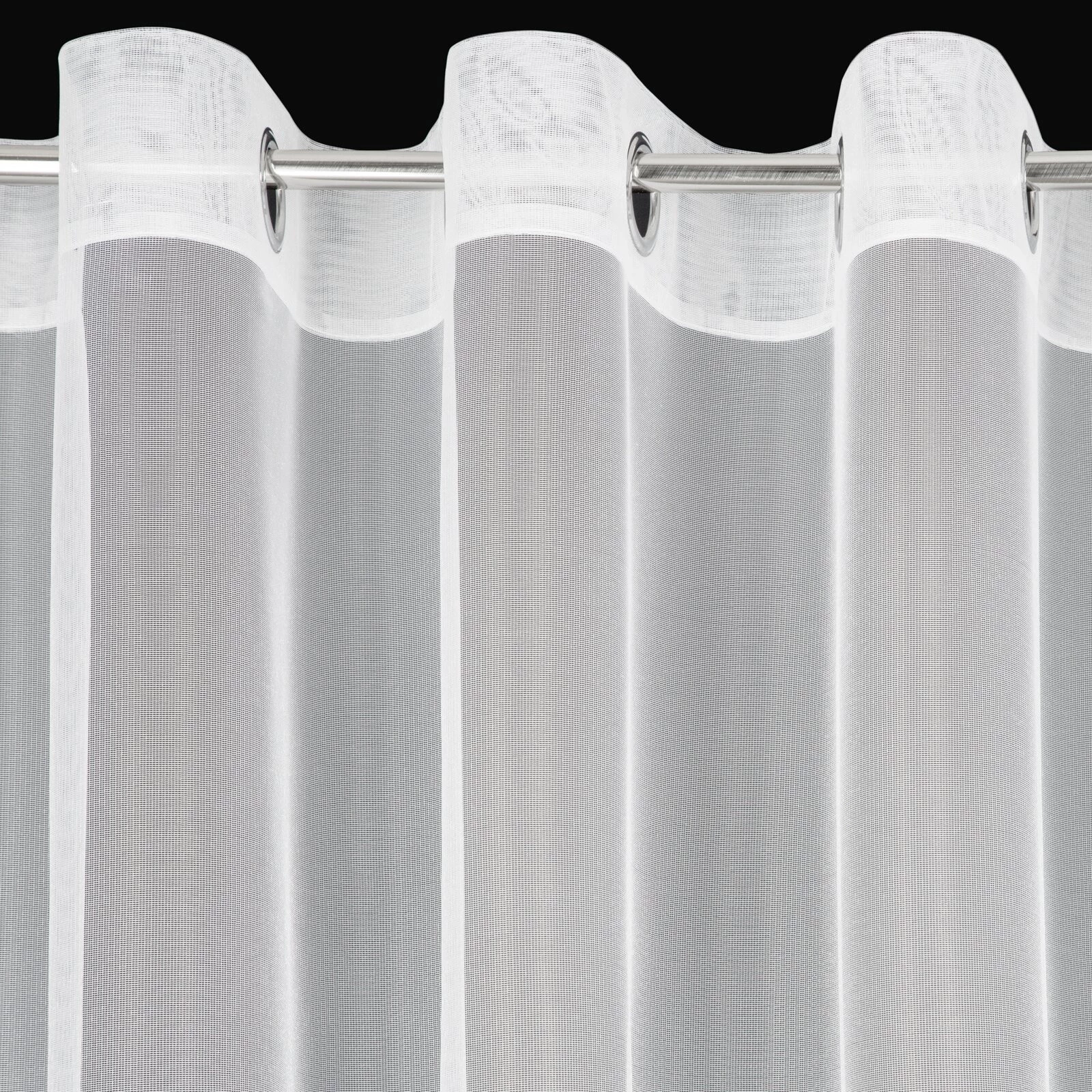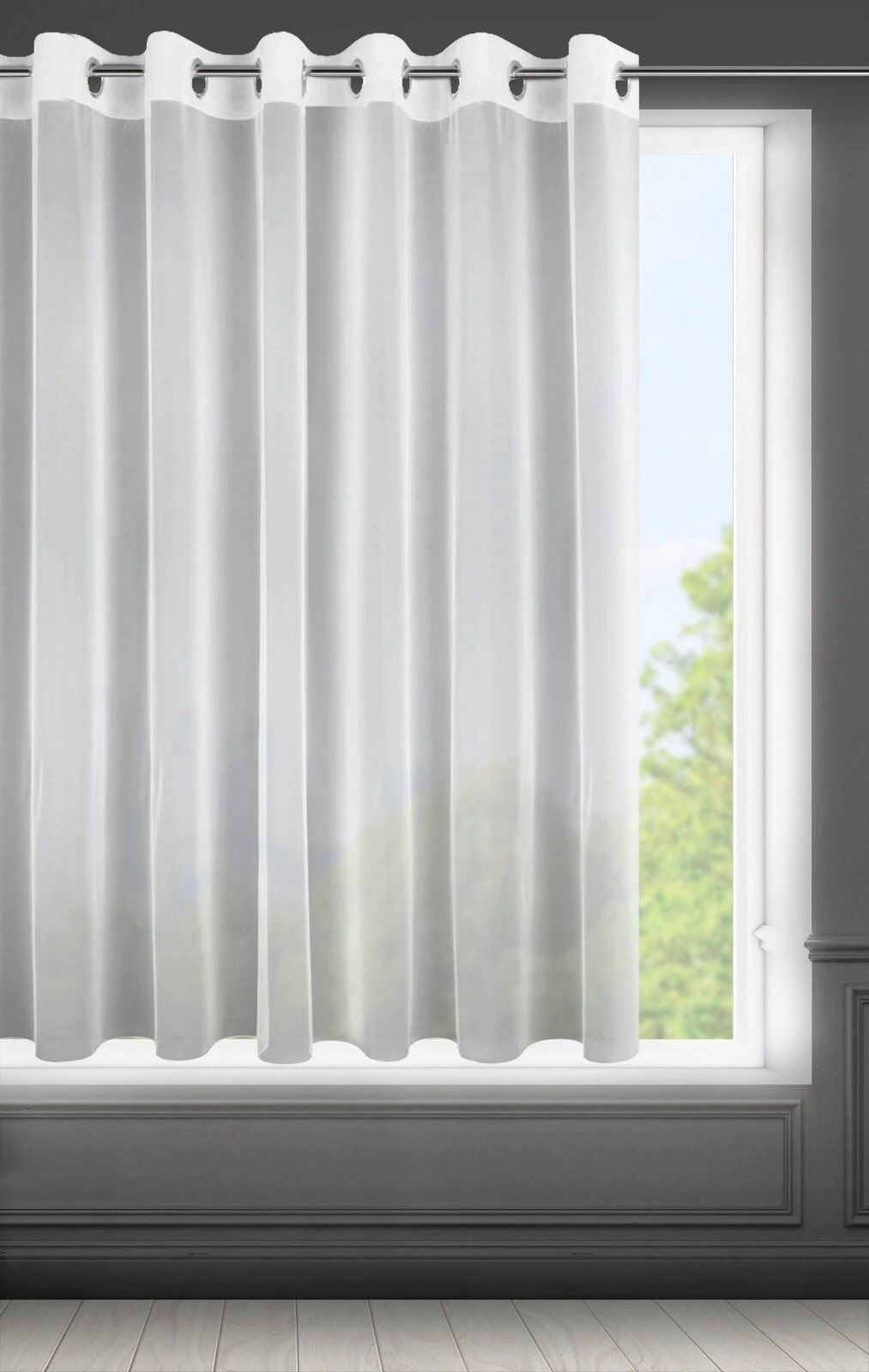Bardzo delikatna firana o strukturze drobnej, gęstej siateczki. Lśniąca tkanina gwarantuje maksimum poczucia prywatności i przepuszcza światło do wnętrza. szerokość: 350 cm, długość: 150 cm, kolor: biały, Gramatura: 35 GSM, Skład: 100% poliester