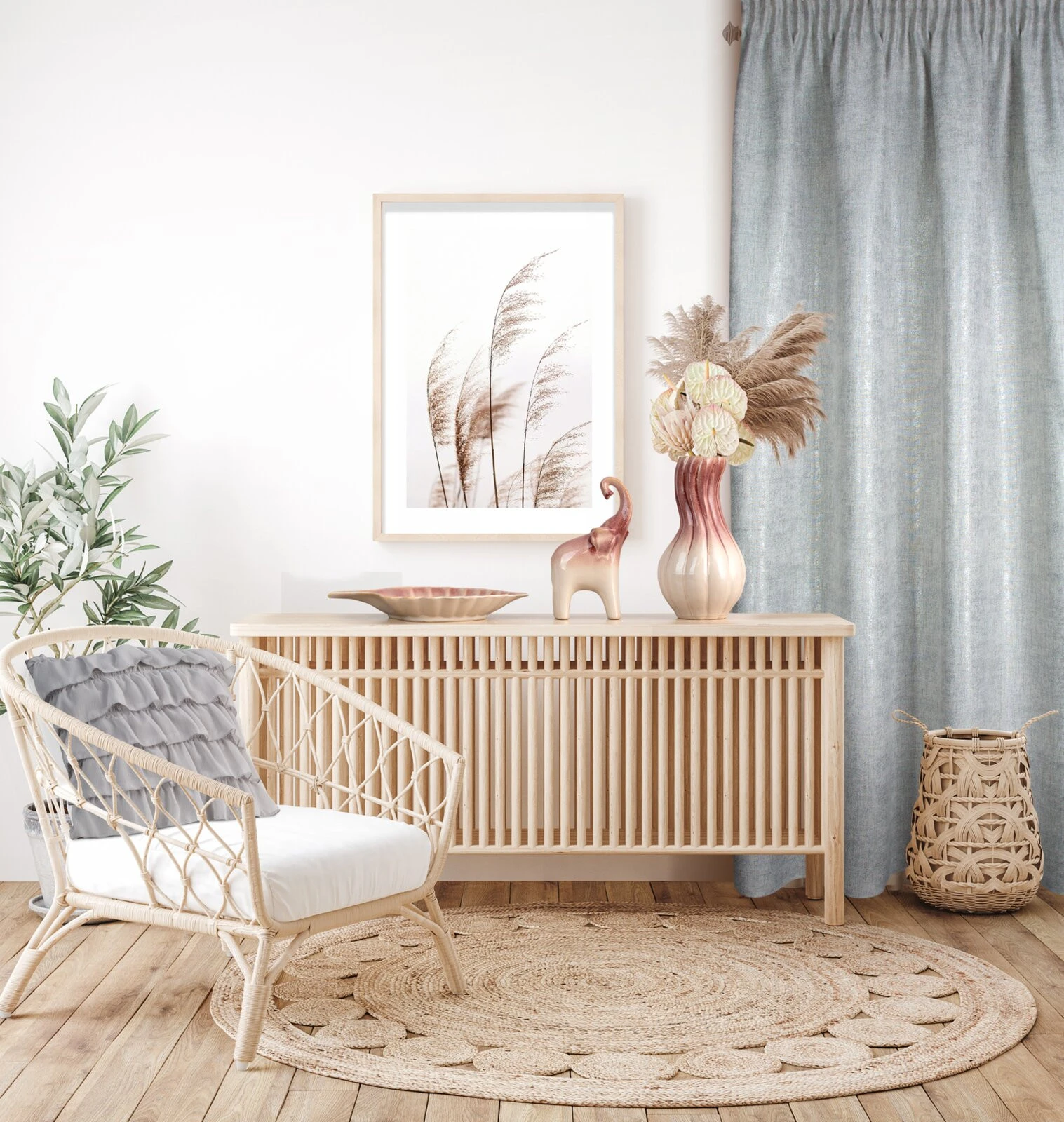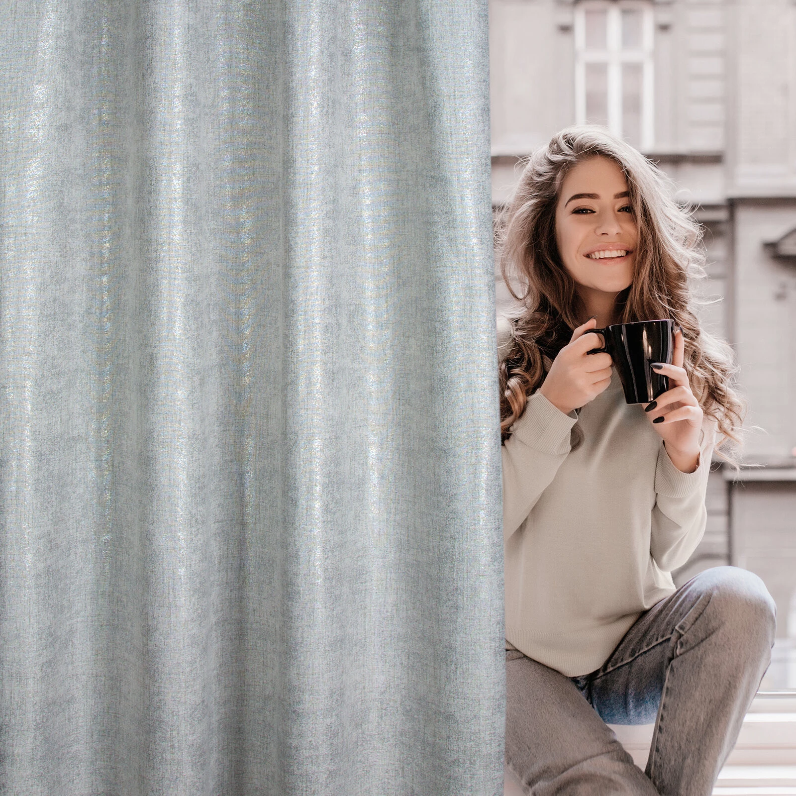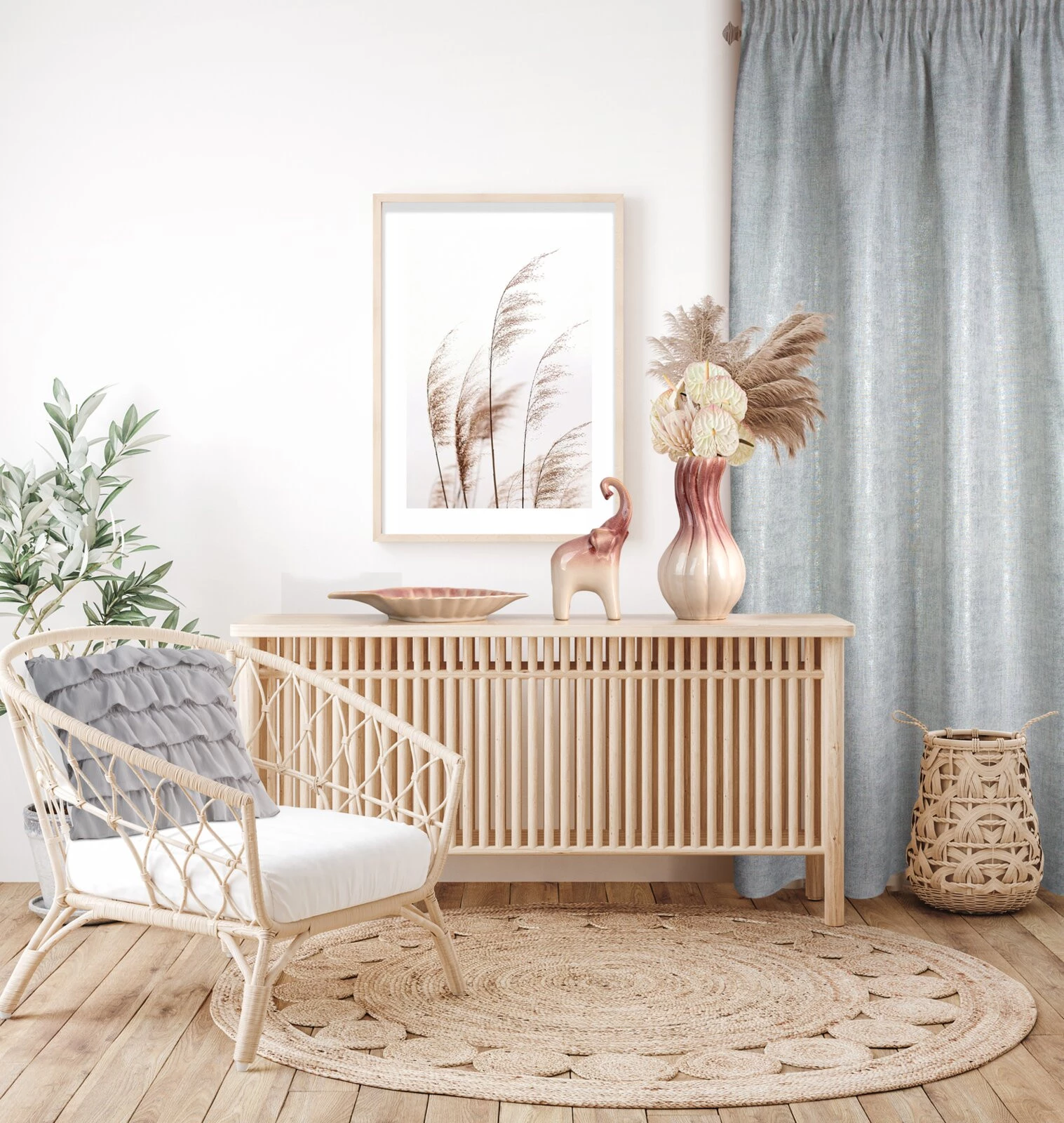 Zasłona w stylu eko z błyszczącym nadrukiem szerokość: 140 cm, długość: 280 cm, kolor: srebrny, Gramatura: 160 GSM, Skład: 100% poliester