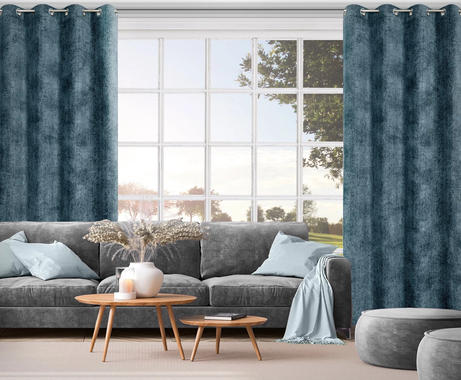 Zasłona gotowa z tkaniny szenilowej szerokość: 135 cm, długość: 250 cm, kolor: granatowy, Gramatura: 280 GSM, Skład: 100% poliester