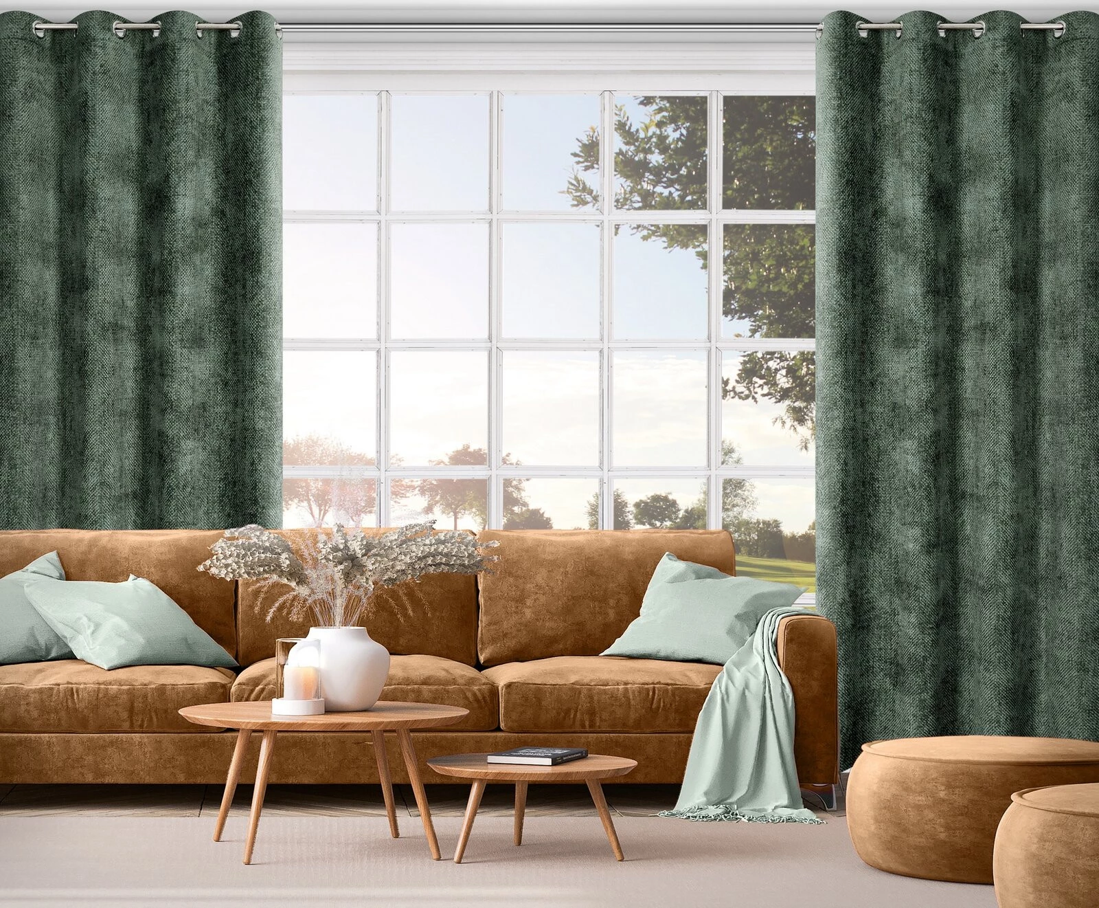 Zasłona gotowa z tkaniny szenilowej szerokość: 135 cm, długość: 250 cm, kolor: ciemnozielony, Gramatura: 280 GSM, Skład: 100% poliester
