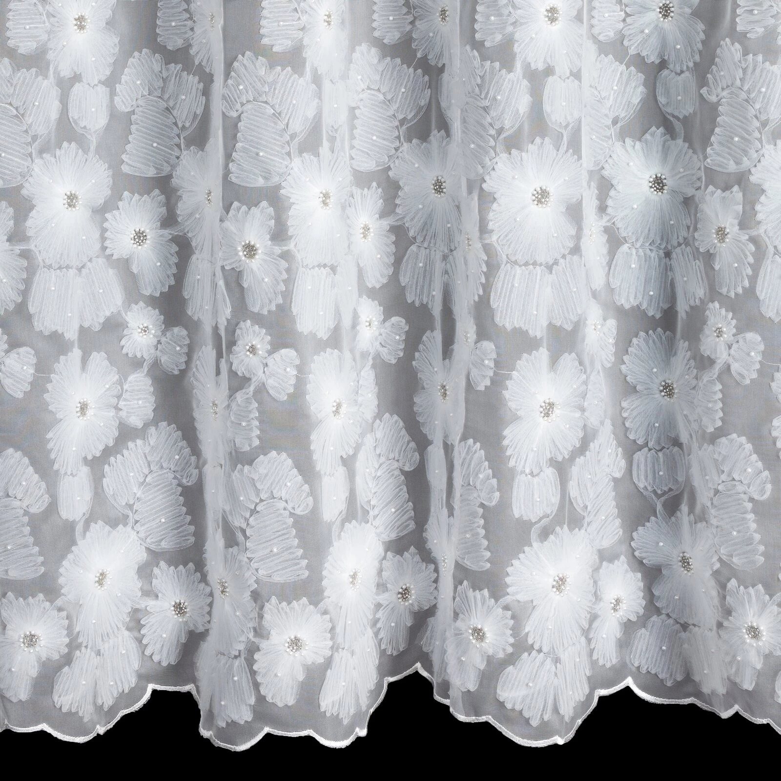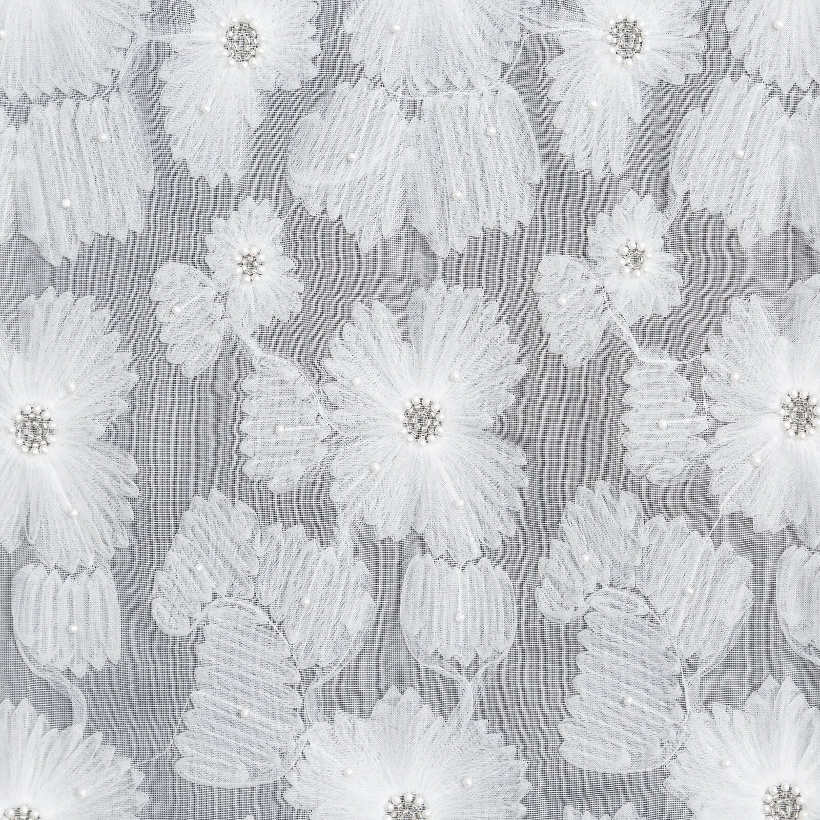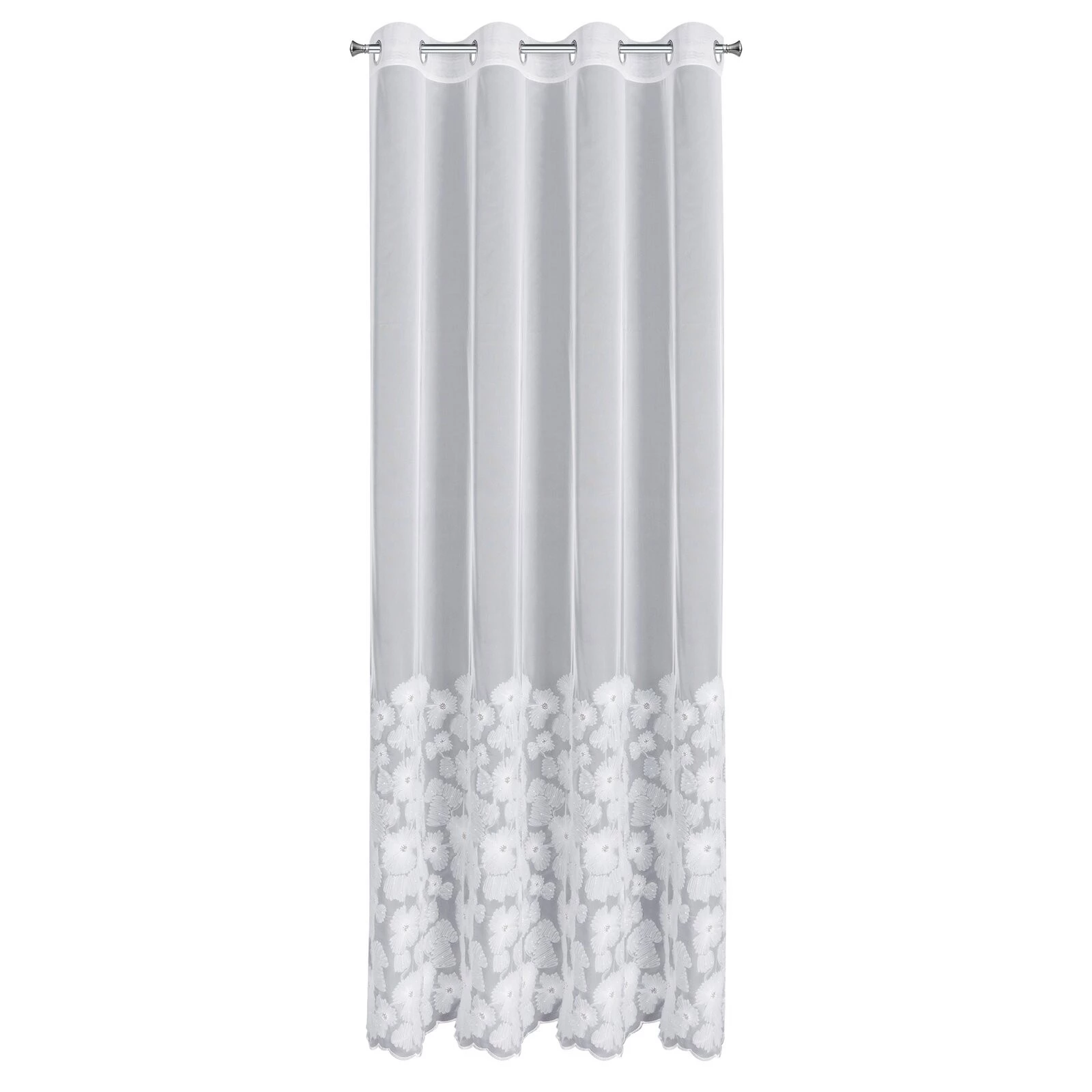 - Firana gotowa z aplikacją szerokość: 140 cm, długość: 250 cm, kolor: biały, Gramatura: 100 GSM, Skład: 100% poliester