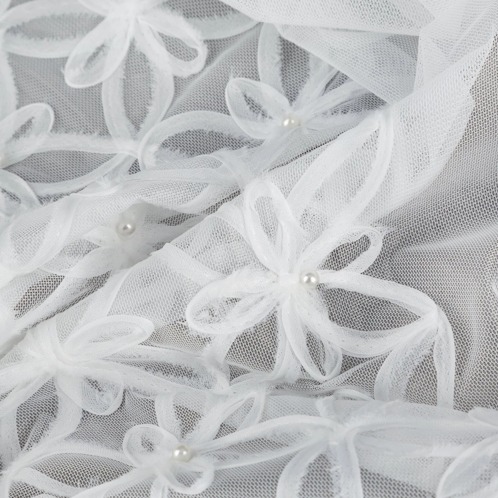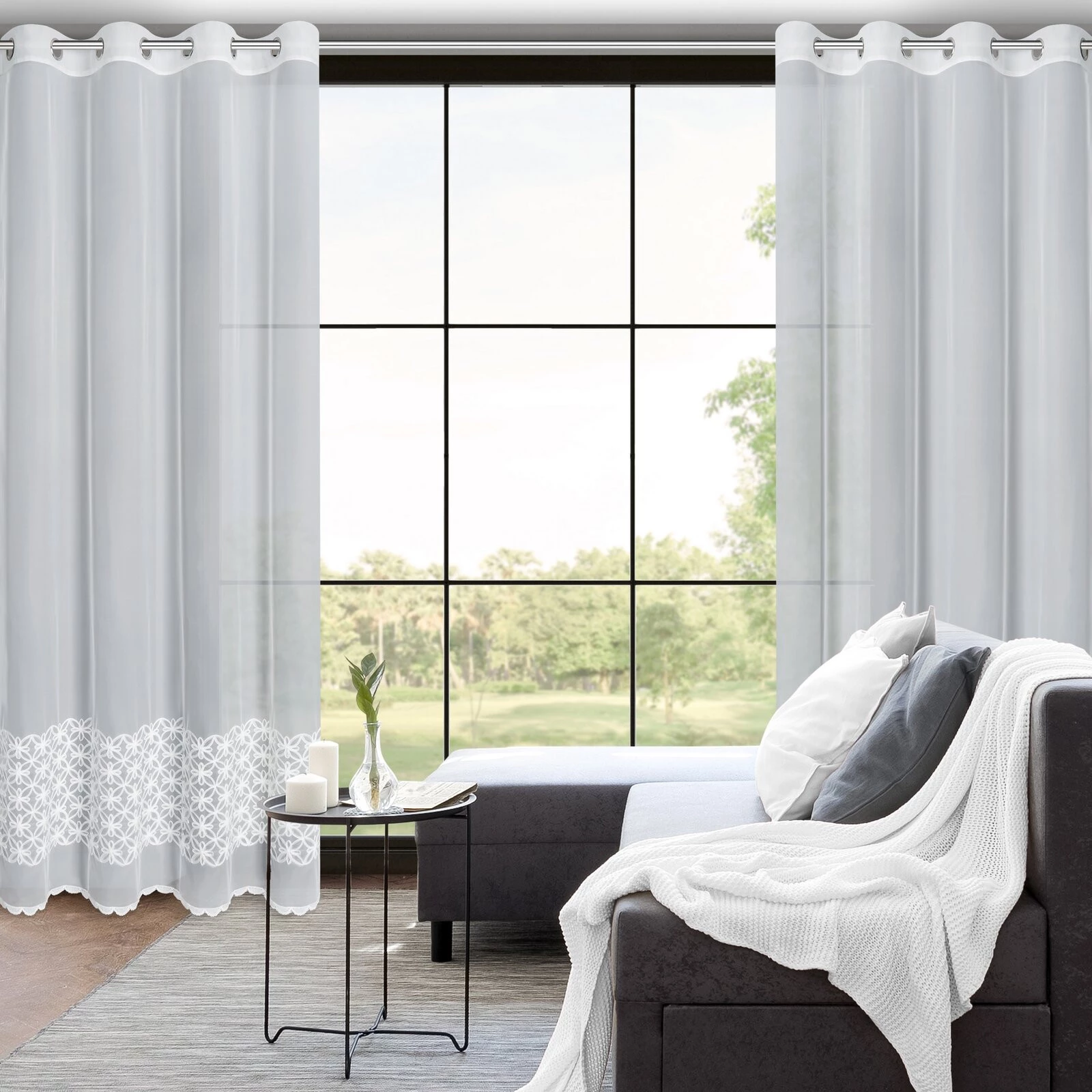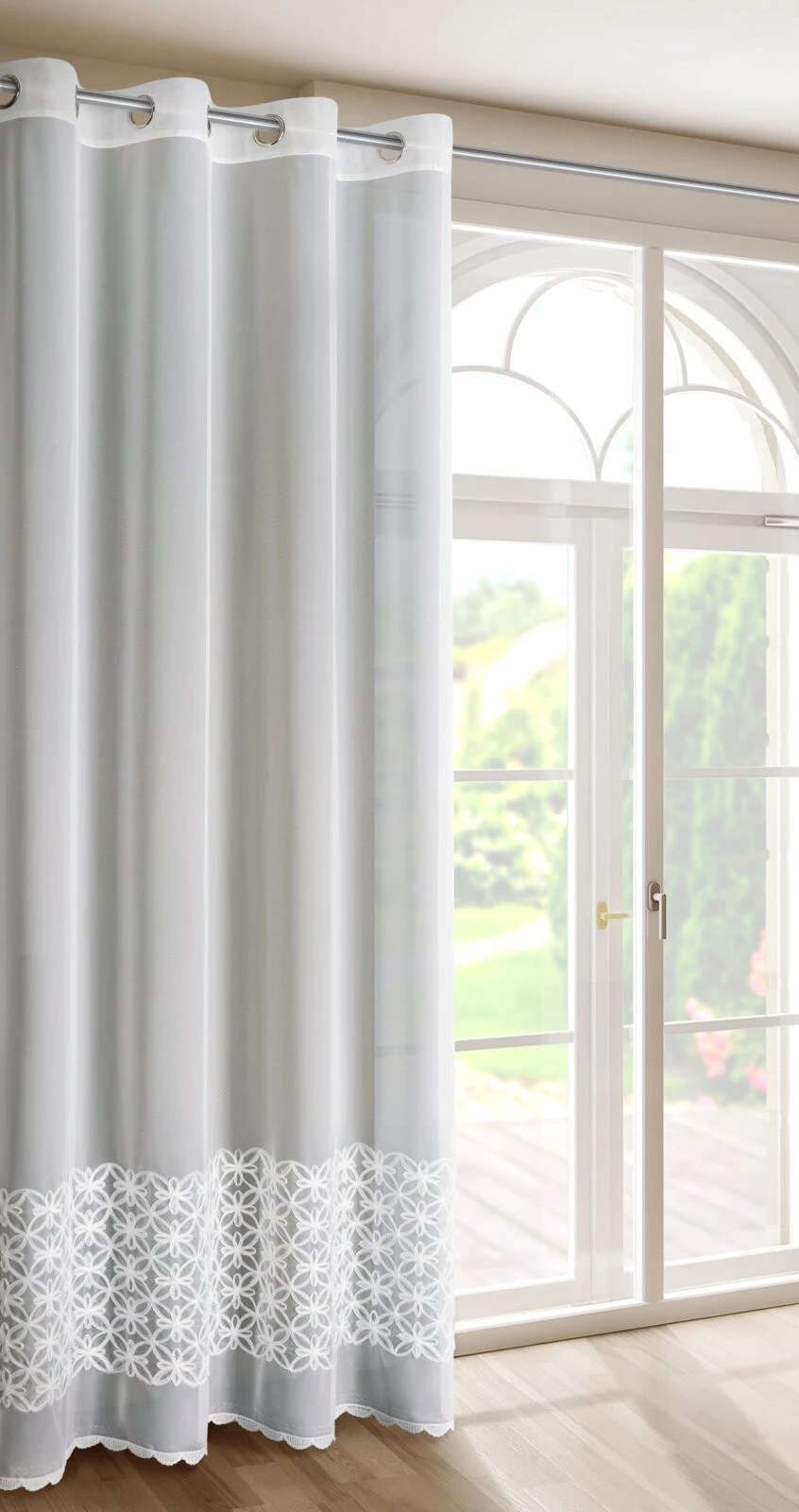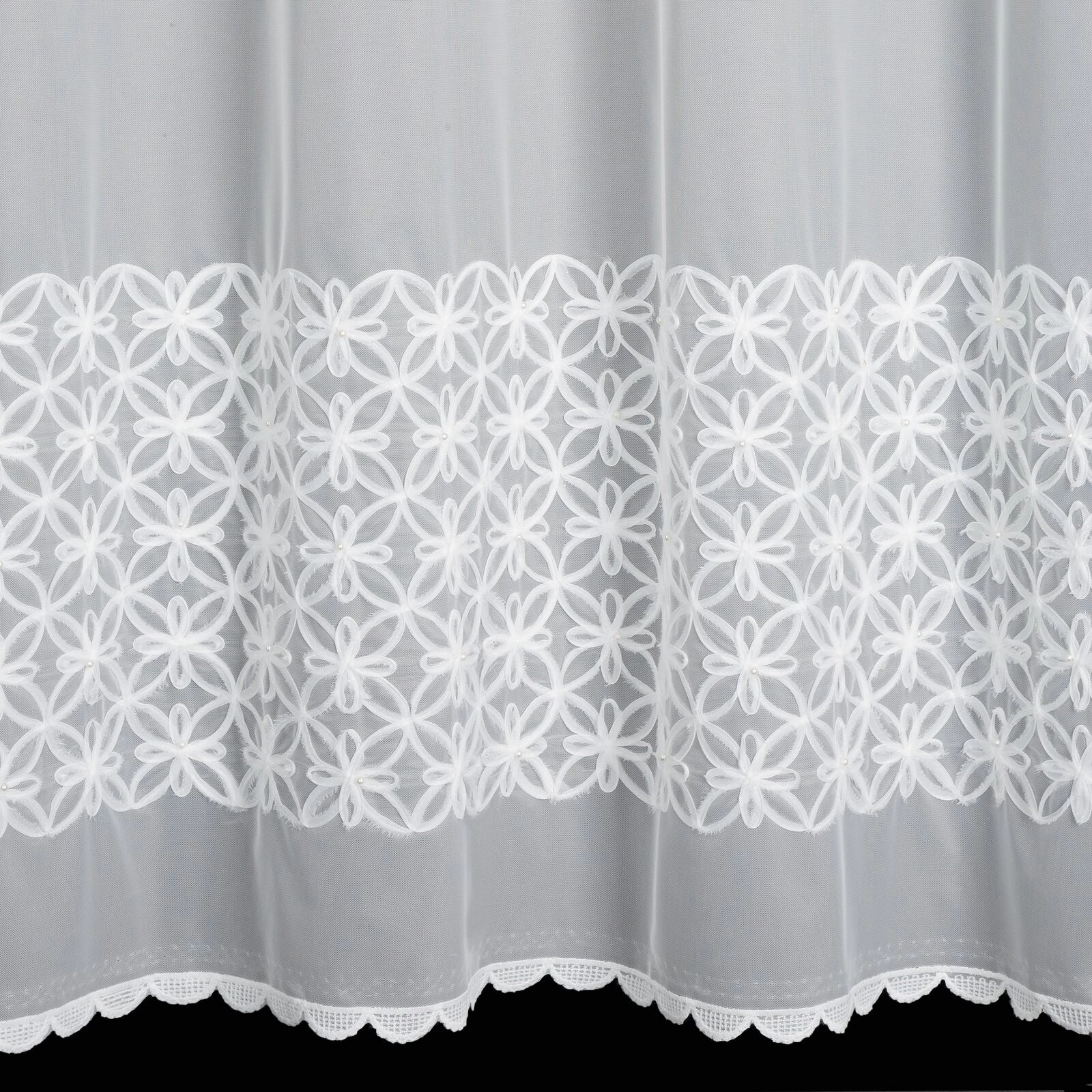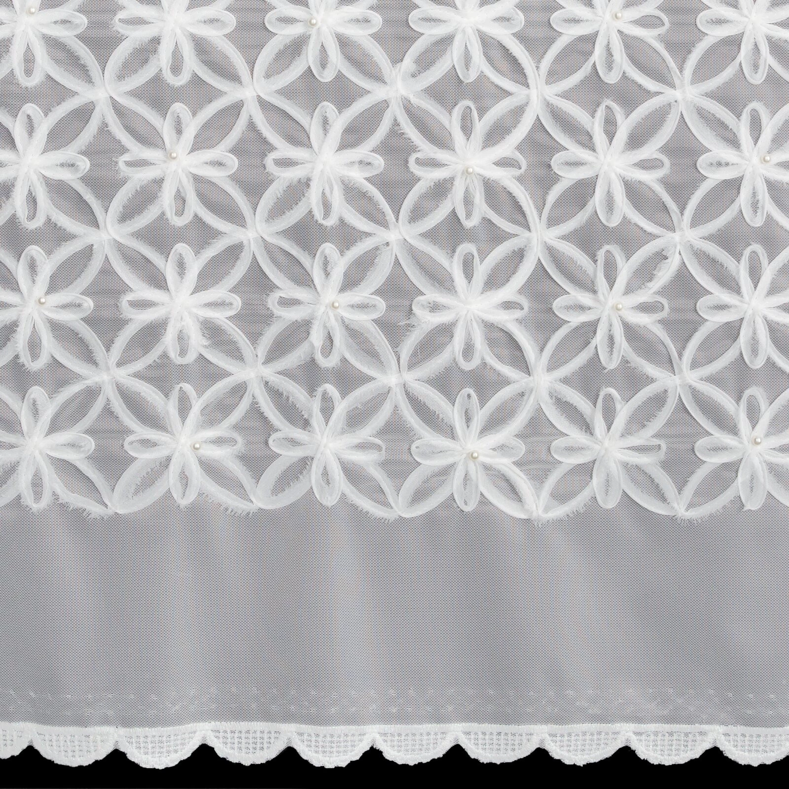 Firana gotowa z aplikacją oraz perełkami szerokość: 140 cm, długość: 250 cm, kolor: biały, Gramatura: 70 GSM, Skład: 100% poliester