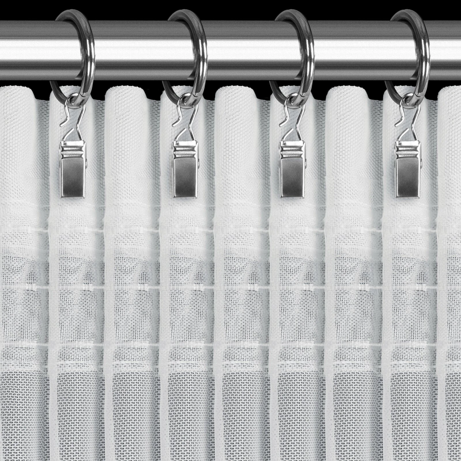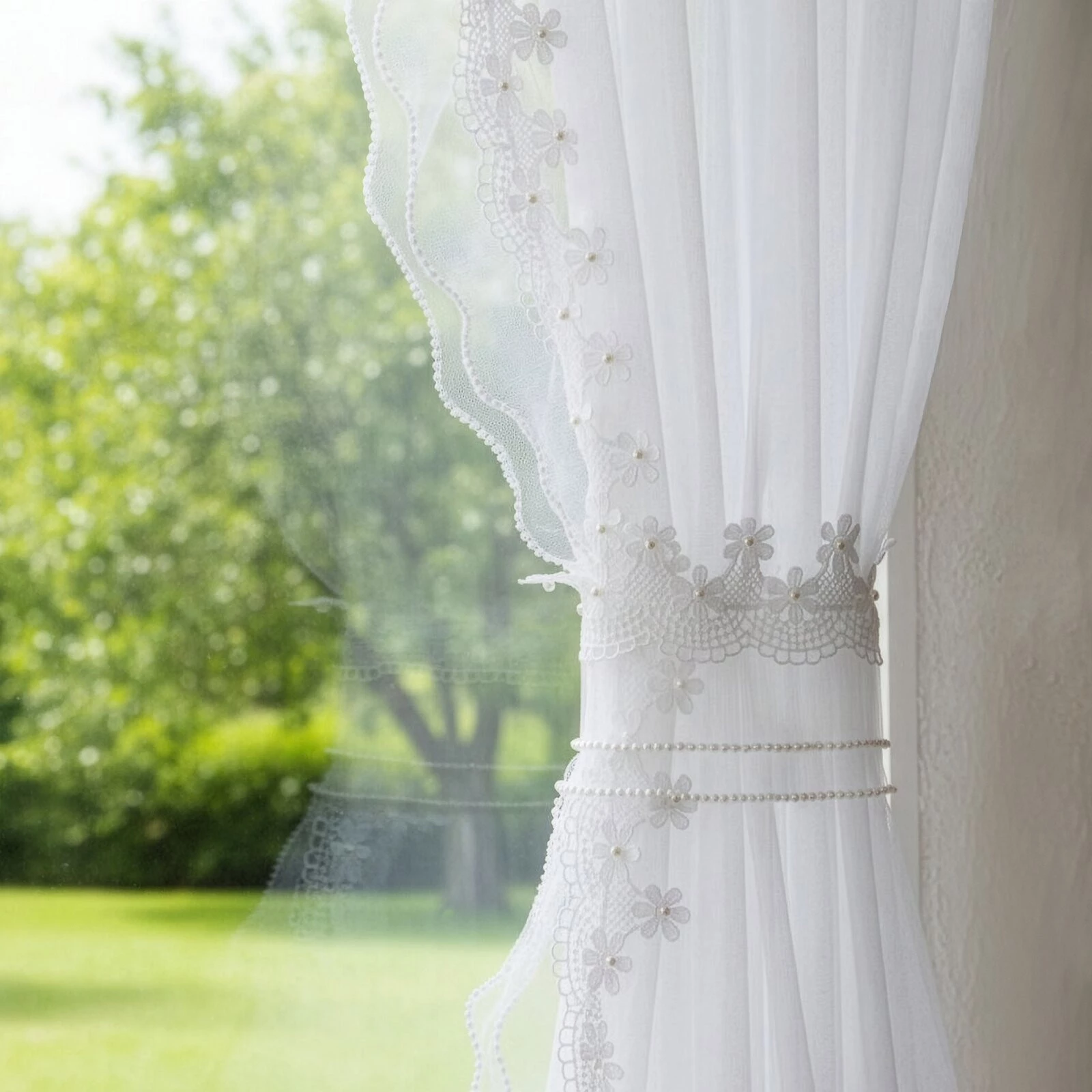 - Komplet zasłon gotowych zdobiony obszywką szerokość: 140 cm, długość: 270 cm, kolor: biały, Gramatura: 80 GSM, Skład: 100% poliester