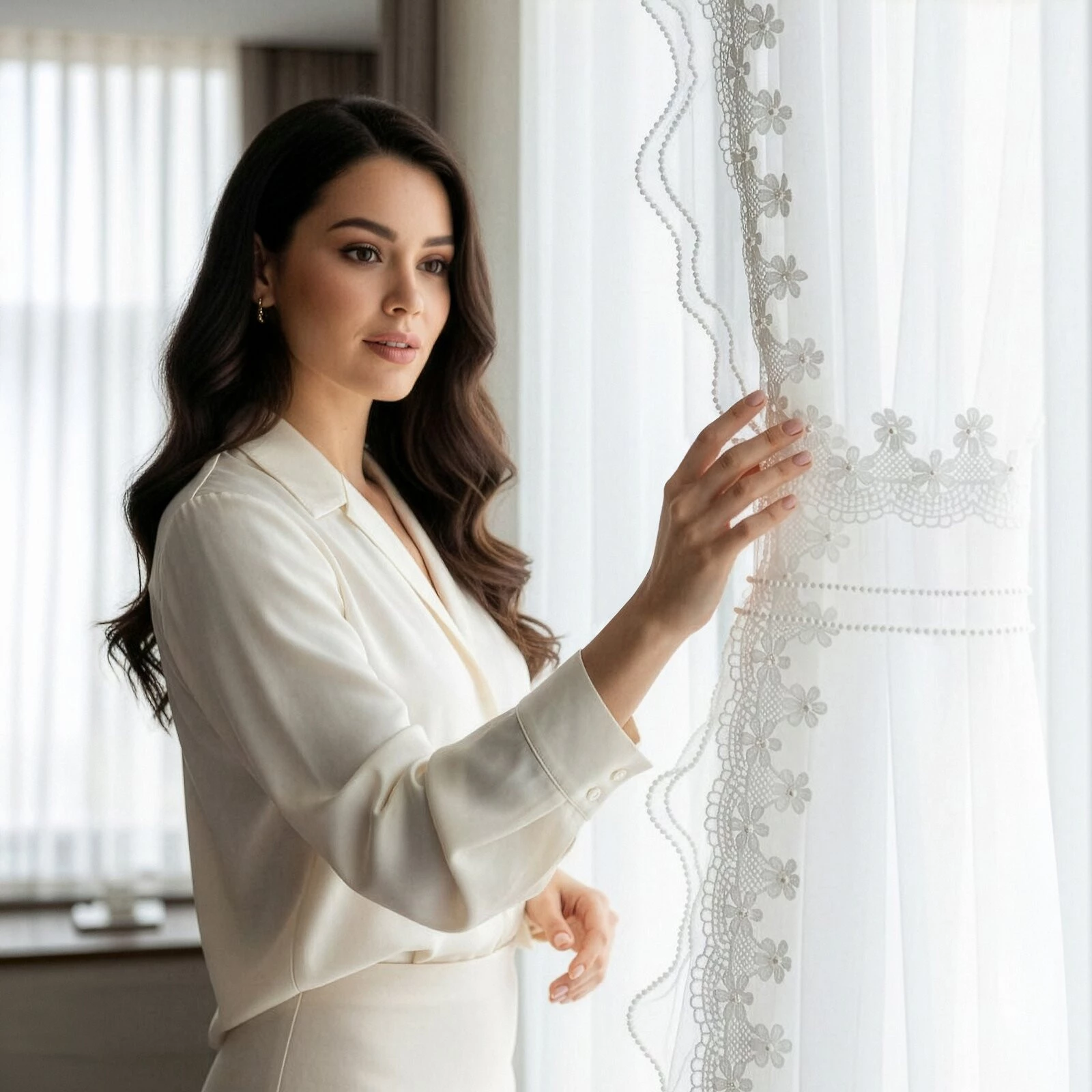 FIRANA GOTOWA LARISA NA TAŚMIE 140 X 270 CM BIAŁY
