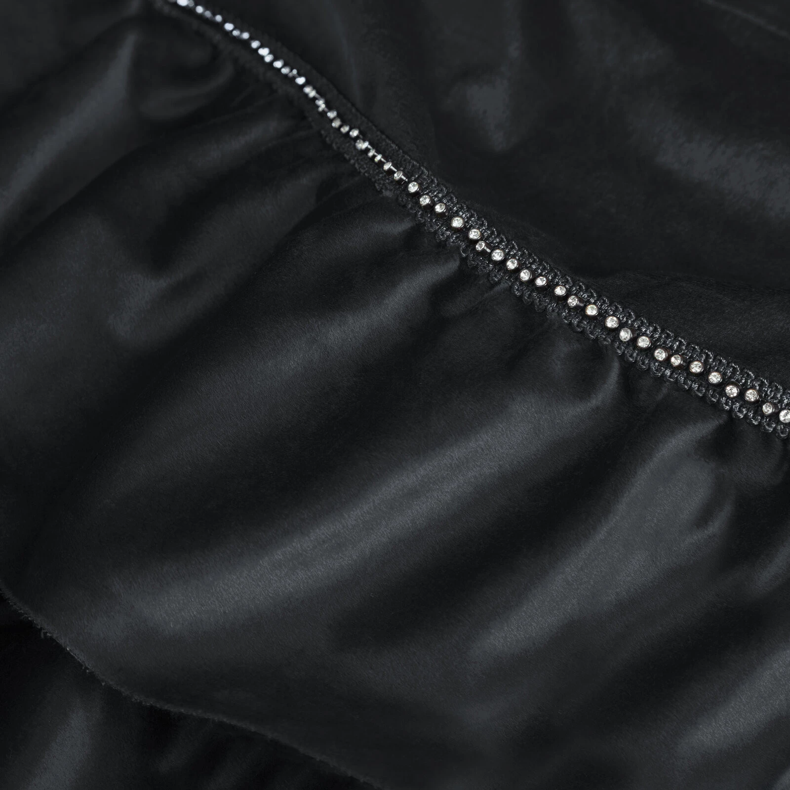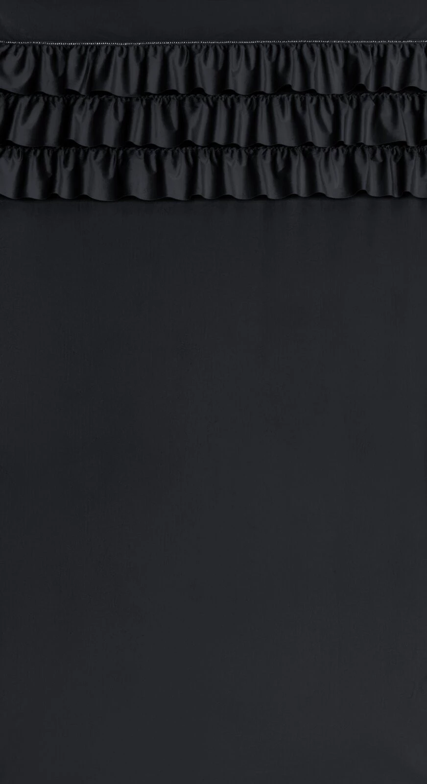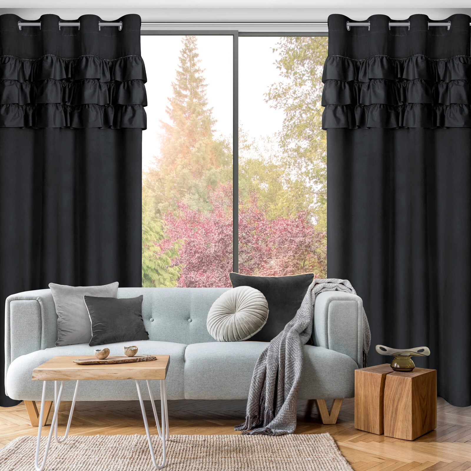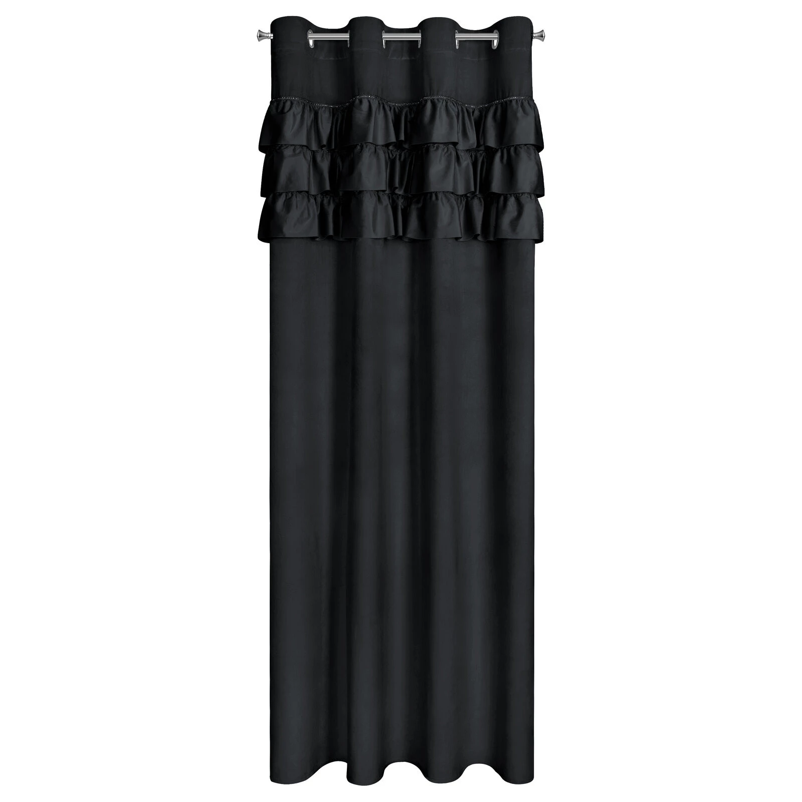 - Zasłona gotowa zdobiona w górnej części falbanami i taśmą z cyrkoniami szerokość: 140 cm, długość: 250 cm, kolor: czarny, Gramatura: 200 GSM, Skład: 100% poliester