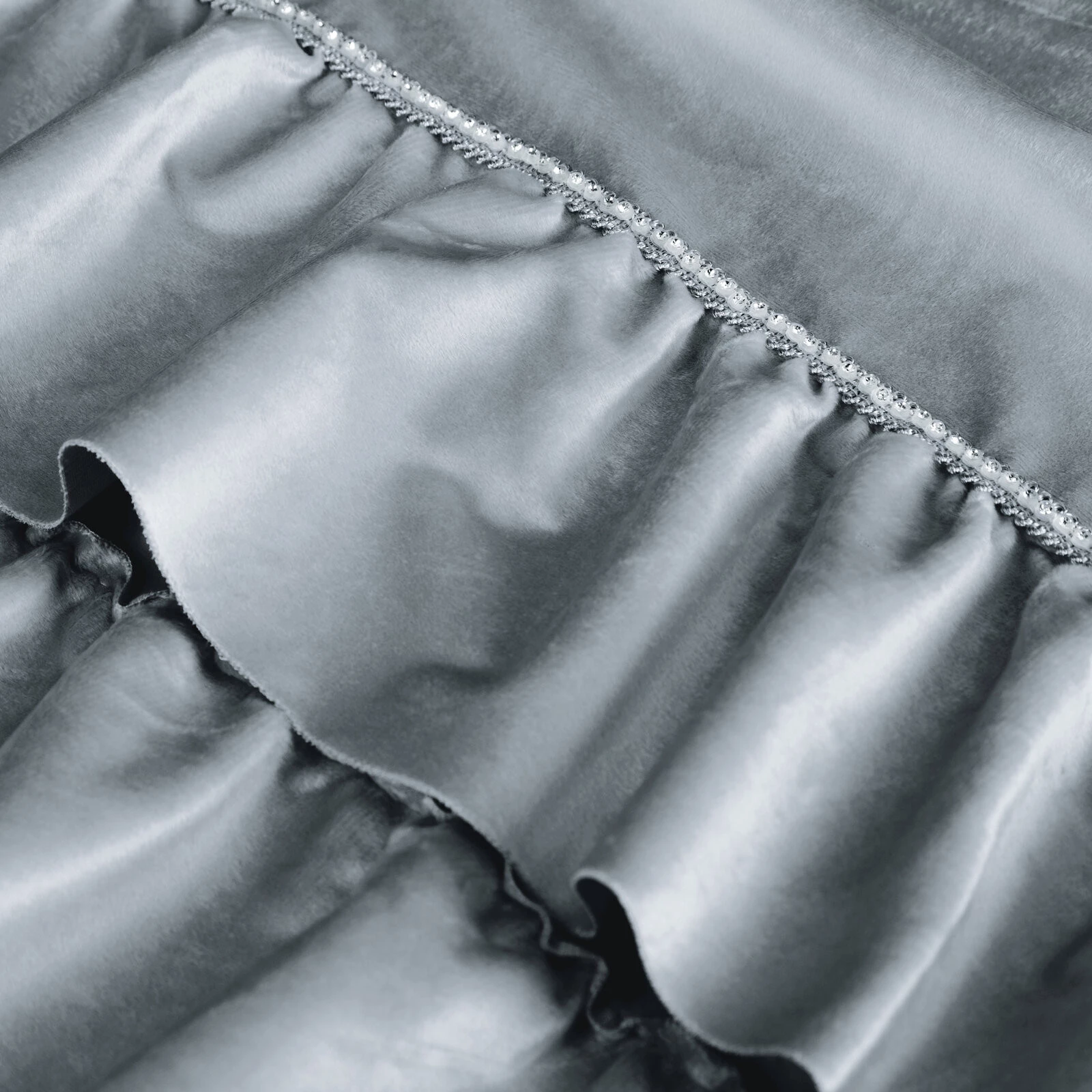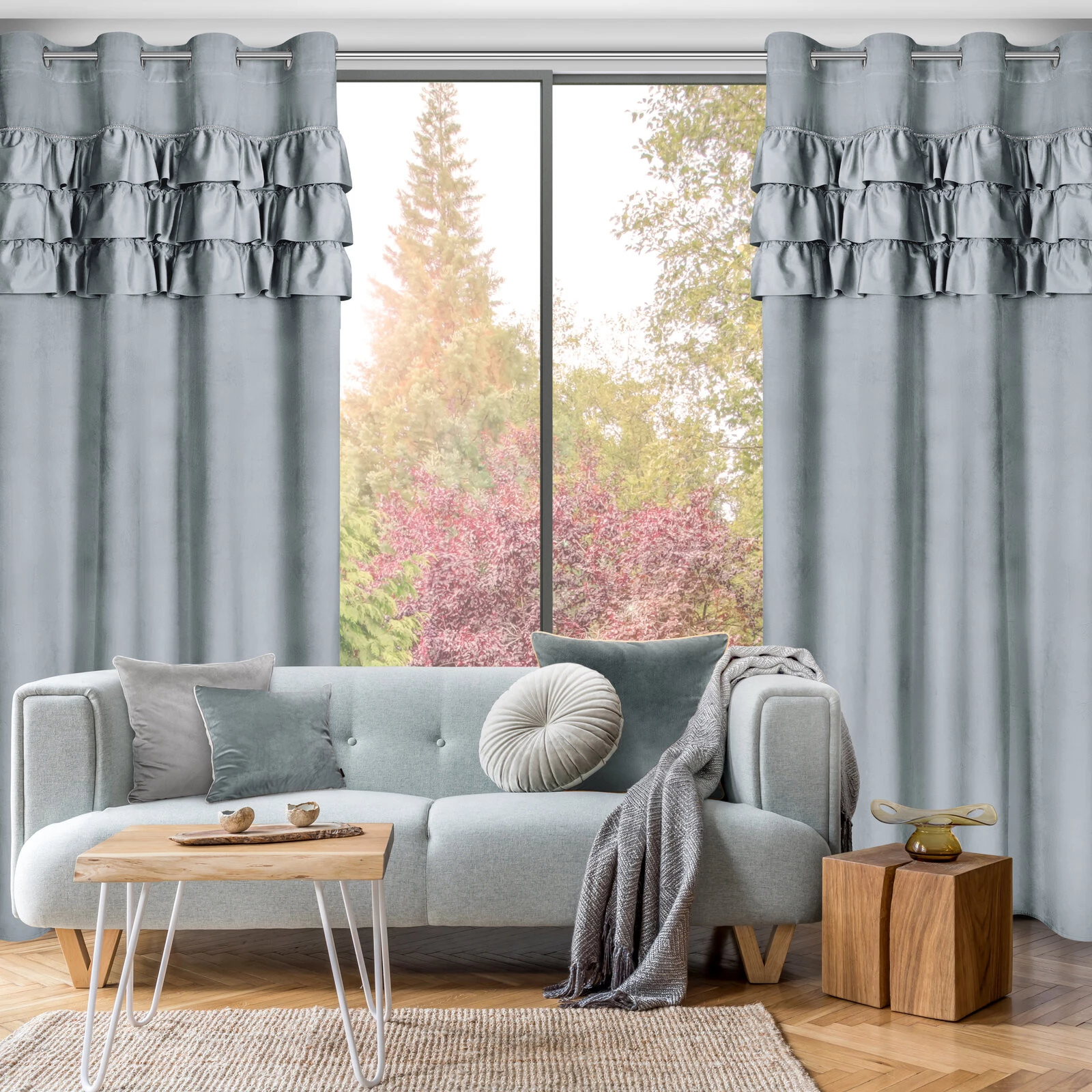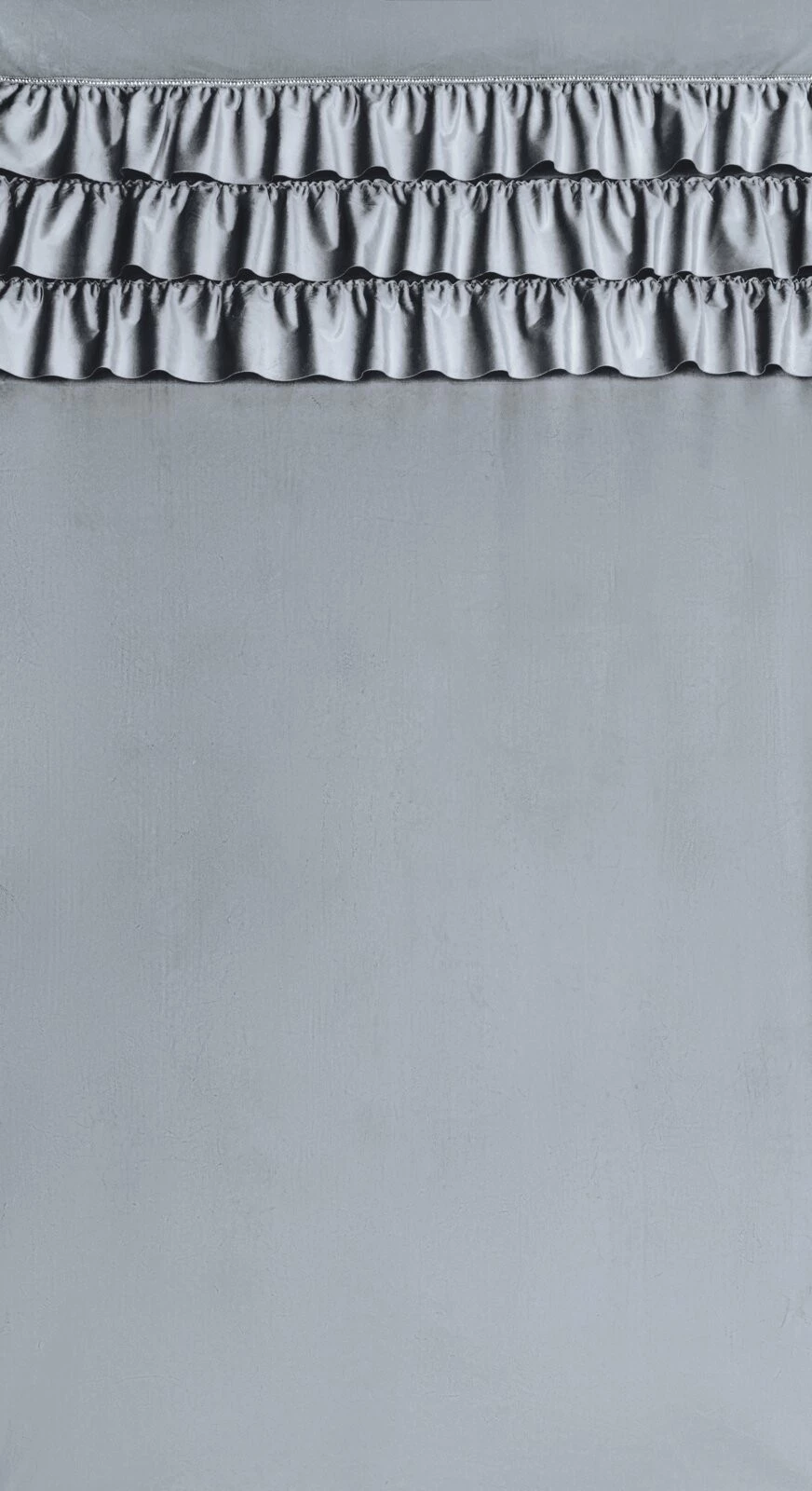 - Zasłona gotowa zdobiona w górnej części falbanami i taśmą z cyrkoniami szerokość: 140 cm, długość: 250 cm, kolor: srebrny, Gramatura: 200 GSM, Skład: 100% poliester