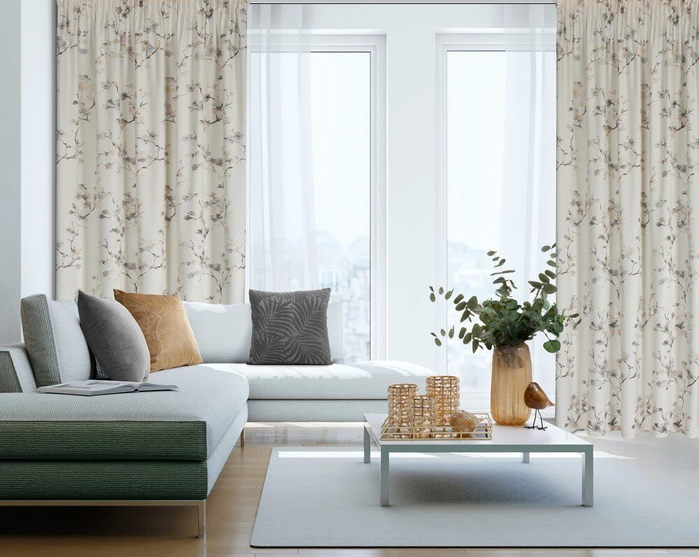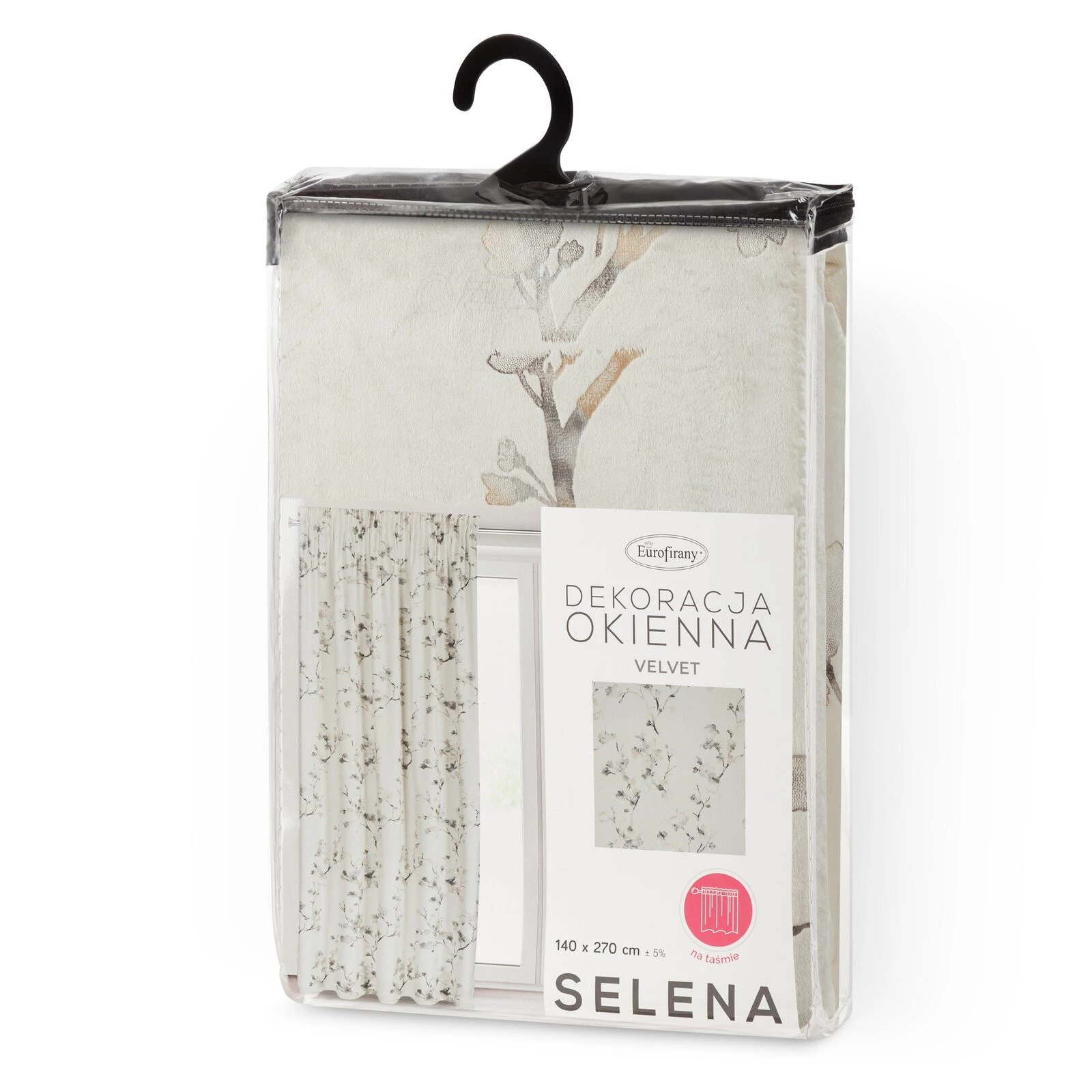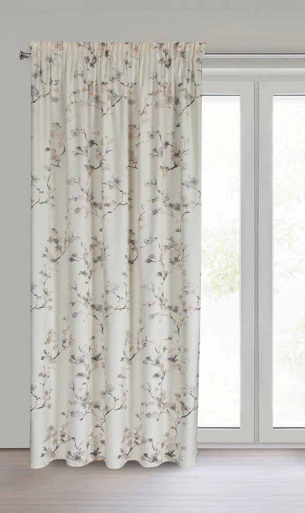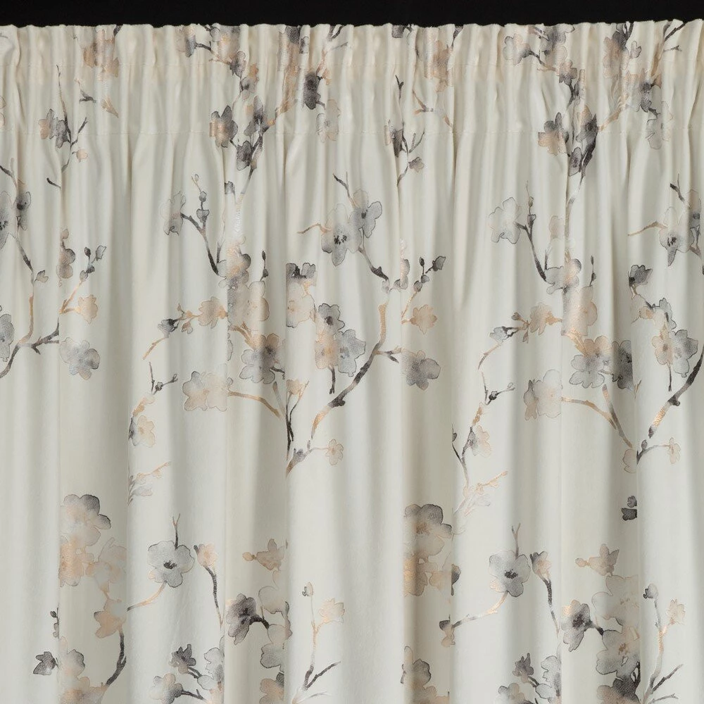 - Zasłona gotowa welwetowa z błyszczącym nadrukiem szerokość: 140 cm, długość: 270 cm, kolor: kremowy, Gramatura: 200 GSM, Skład: 100% poliester