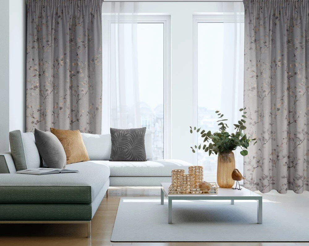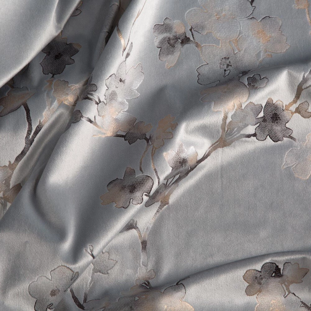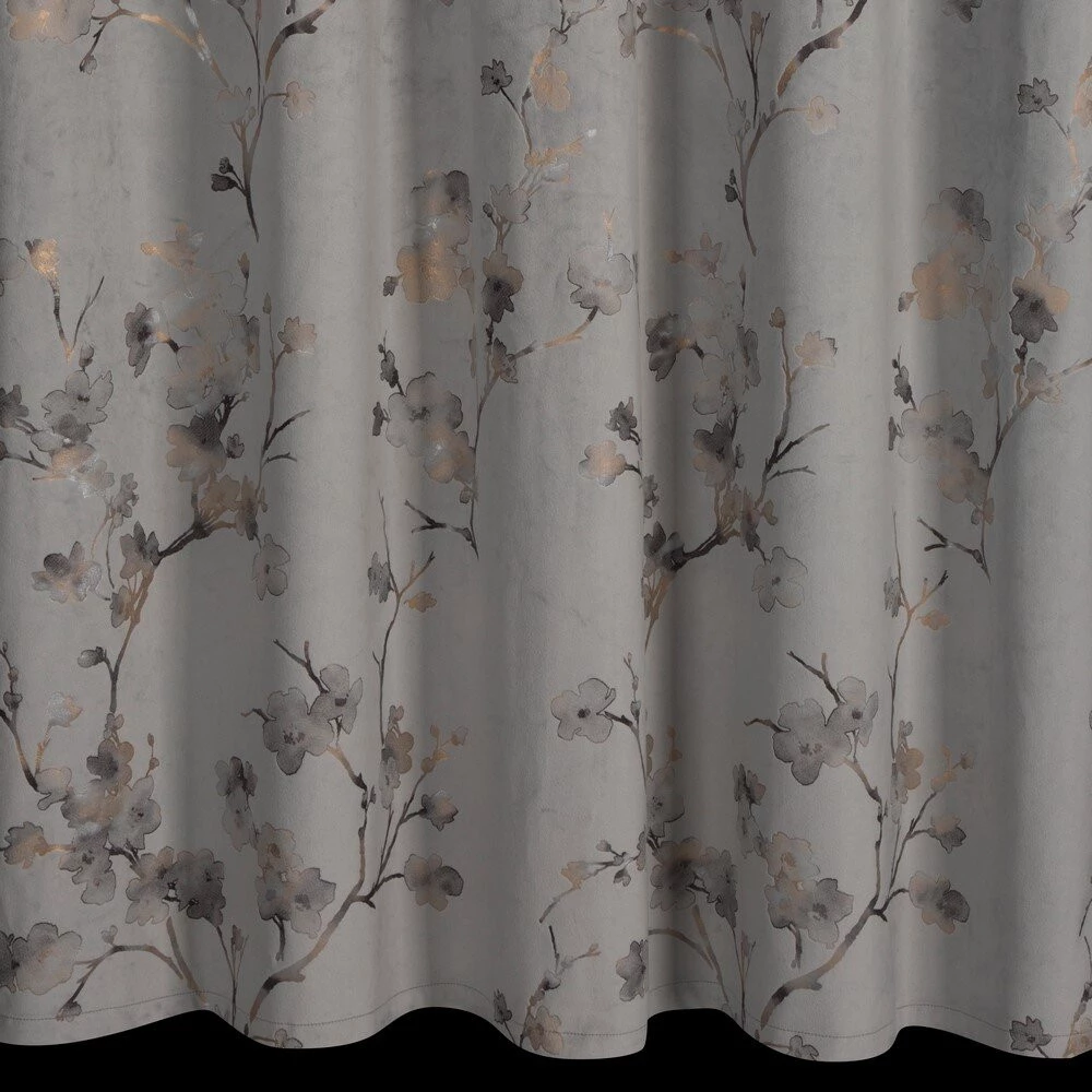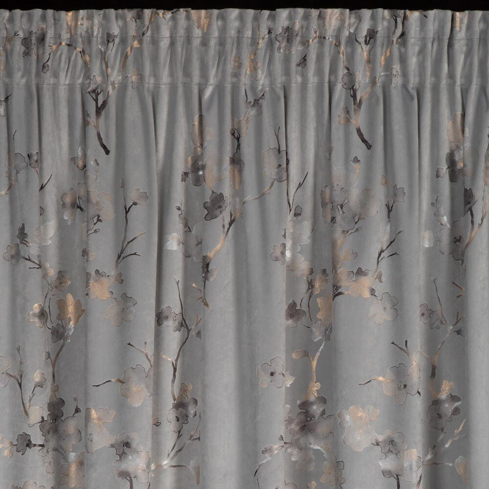Zasłona gotowa welwetowa z błyszczącym nadrukiem szerokość: 140 cm, długość: 270 cm, kolor: srebrny, Gramatura: 200 GSM, Skład: 100% poliester