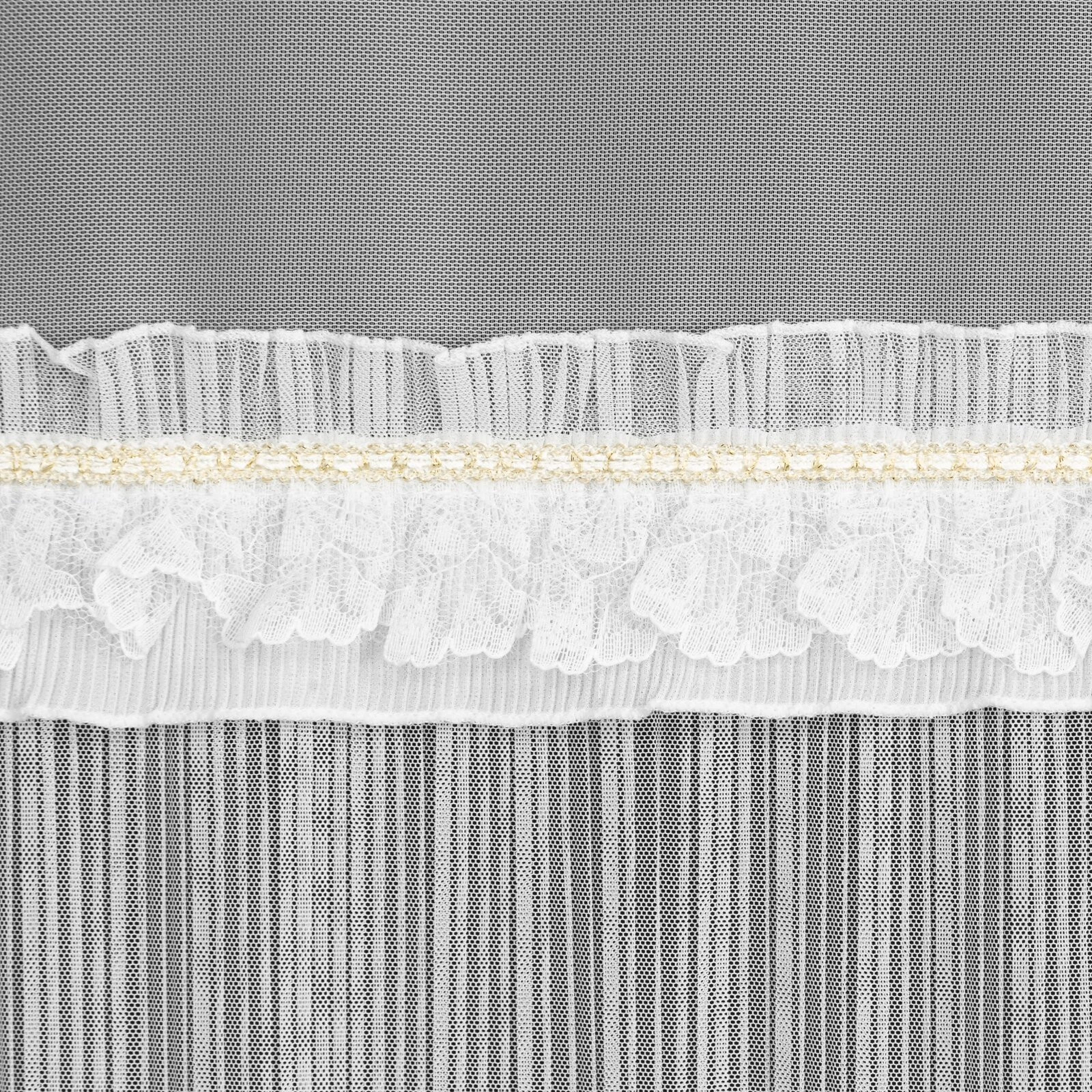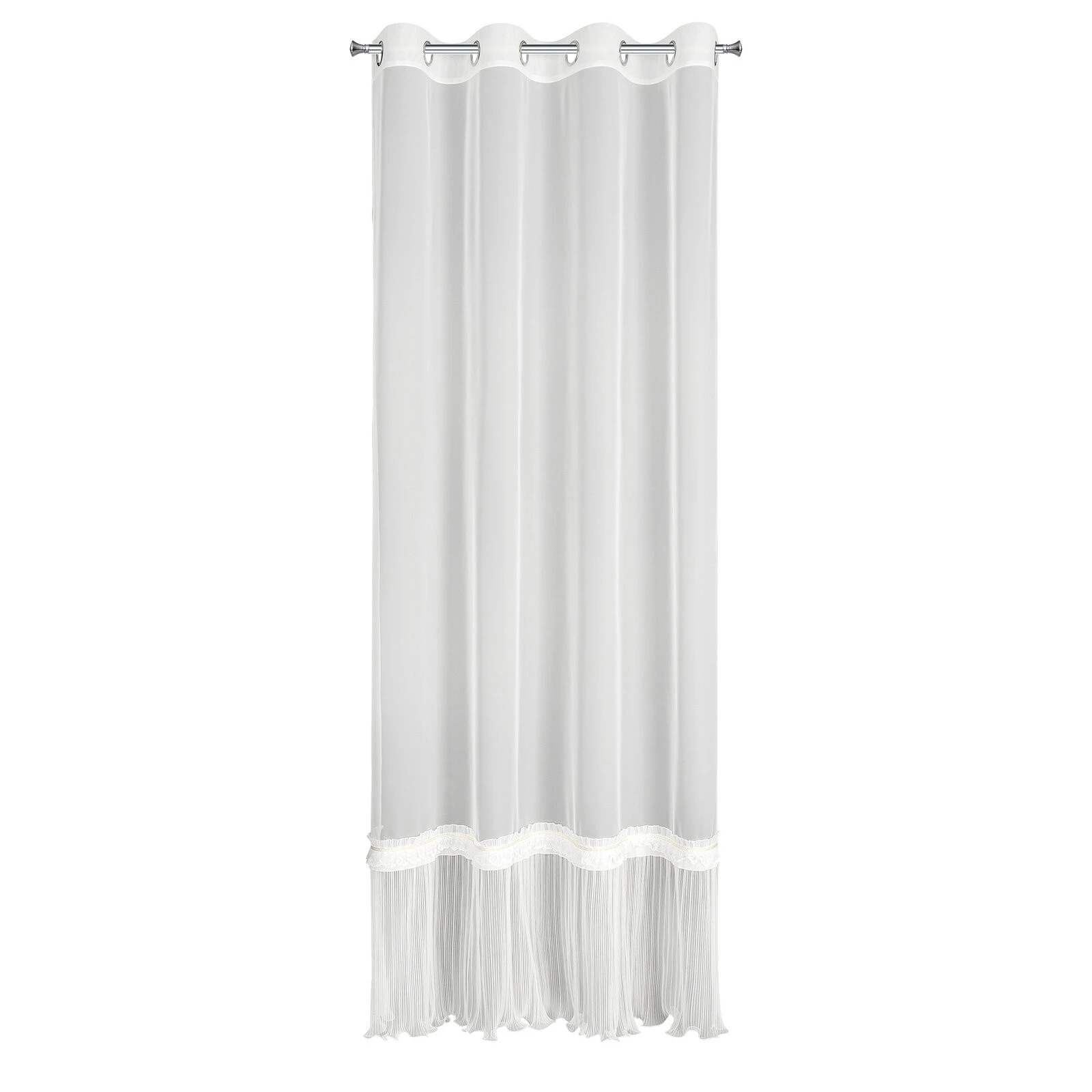 Firana gotowa zdobiona falbanką szerokość: 140 cm, długość: 250 cm, kolor: biały, Gramatura: 65 GSM, Skład: 100% poliester