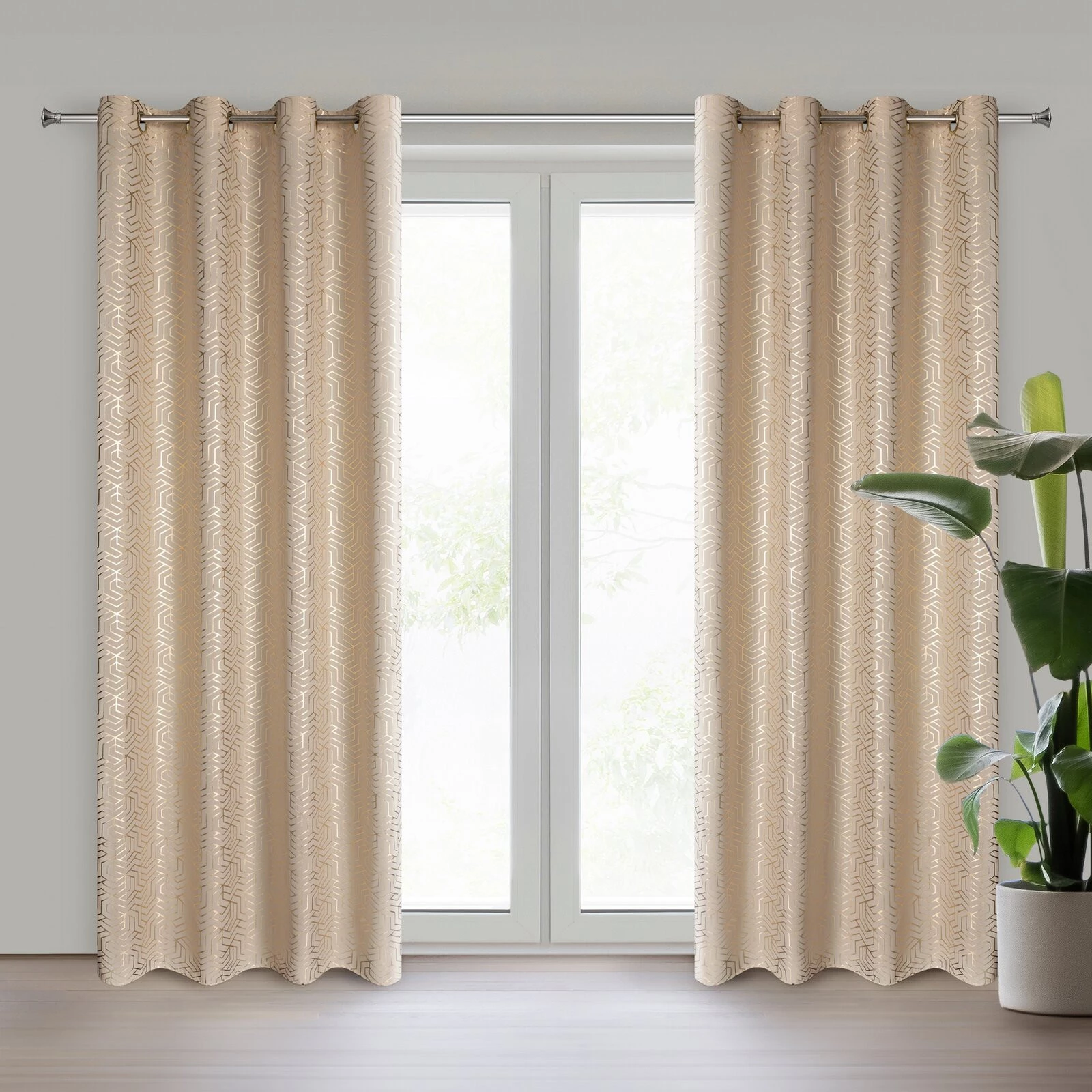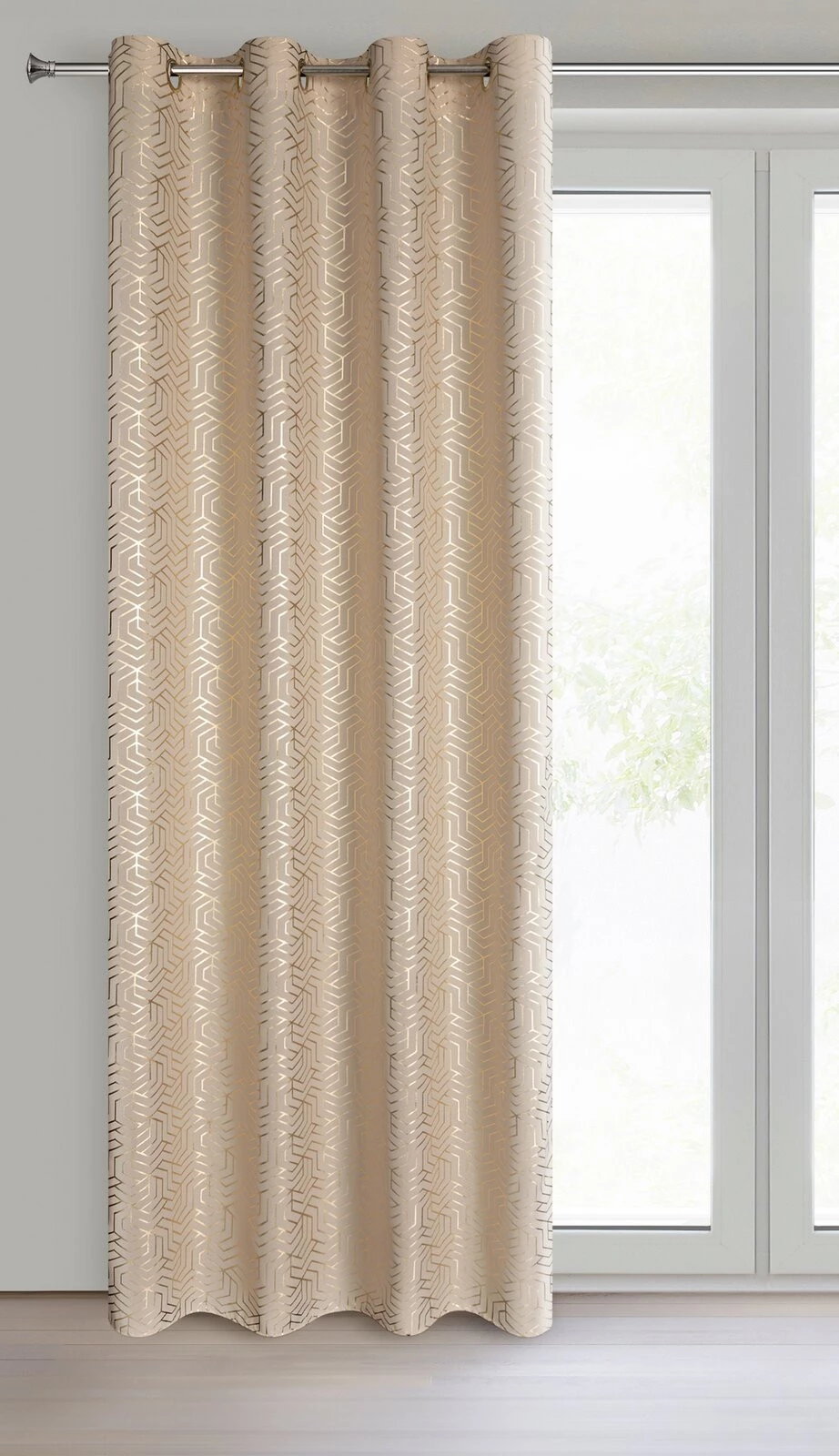 Zasłona gotowa z nadrukiem błyszczącym szerokość: 140 cm, długość: 250 cm, kolor: beżowy, Gramatura: 140 GSM, Skład: 100% poliester