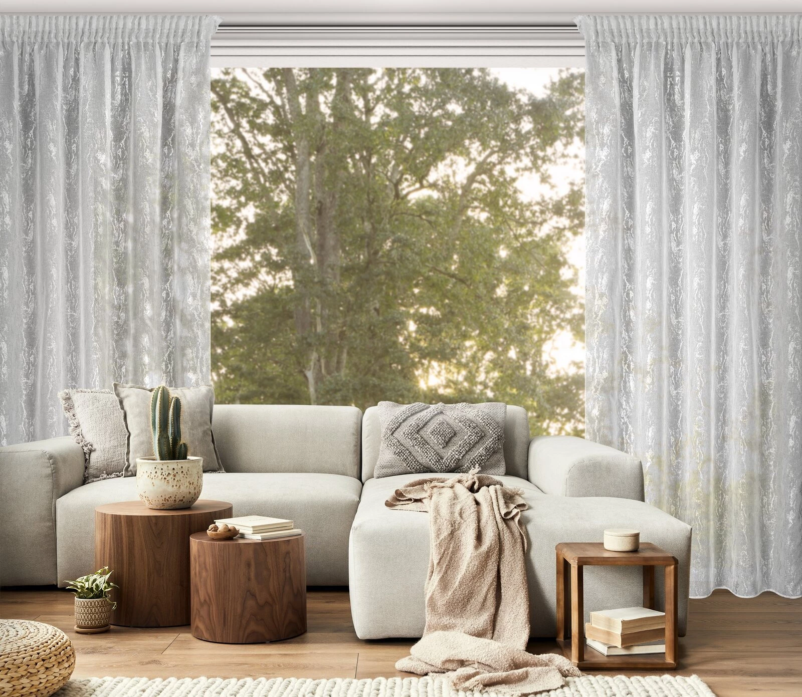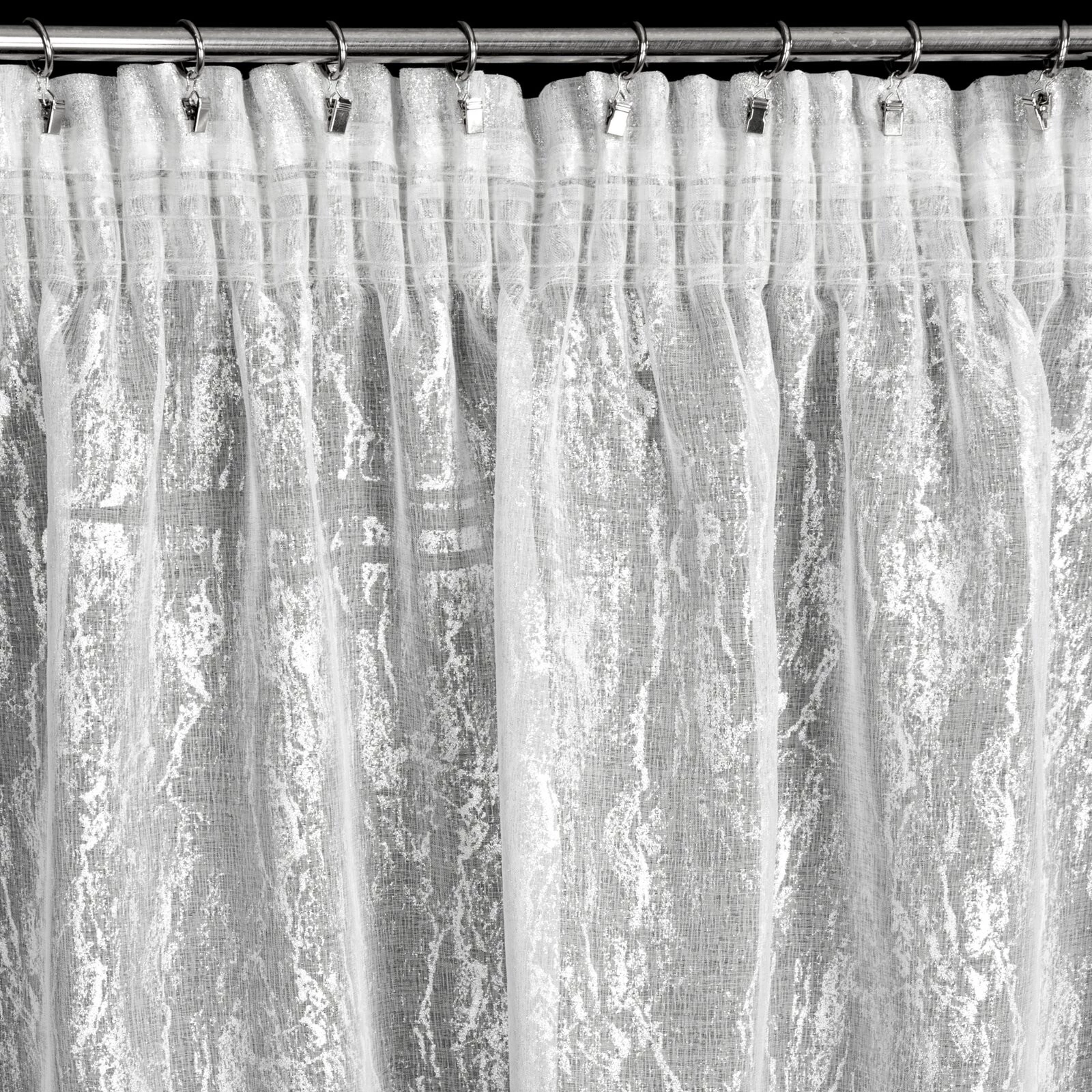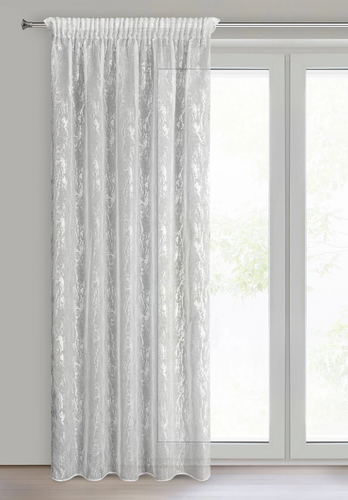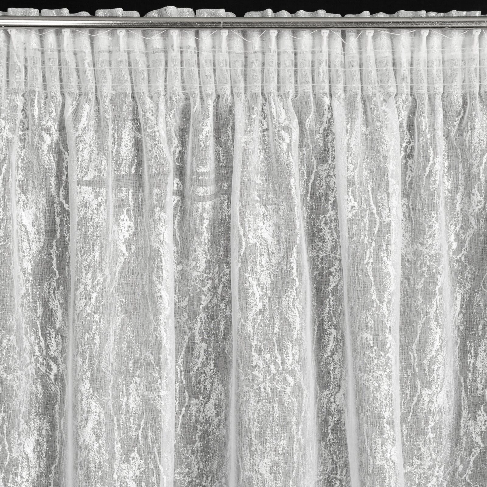 - Firana gotowa z nadrukiem błyszczącym szerokość: 140 cm, długość: 270 cm, kolor: biały, Gramatura: 70 GSM, Skład: 100% poliester