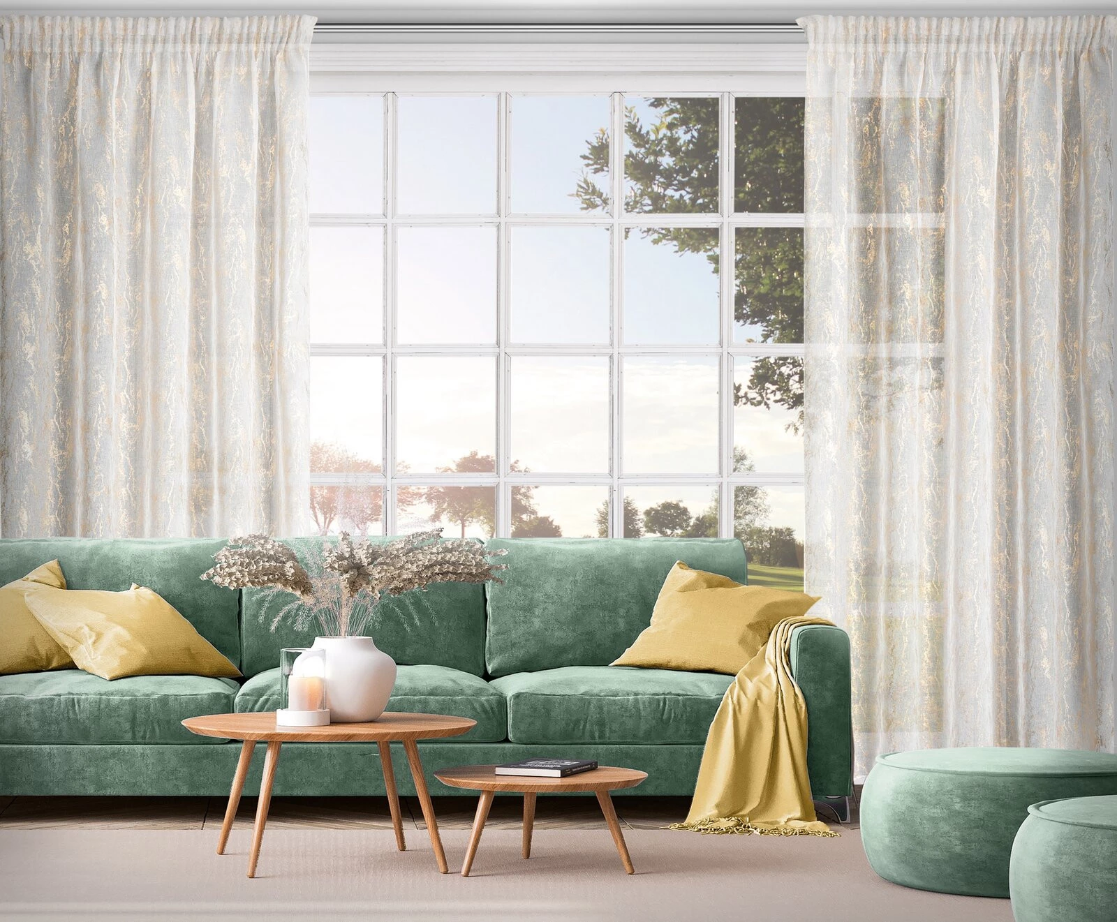 • Firana gotowa z nadrukiem błyszczącym szerokość: 140 cm, długość: 270 cm, kolor: biały, Gramatura: 70 GSM, Skład: 100% poliester