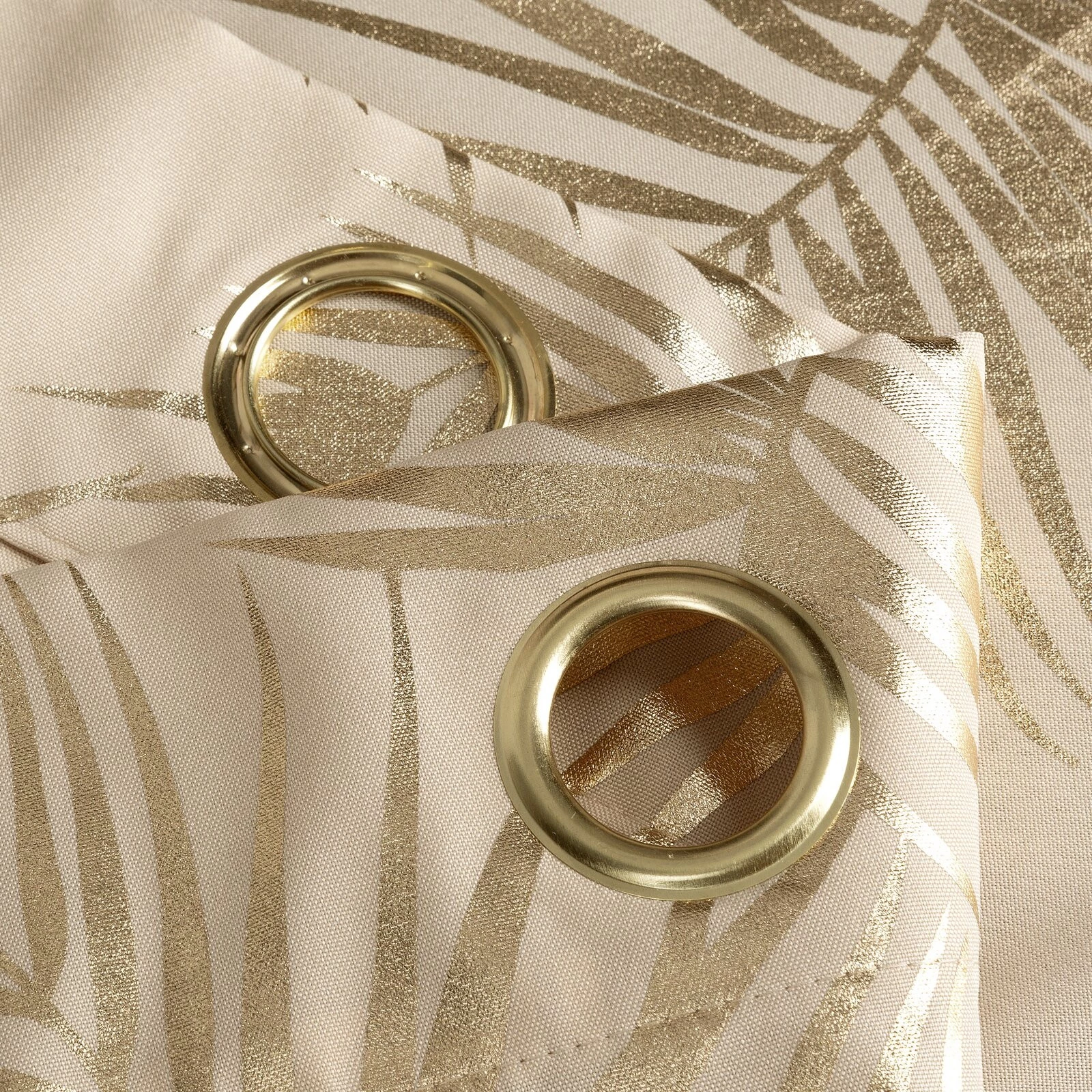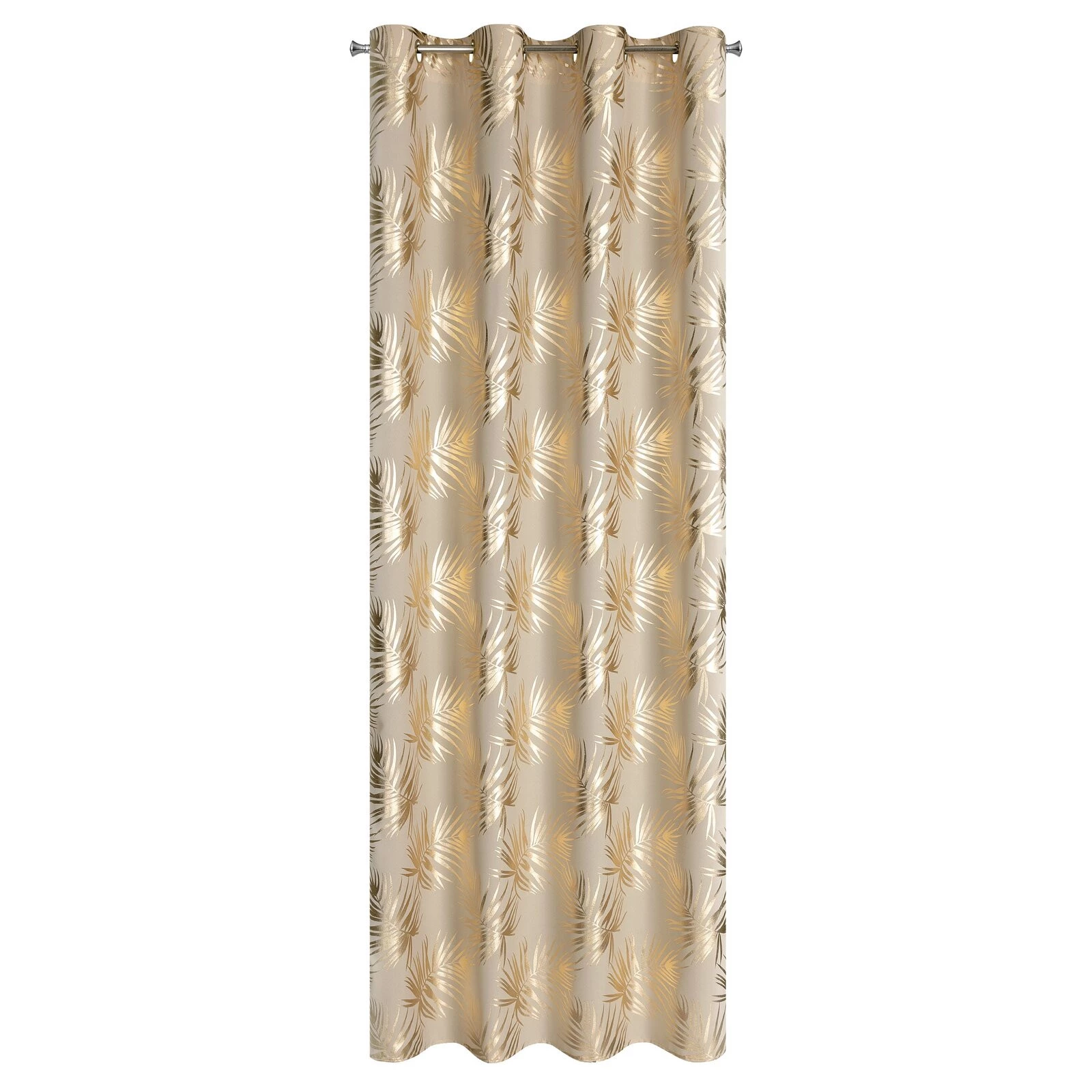 - Zasłona gotowa z nadrukiem błyszczącym szerokość: 140 cm, długość: 250 cm, kolor: beżowy, Gramatura: 140 GSM, Skład: 100% poliester
