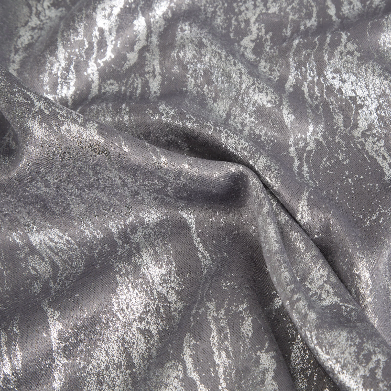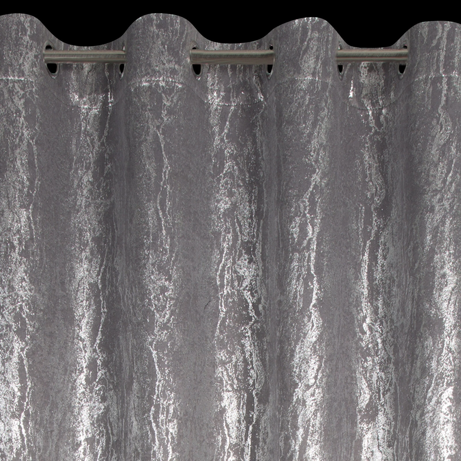 Zasłona gotowa zaciemniająca z nadrukiem błyszczącym szerokość: 140 cm, długość: 250 cm, kolor: stalowy, Gramatura: 230 GSM, Skład: 100% poliester