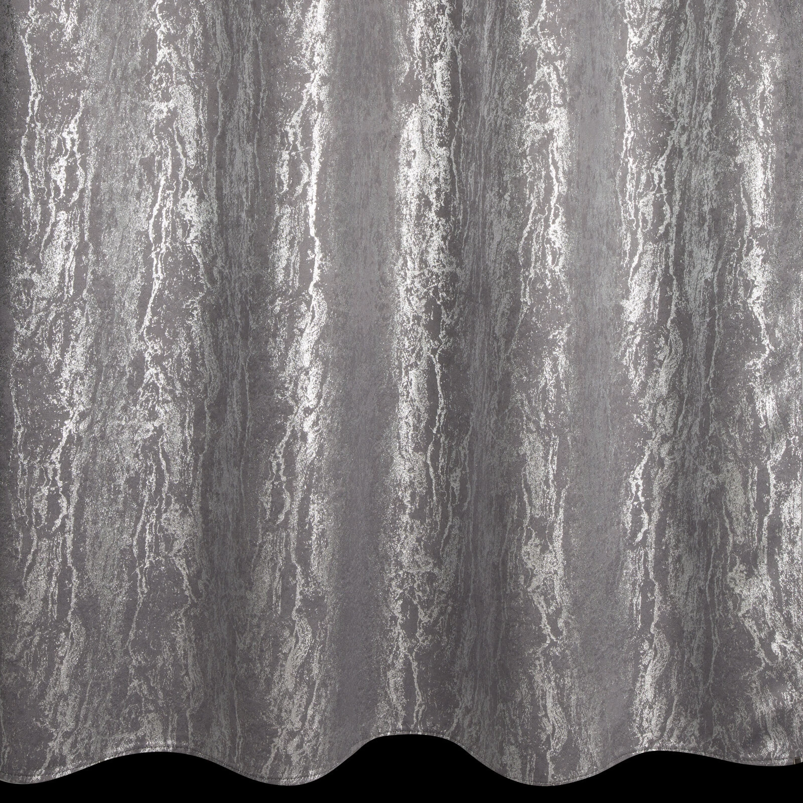 - Zasłona gotowa zaciemniająca z nadrukiem błyszczącym szerokość: 140 cm, długość: 250 cm, kolor: stalowy, Gramatura: 230 GSM, Skład: 100% poliester