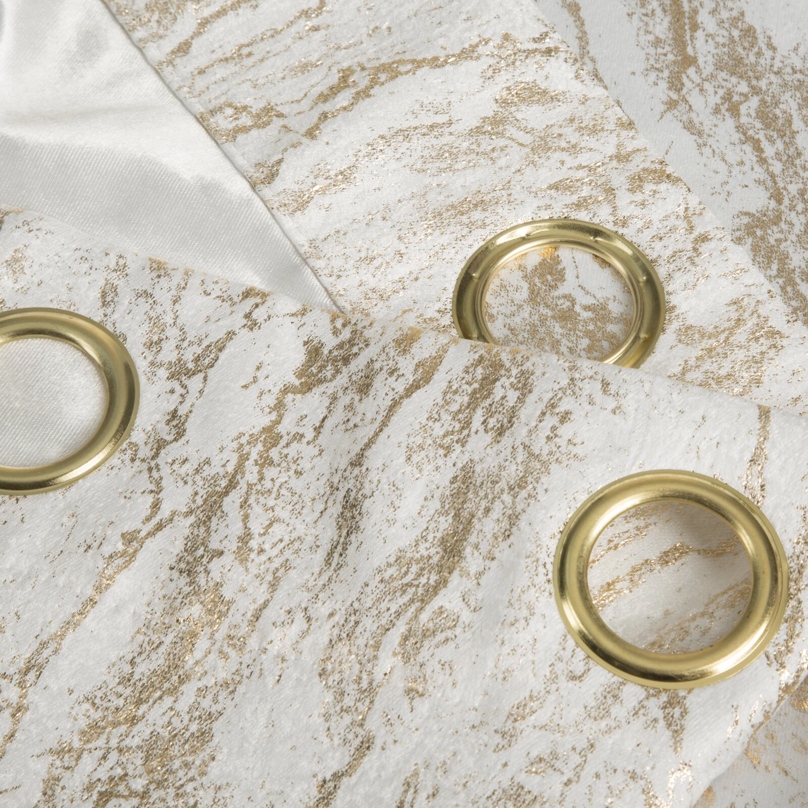 - Zasłona gotowa zaciemniająca z nadrukiem błyszczącym szerokość: 140 cm, długość: 250 cm, kolor: biały, Gramatura: 230 GSM, Skład: 100% poliester
