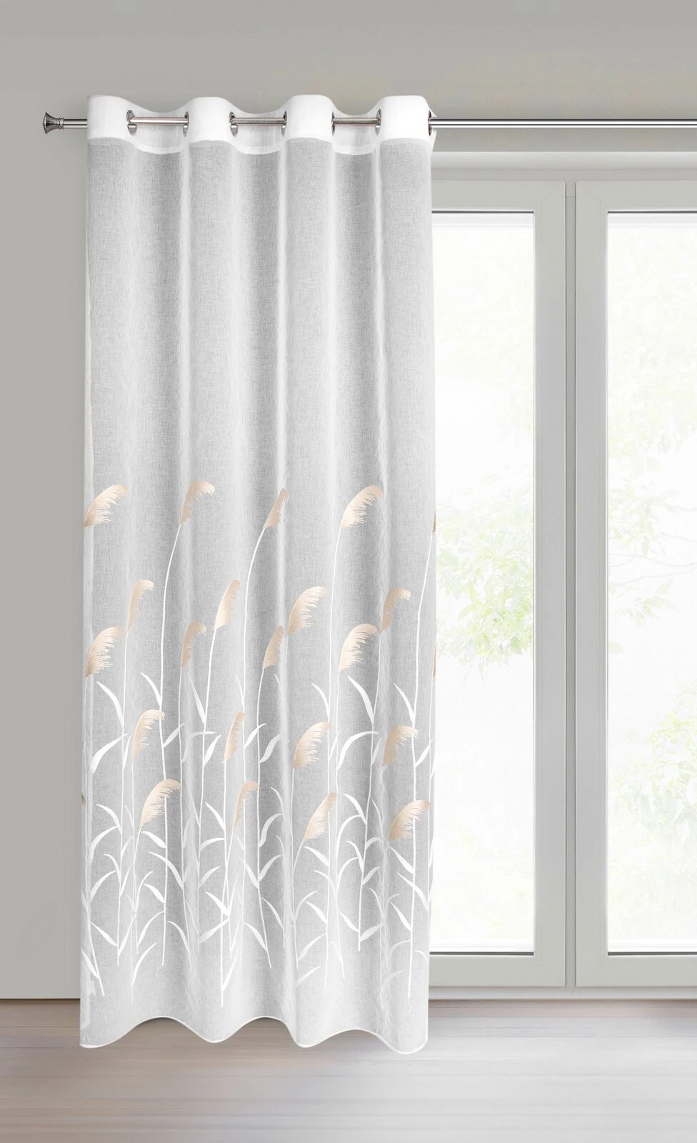 Firana gotowa zdobiona haftem szerokość: 140 cm, długość: 250 cm, kolor: kremowy, Skład: 100% poliester