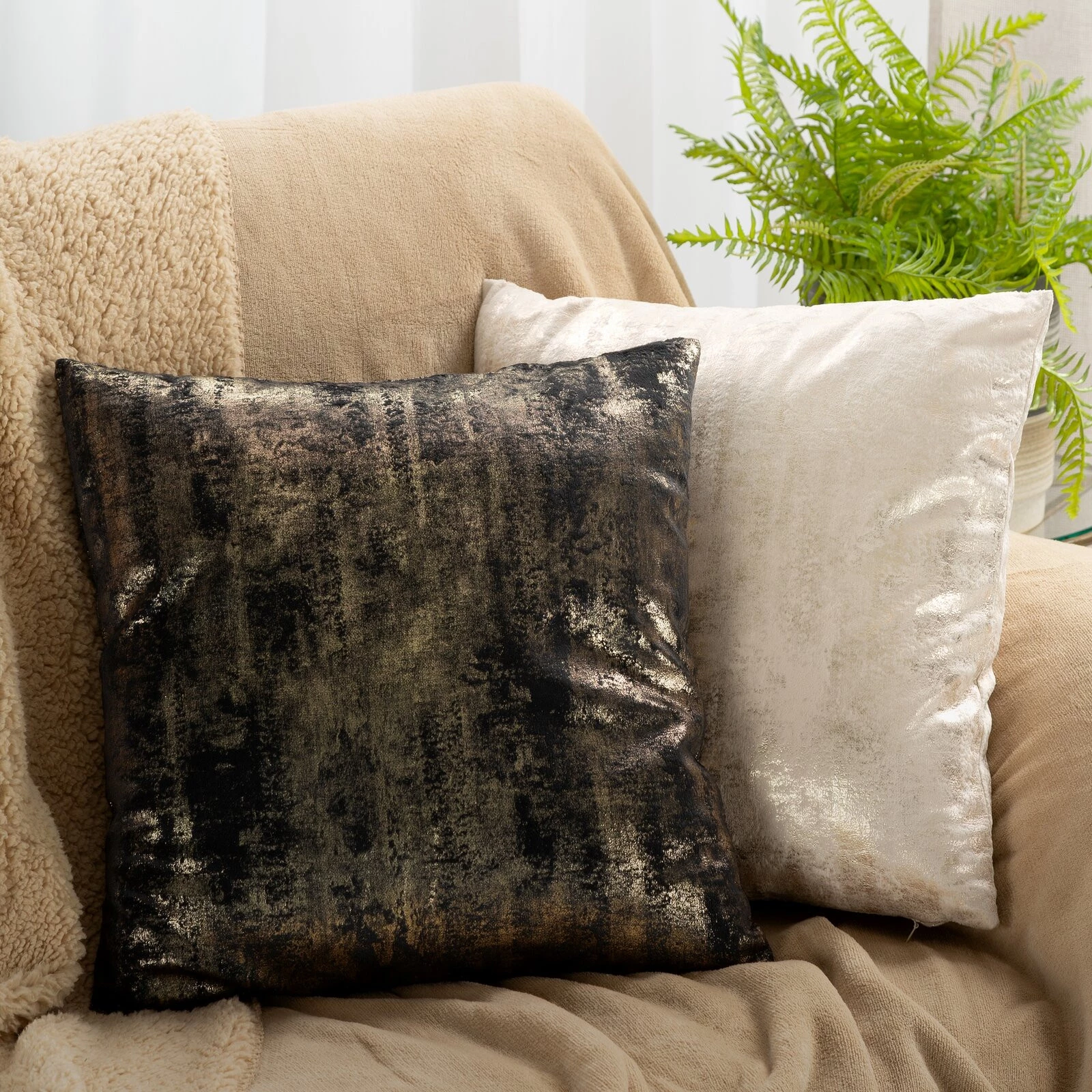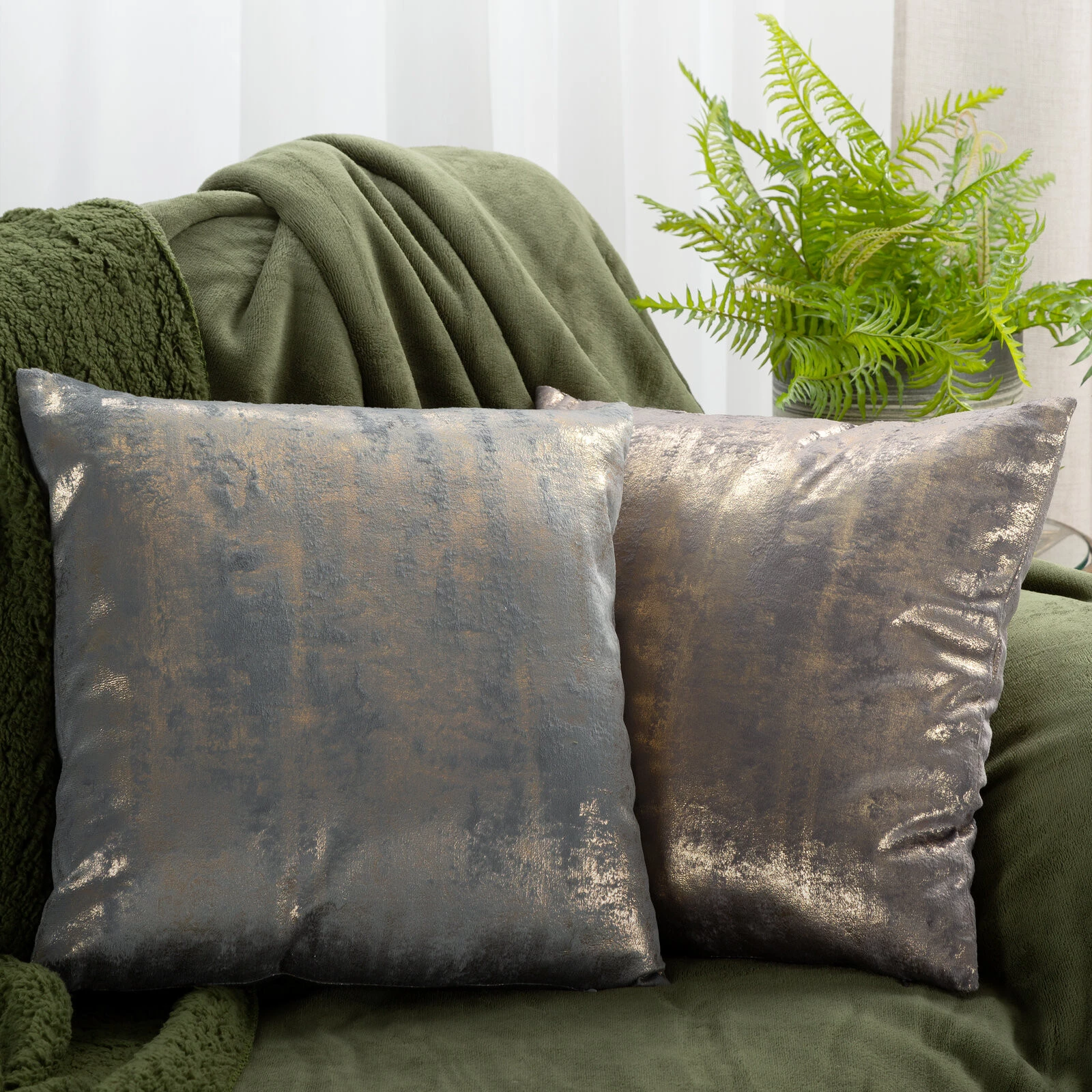- Poszewka welwetowa z błyszczącym nadrukiem szerokość: 45 cm, długość: 45 cm, kolor: szary, Gramatura: 200 GSM, Skład: 100% poliester