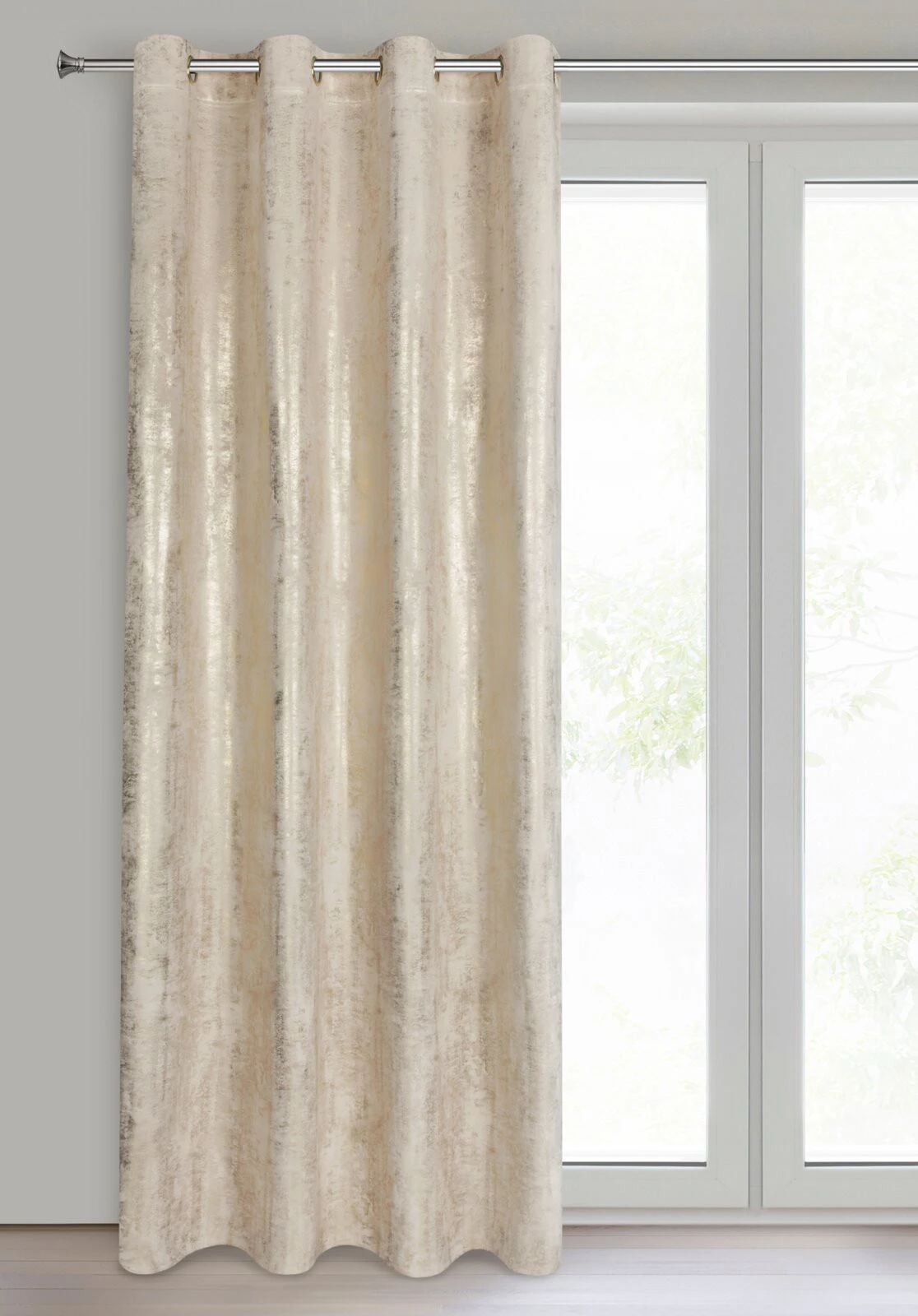 Zasłona gotowa welwetowa z błyszczącym nadrukiem szerokość: 140 cm, długość: 250 cm, kolor: jasnobeżowy, Gramatura: 200 GSM, Skład: 100% poliester