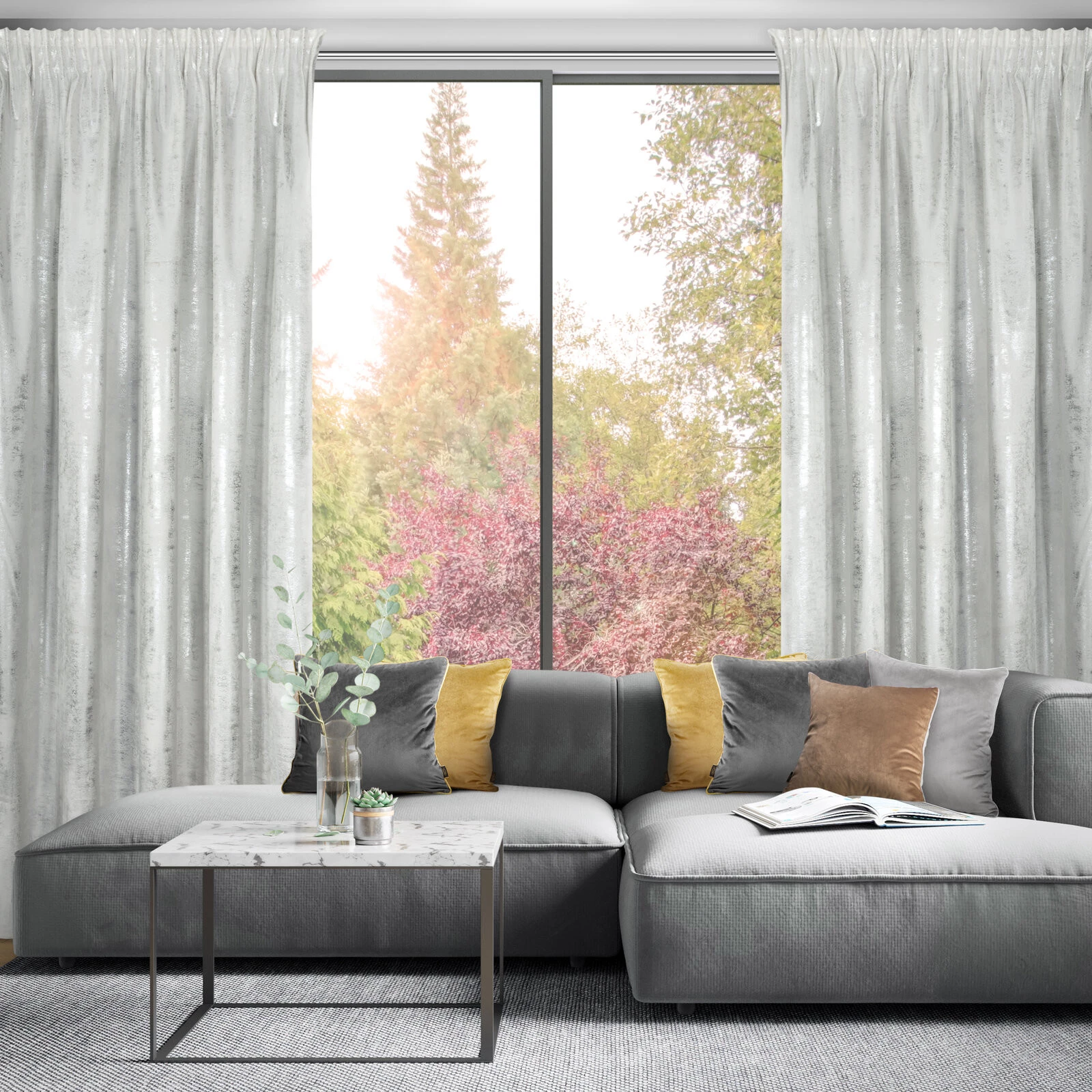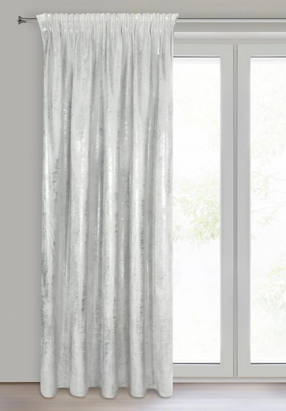 Zasłona gotowa welwetowa z błyszczącym nadrukiem szerokość: 140 cm, długość: 270 cm, kolor: biały, Gramatura: 200 GSM, Skład: 100% poliester