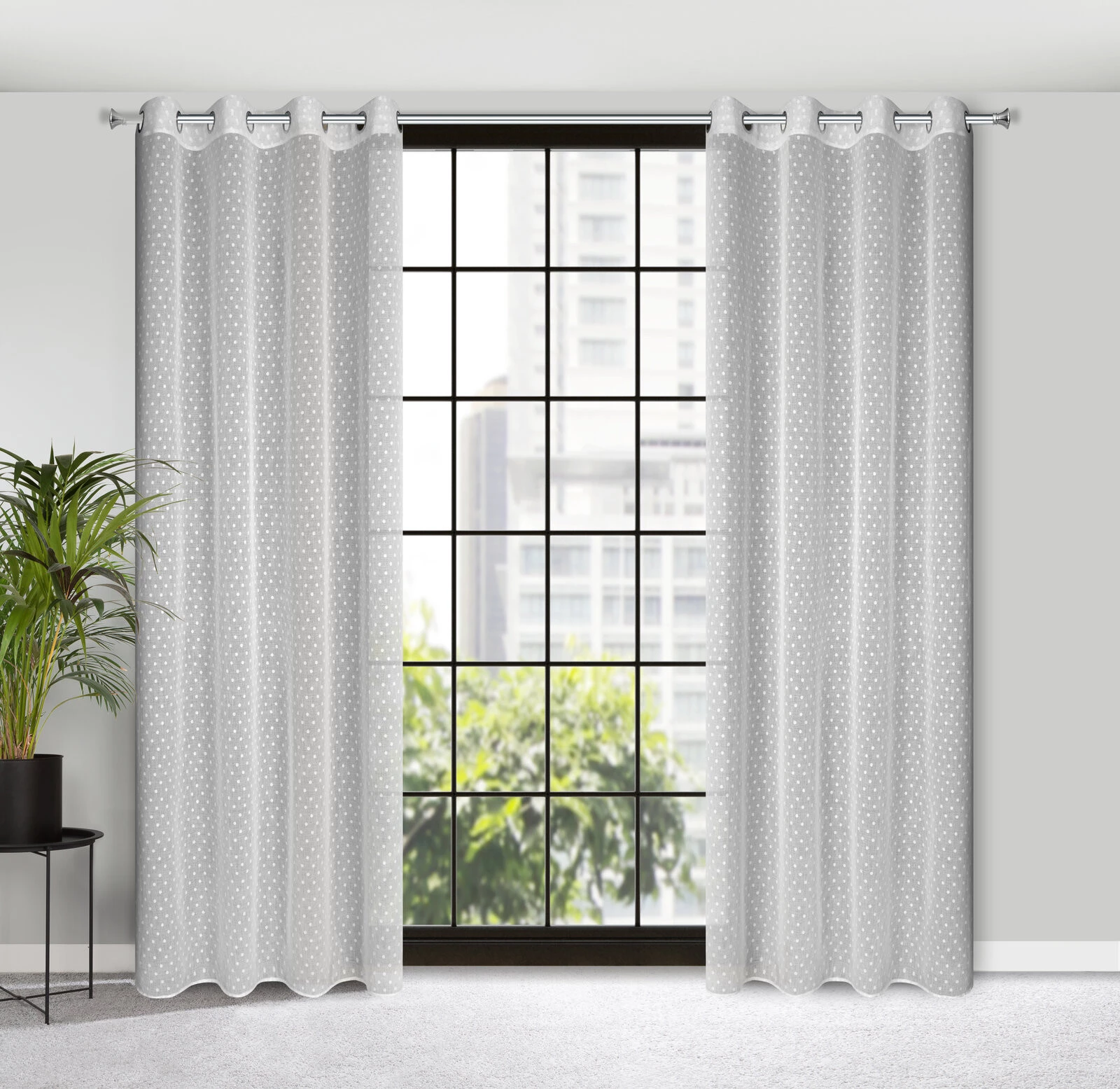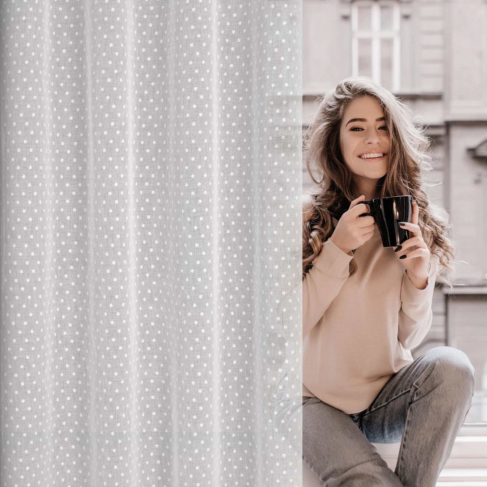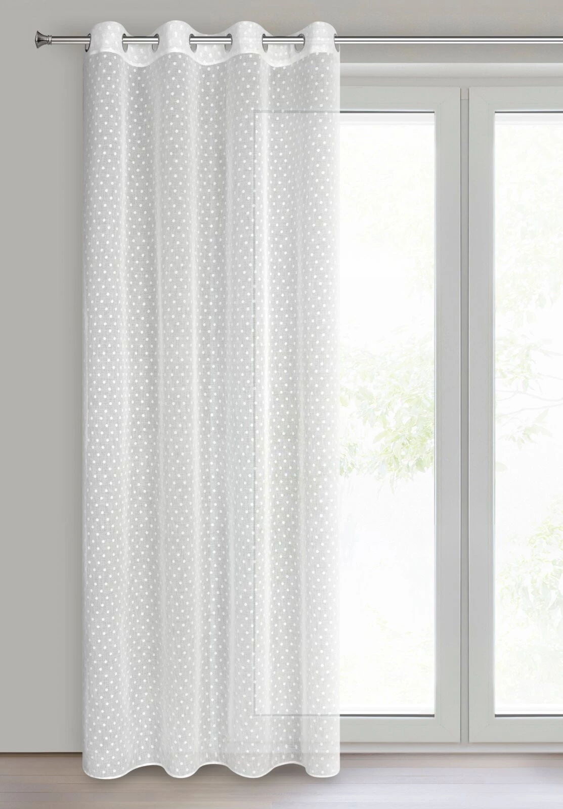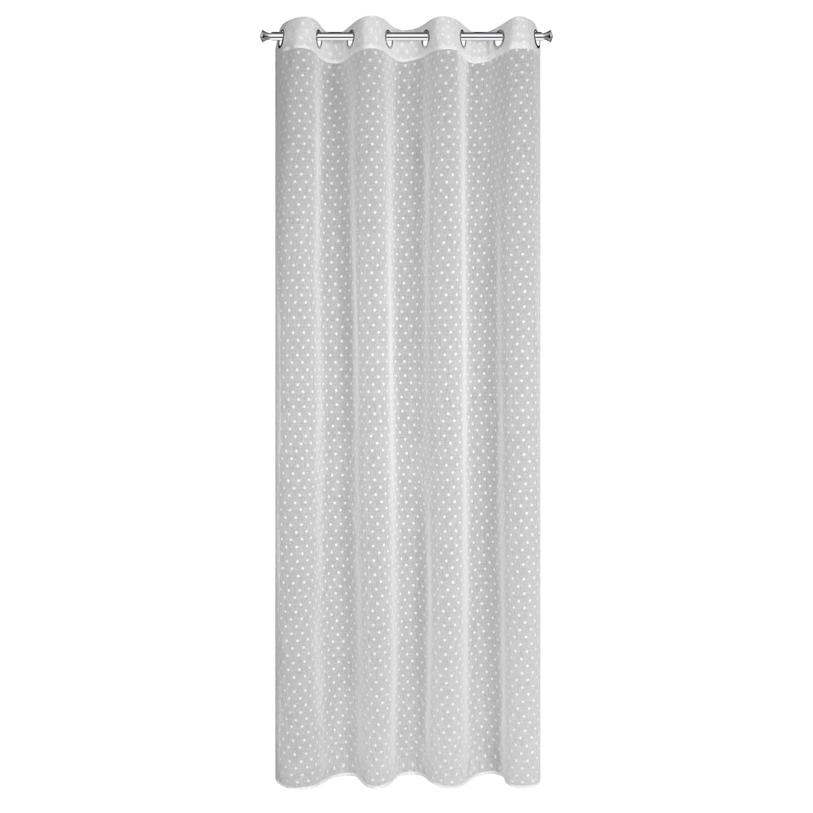 Zasłona gotowa zdobiona groszkami szerokość: 140 cm, długość: 250 cm, kolor: biały, Gramatura: 80 GSM, Skład: 100% poliester