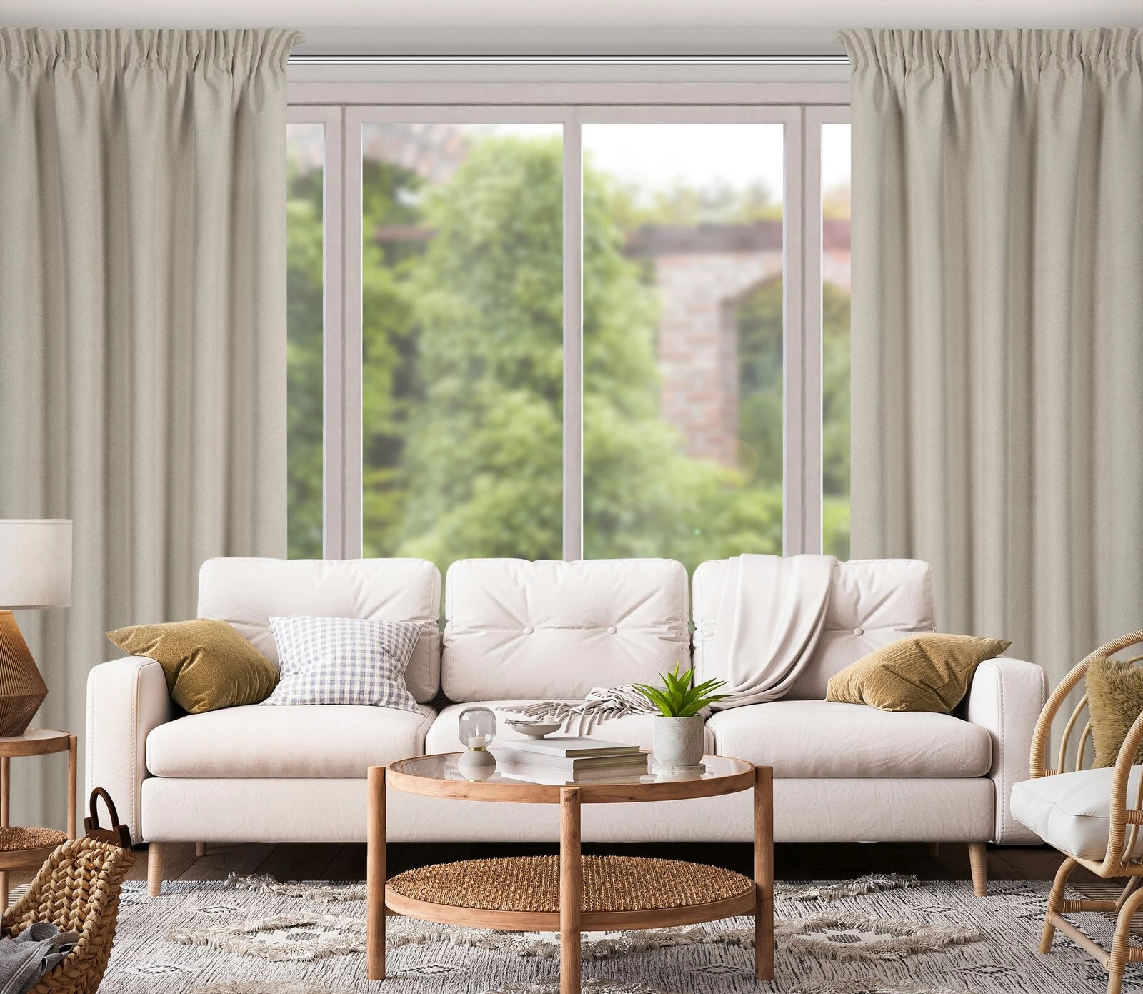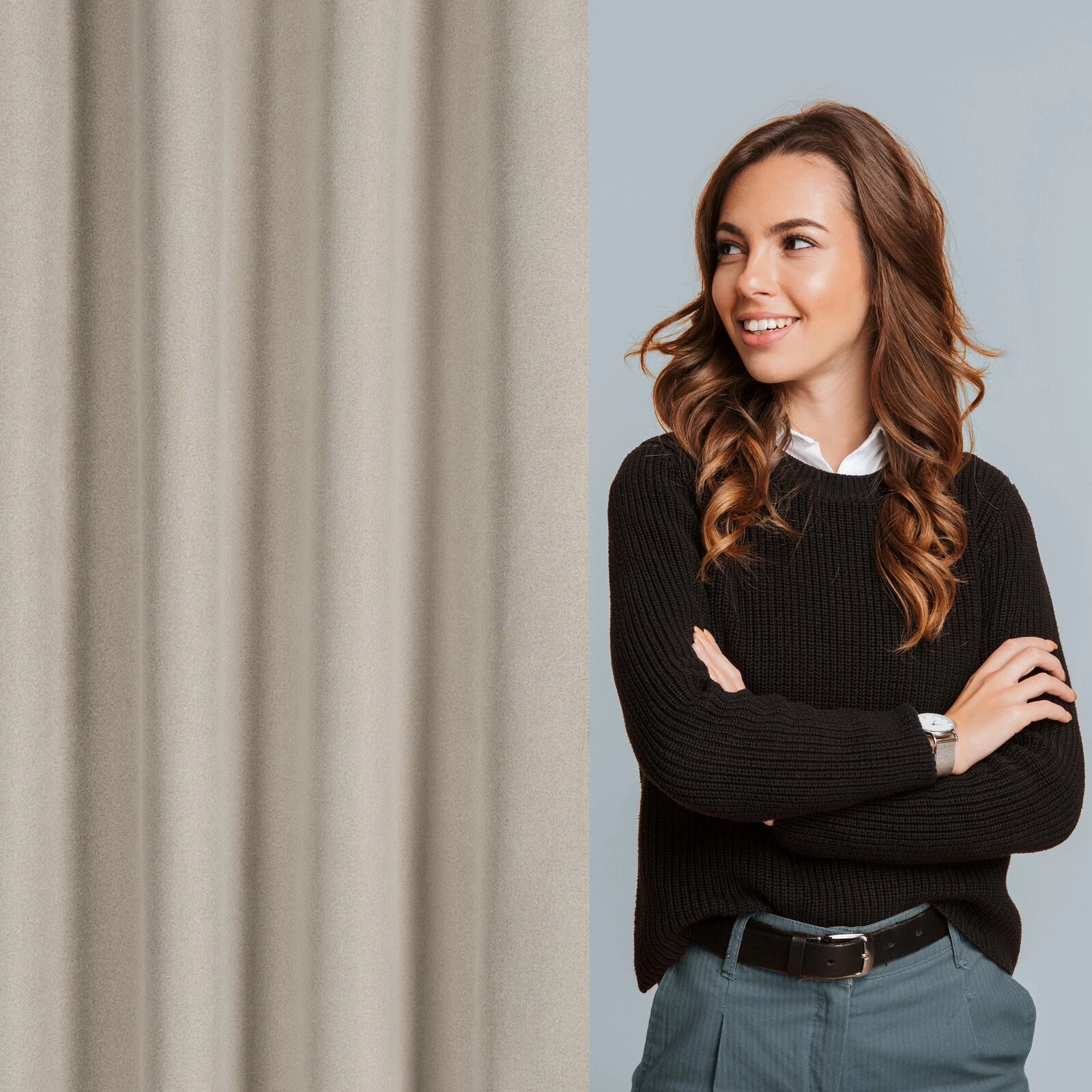 - Zasłona gotowa-100% blackout z tkaniny strukturalnej, dwustronnej szerokość: 135 cm, długość: 270 cm, kolor: ciemnobeżowy, Gramatura: 250 GSM, Skład: 100% poliester