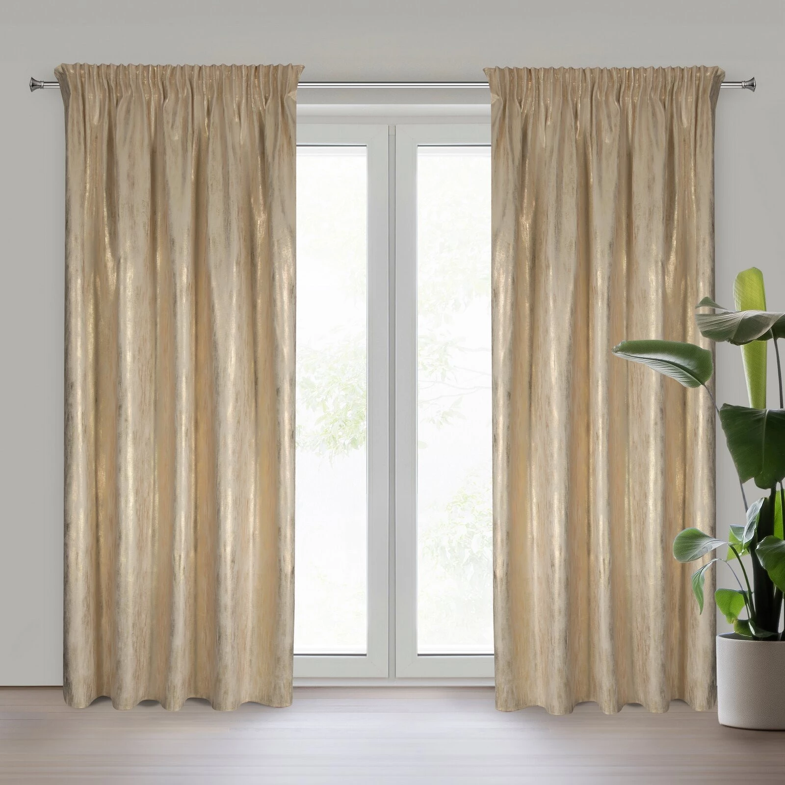 Gotowa zasłona welwetowa z błyszczącym nadrukiem szerokość: 140 cm, długość: 270 cm, kolor: kremowy, Gramatura: 200 GSM, Skład: 100% poliester