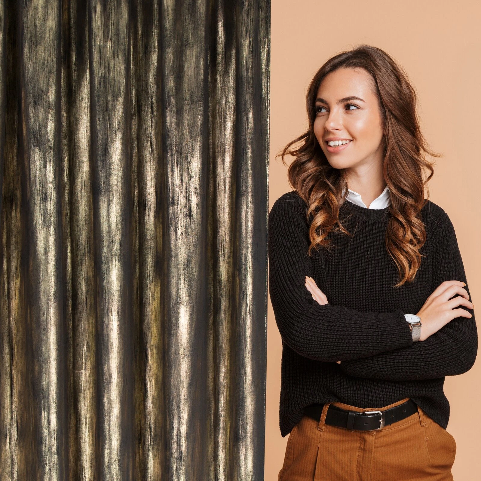 Gotowa zasłona welwetowa z błyszczącym nadrukiem szerokość: 140 cm, długość: 270 cm, kolor: czarny, Gramatura: 200 GSM, Skład: 100% poliester