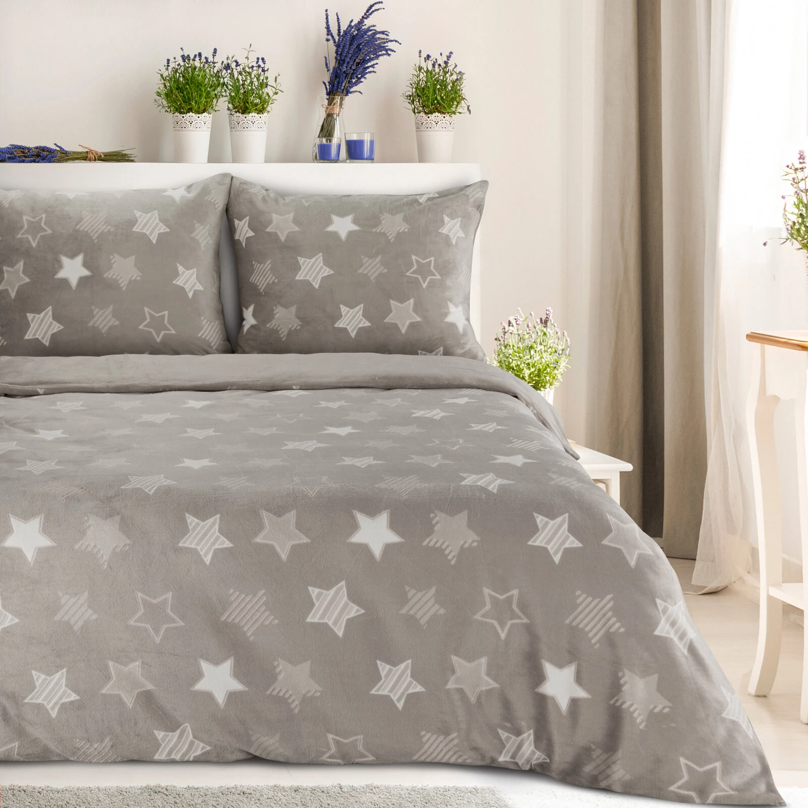 - Miękka w dotyku pościel polarowa z wytłaczanymi gwiazdami szerokość: 200 cm, długość: 220 cm, kolor: beżowy, Gramatura: 210 GSM, Skład: 100% poliester