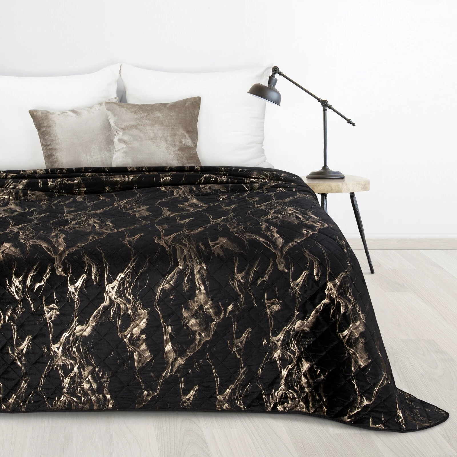 Przyjemna w dotyku narzuta pikowana metodą bezszwowego zgrzewania hotpress w subtelny wzór geometryczny. Sprawdzi się jako narzuta na łóżko lub sofę w salonie. szerokość: 170 cm, długość: 210 cm, kolor: czarny, Gramatura: 150 GSM, Skład: 100% poliester