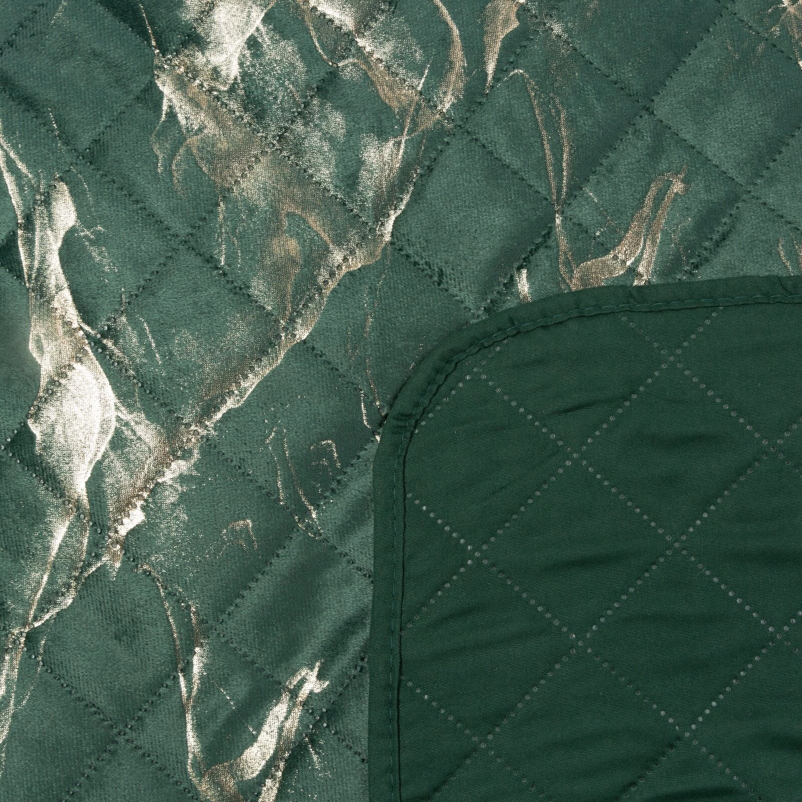 Przyjemna w dotyku narzuta pikowana metodą bezszwowego zgrzewania hotpress w subtelny wzór geometryczny. Sprawdzi się jako narzuta na łóżko lub sofę w salonie. szerokość: 200 cm, długość: 220 cm, kolor: ciemnozielony, Gramatura: 150 GSM, Skład: 100% poliester