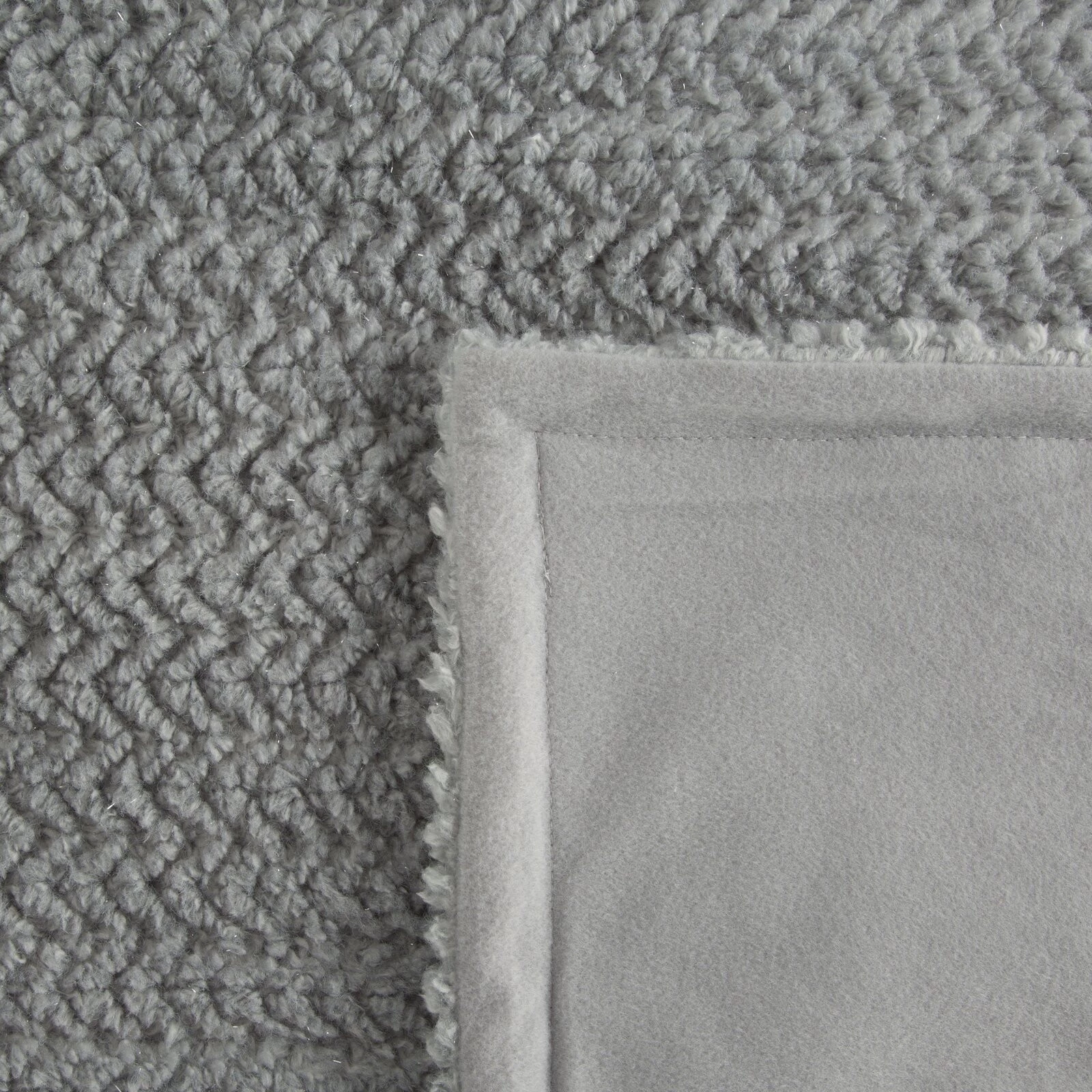 - Narzuta dekoracyjna zdobiona błyszczącą nicią szerokość: 130 cm, długość: 170 cm, kolor: srebrny, Gramatura: 390 GSM, Skład: 100% poliester