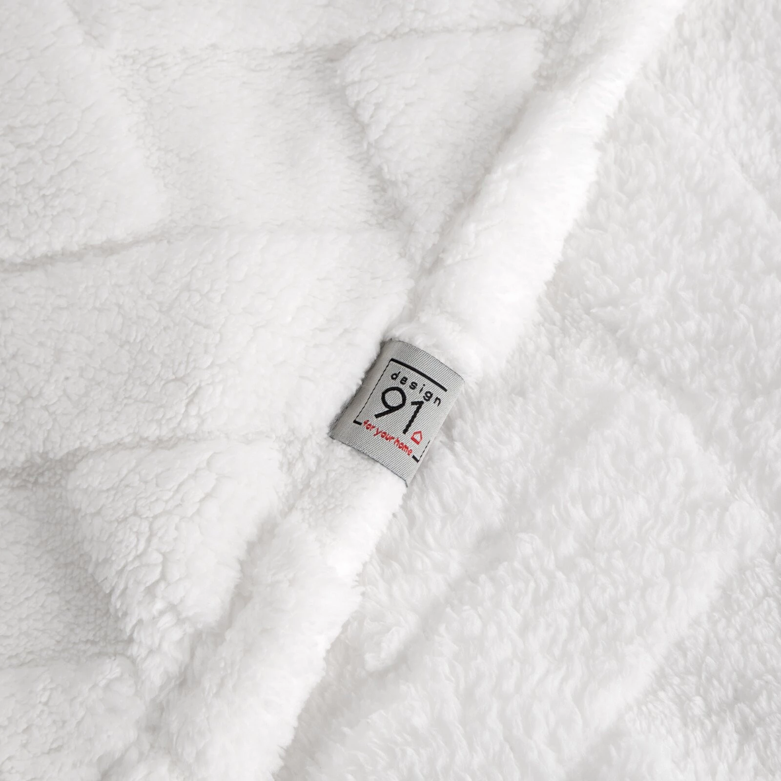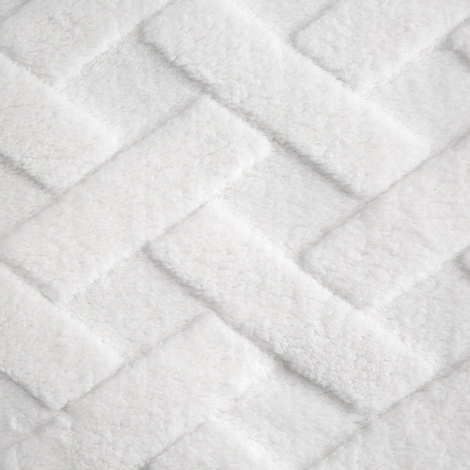 Klasyczny koc z przyjemnego w dotyku włókna w technologii mikroflano. Jednobarwna, puszysta faktura ozdobiona jest minimalistycznym tłoczeniem w formie jodełki. szerokość: 70 cm, długość: 160 cm, kolor: biały, Gramatura: 340 GSM, Skład: 100% poliester