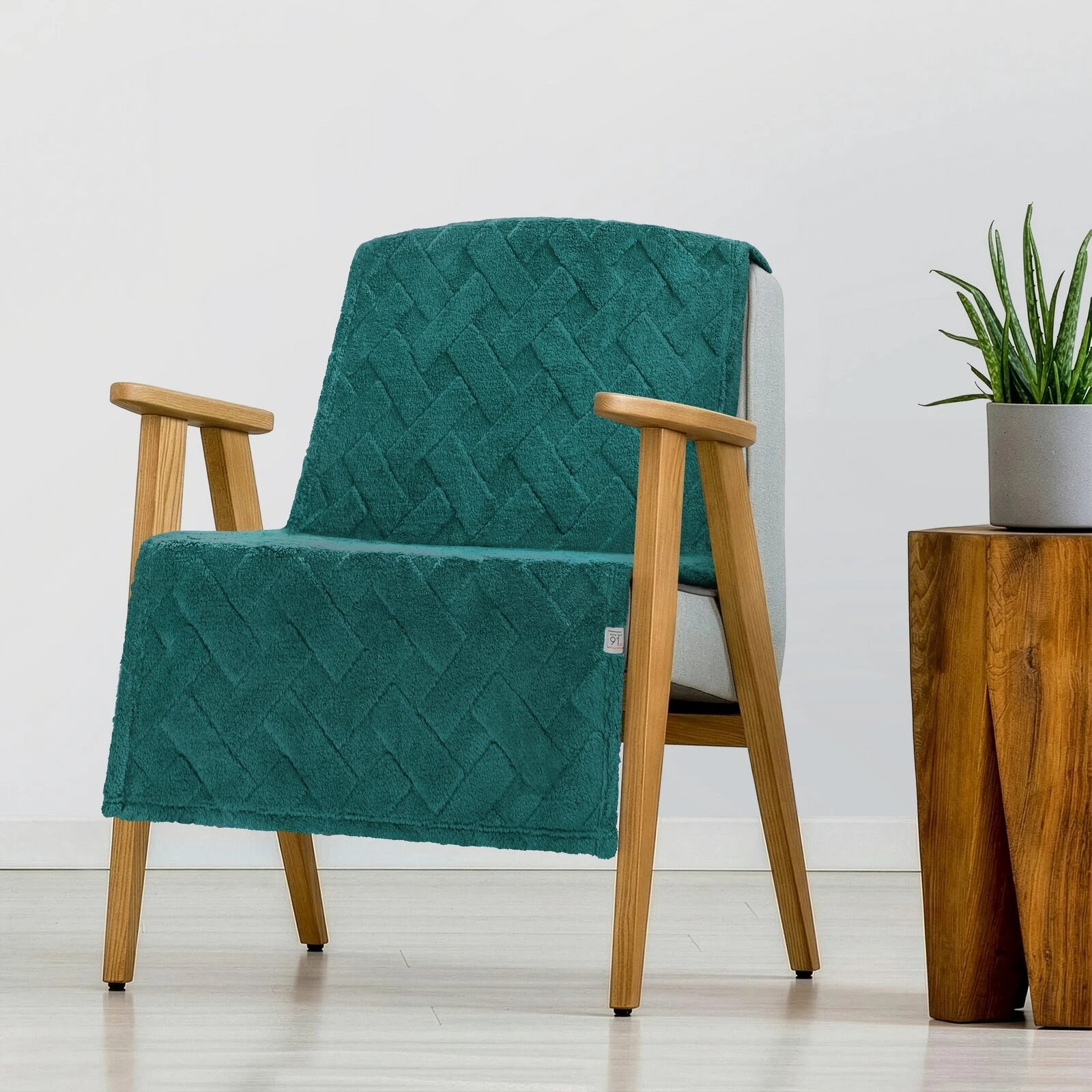 Klasyczny koc z przyjemnego w dotyku włókna w technologii mikroflano. Jednobarwna, puszysta faktura ozdobiona jest minimalistycznym tłoczeniem w formie jodełki. szerokość: 70 cm, długość: 160 cm, kolor: ciemnozielony, Gramatura: 340 GSM, Skład: 100% poliester
