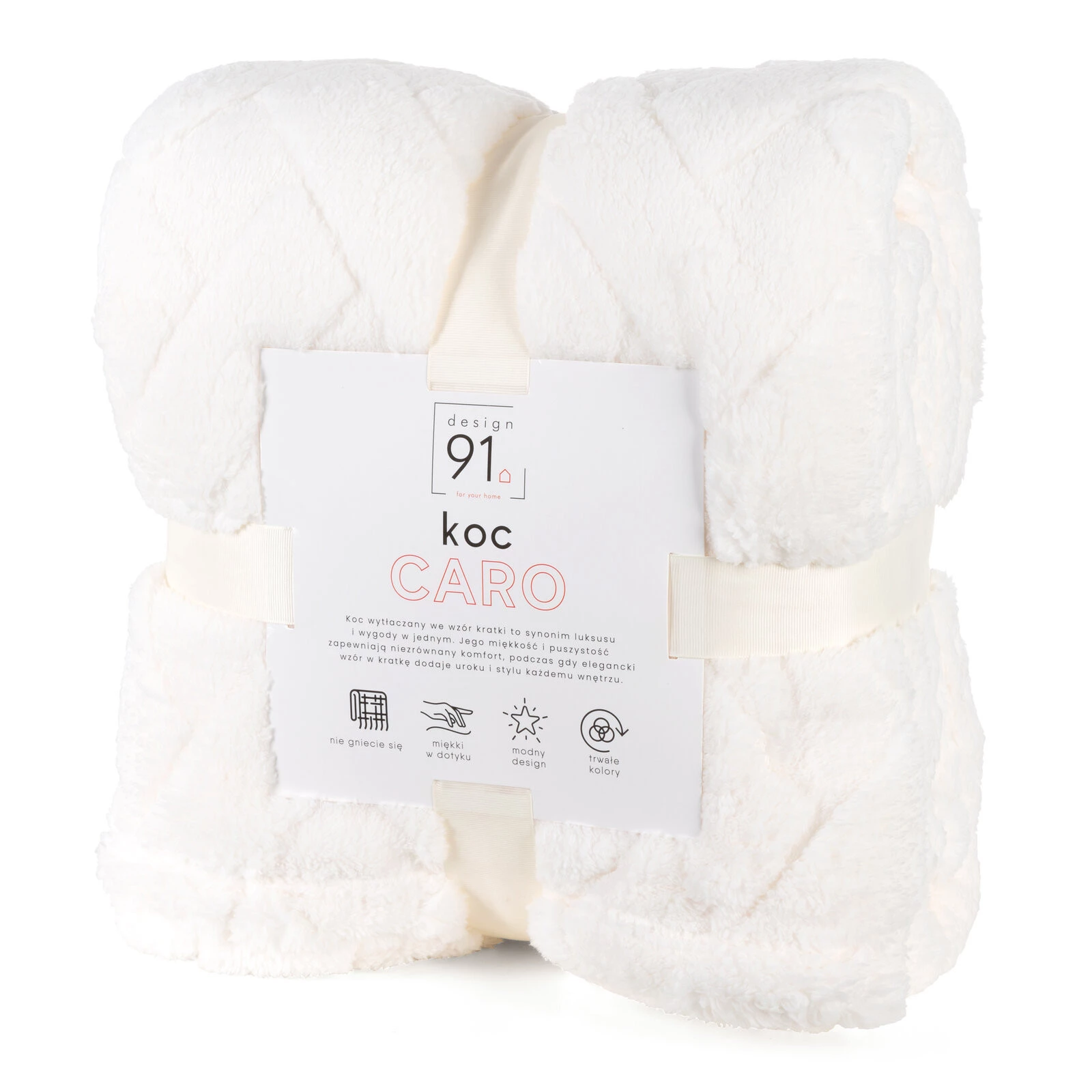 - Klasyczny koc z przyjemnego w dotyku włókna w technologii mikroflano. Jednobarwna, puszysta faktura ozdobiona jest minimalistycznym tłoczeniem w formie jodełki. szerokość: 150 cm, długość: 200 cm, kolor: kremowy, Gramatura: 340 GSM, Skład: 100% poliester