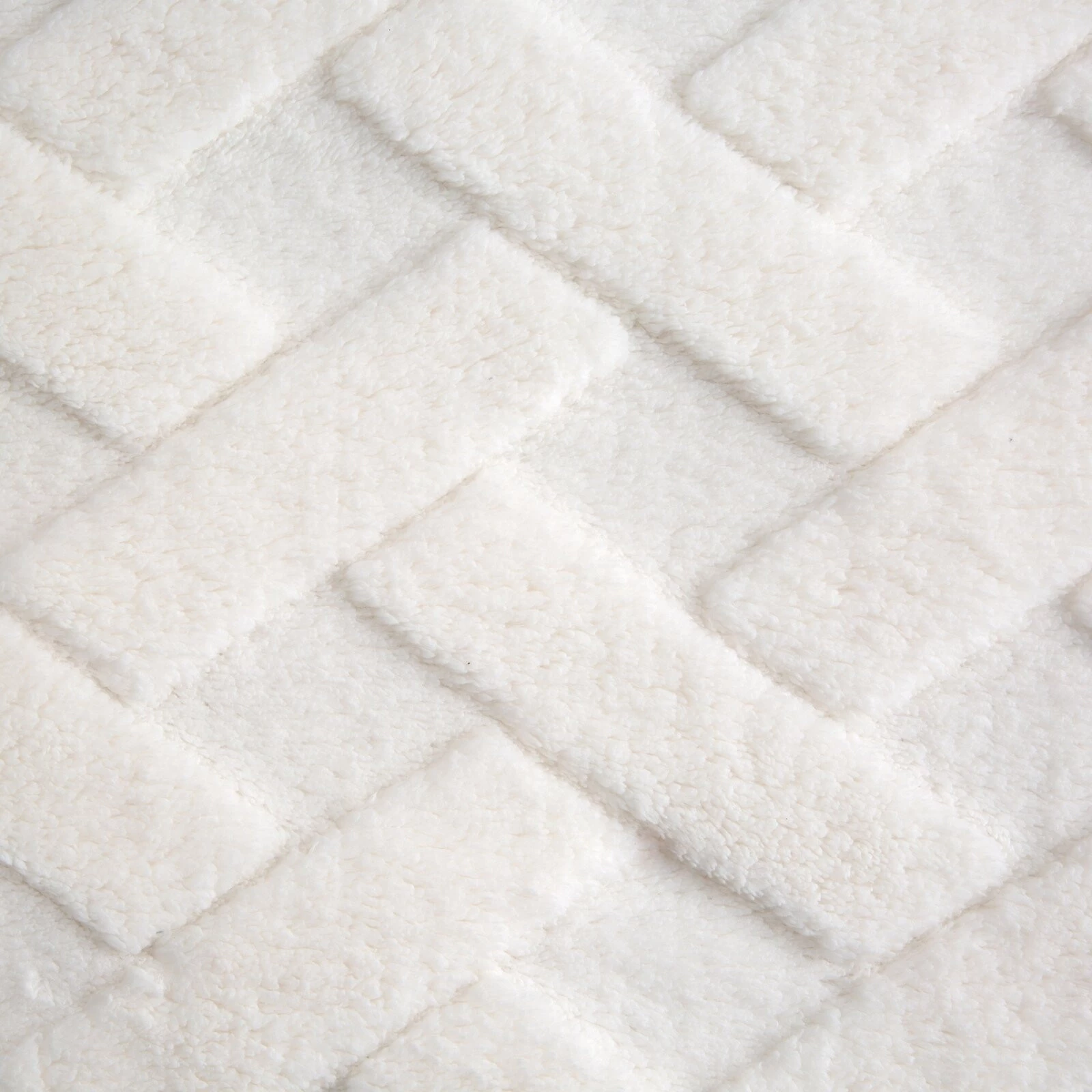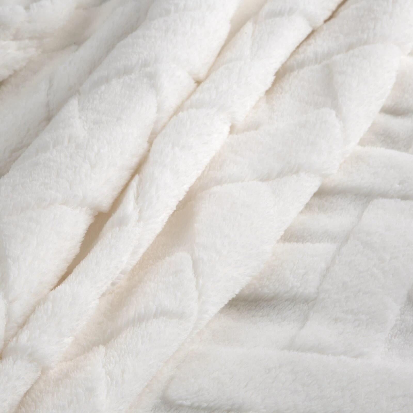 Klasyczny koc z przyjemnego w dotyku włókna w technologii mikroflano. Jednobarwna, puszysta faktura ozdobiona jest minimalistycznym tłoczeniem w formie jodełki. szerokość: 150 cm, długość: 200 cm, kolor: kremowy, Gramatura: 340 GSM, Skład: 100% poliester