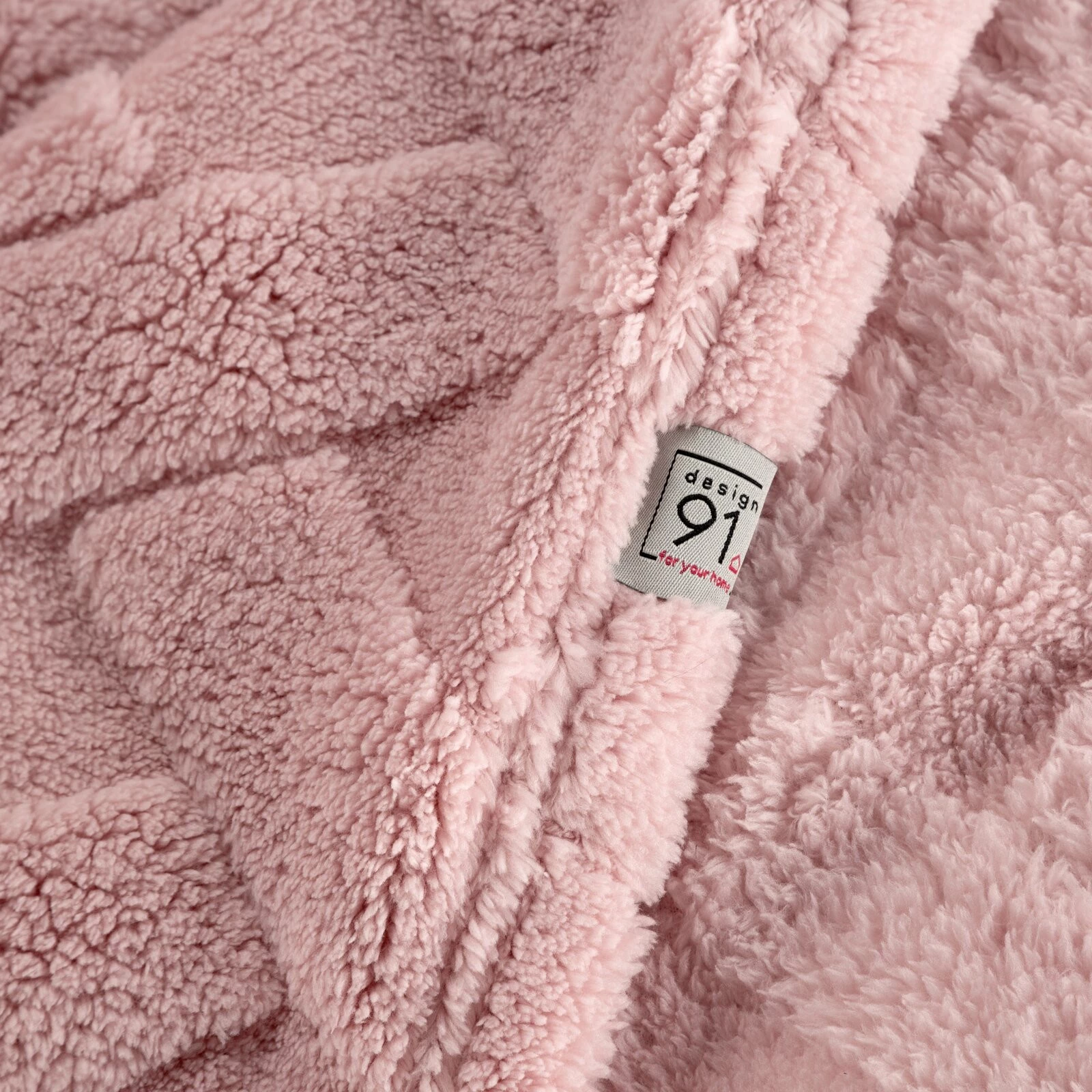 Klasyczny koc z przyjemnego w dotyku włókna w technologii mikroflano. Jednobarwna, puszysta faktura ozdobiona jest minimalistycznym tłoczeniem w formie jodełki. szerokość: 150 cm, długość: 200 cm, kolor: pudrowy róż, Gramatura: 340 GSM, Skład: 100% poliester