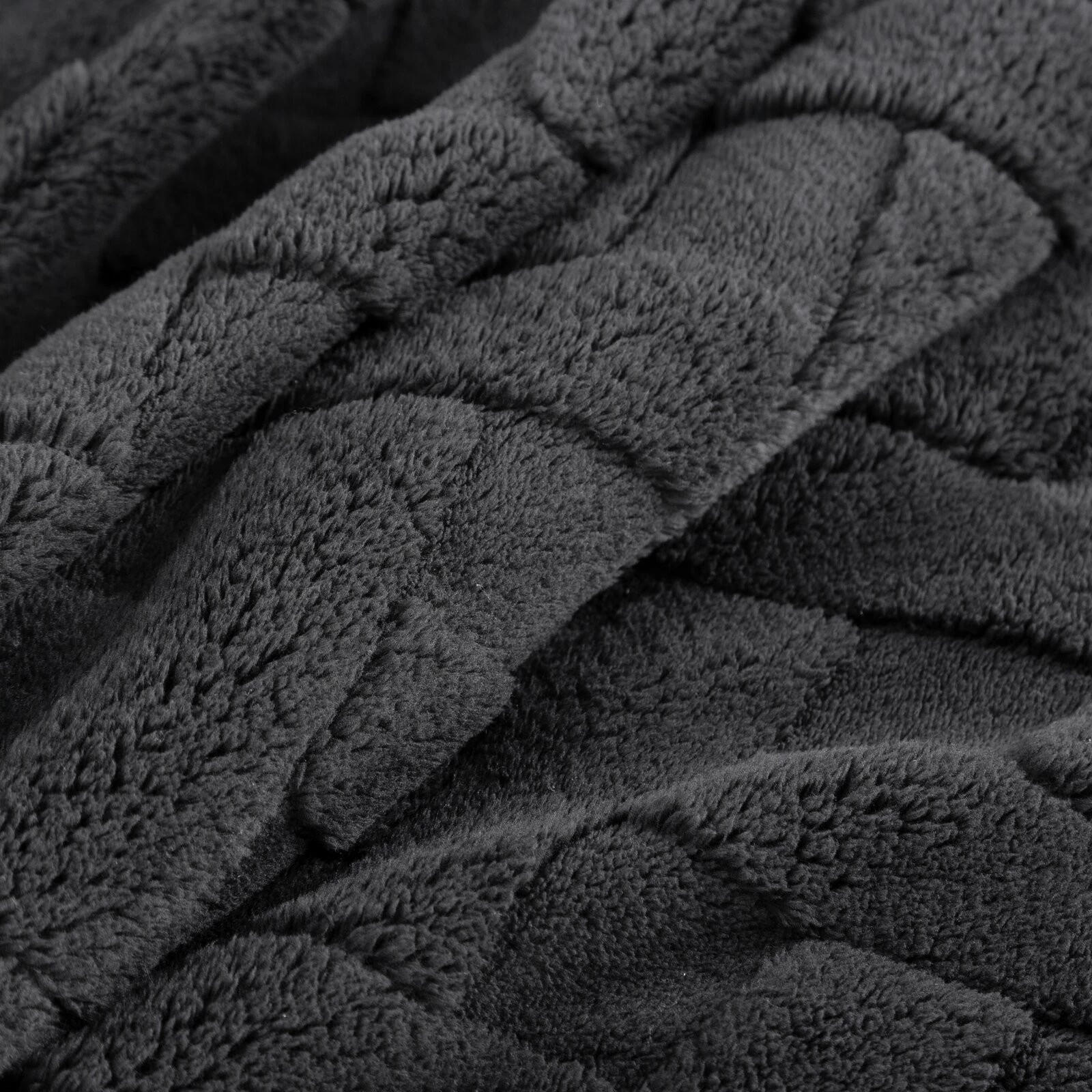 Klasyczny koc z przyjemnego w dotyku włókna w technologii mikroflano. Jednobarwna, puszysta faktura ozdobiona jest minimalistycznym tłoczeniem w formie jodełki. szerokość: 170 cm, długość: 210 cm, kolor: stalowy, Gramatura: 340 GSM, Skład: 100% poliester