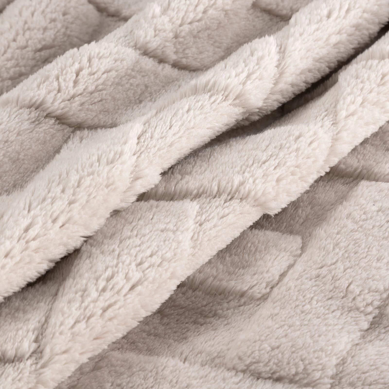 Klasyczny koc z przyjemnego w dotyku włókna w technologii mikroflano. Jednobarwna, puszysta faktura ozdobiona jest minimalistycznym tłoczeniem w formie jodełki. szerokość: 200 cm, długość: 220 cm, kolor: beżowy, Gramatura: 340 GSM, Skład: 100% poliester