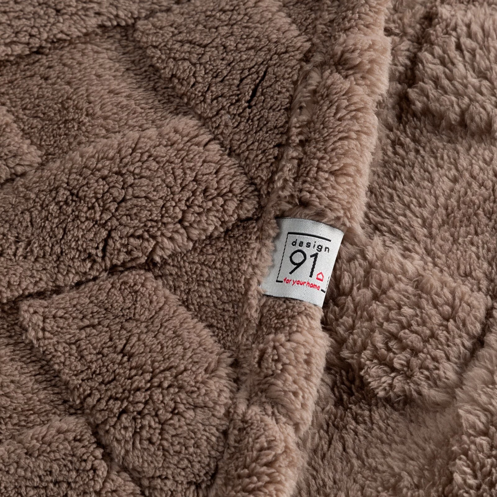 Klasyczny koc z przyjemnego w dotyku włókna w technologii mikroflano. Jednobarwna, puszysta faktura ozdobiona jest minimalistycznym tłoczeniem w formie jodełki. szerokość: 150 cm, długość: 200 cm, kolor: ciemnobeżowy, Gramatura: 340 GSM, Skład: 100% poliester