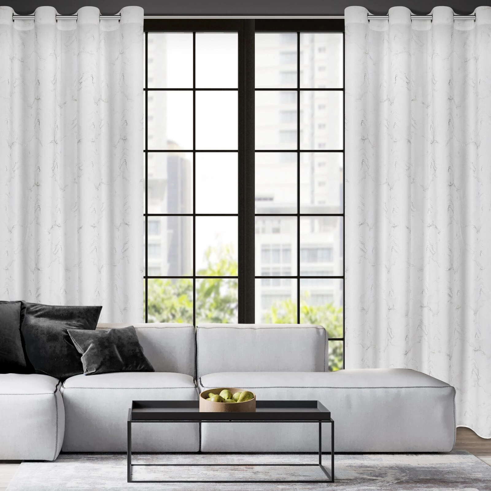 Zasłona gotowa z szyfonu z błyszczącym nadrukiem szerokość: 140 cm, długość: 250 cm, kolor: biały, Gramatura: 110 GSM, Skład: 100% poliester