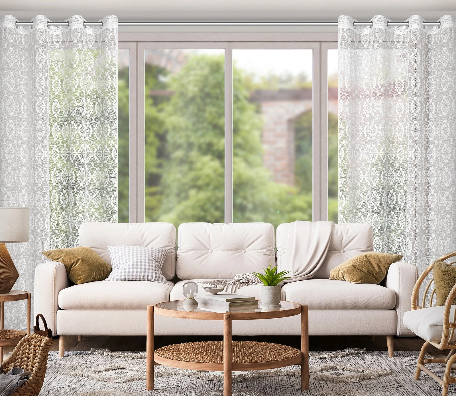 - Firana gotowa o strukturze matowej siatki szerokość: 140 cm, długość: 250 cm, kolor: biały, Gramatura: 140 GSM, Skład: 100% poliester
